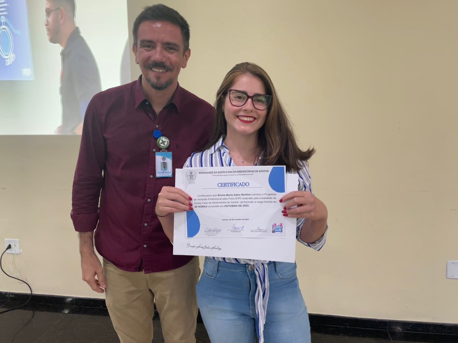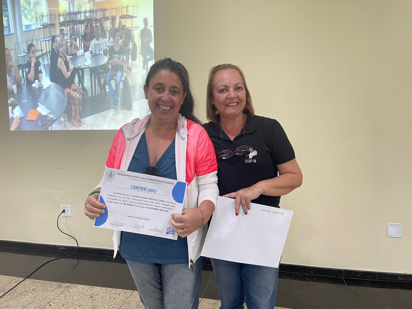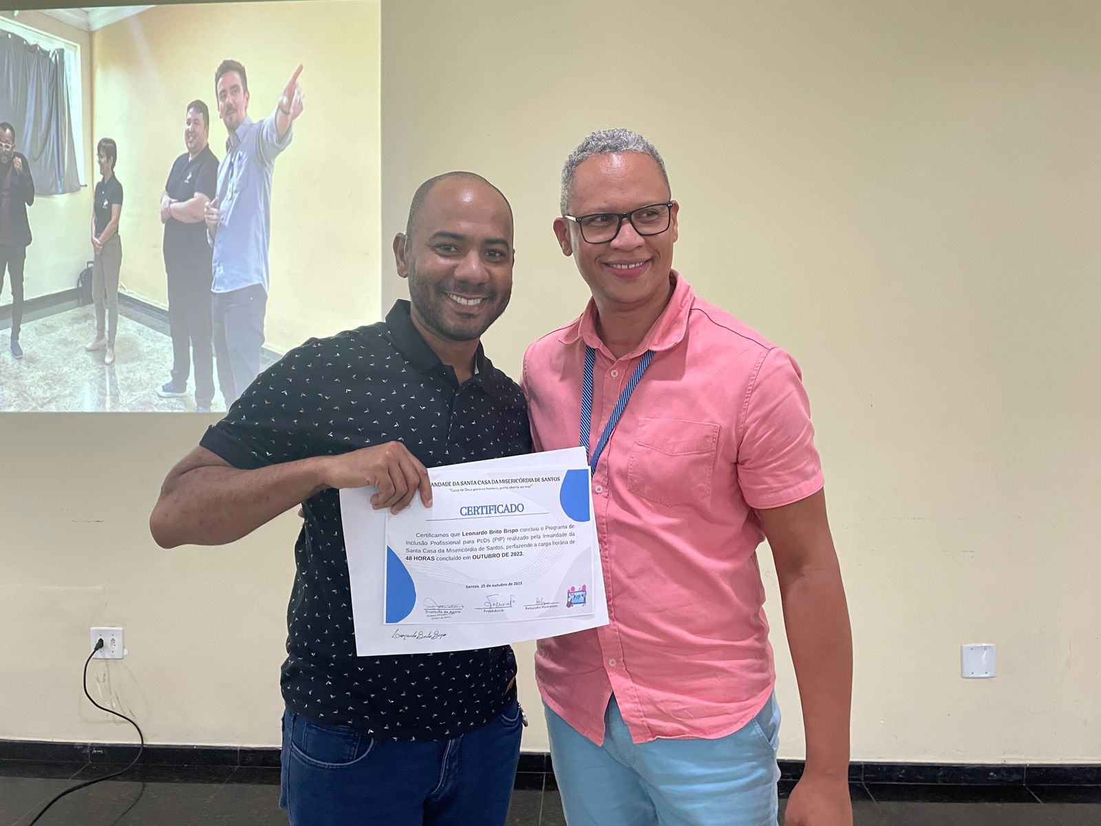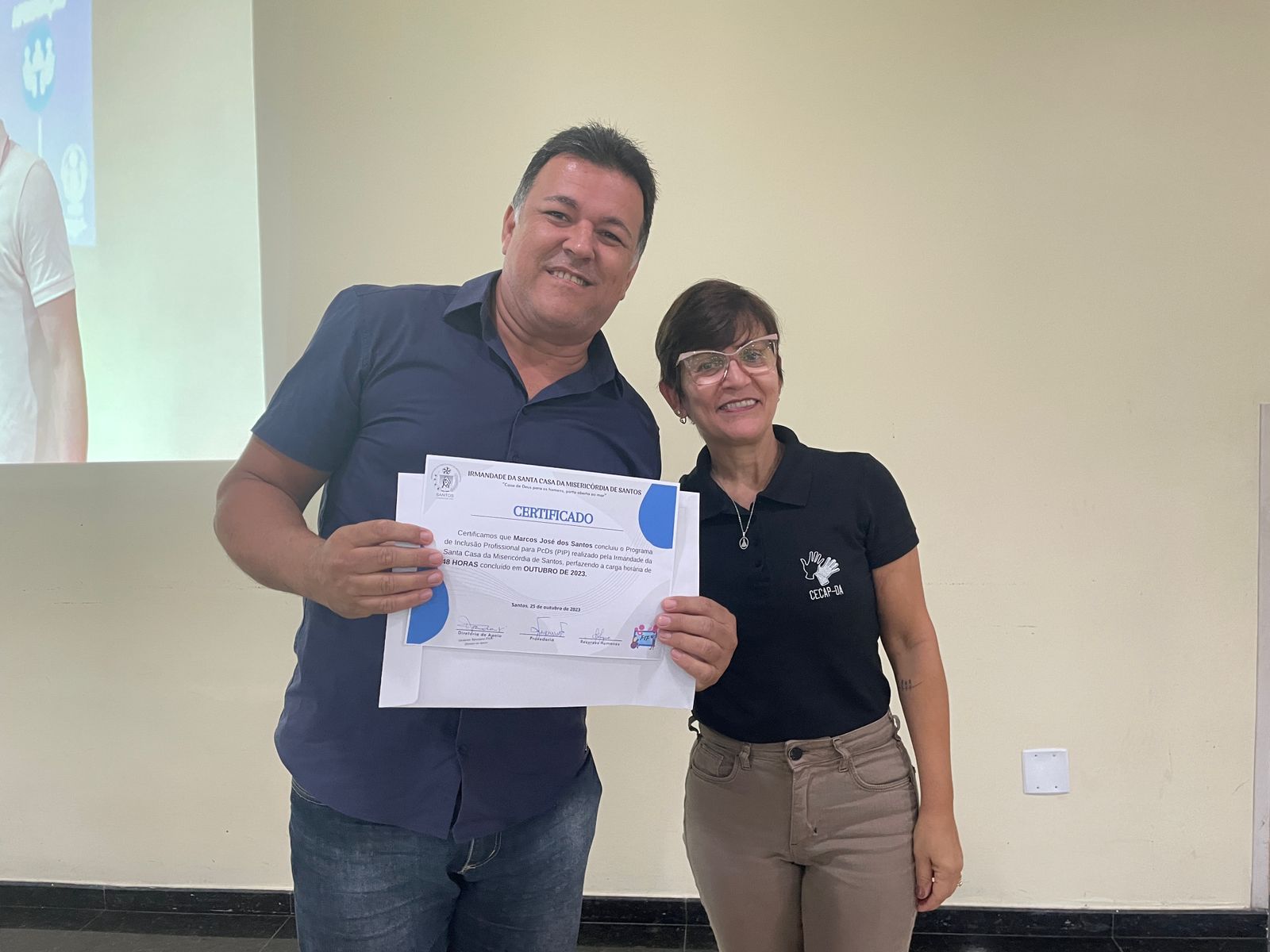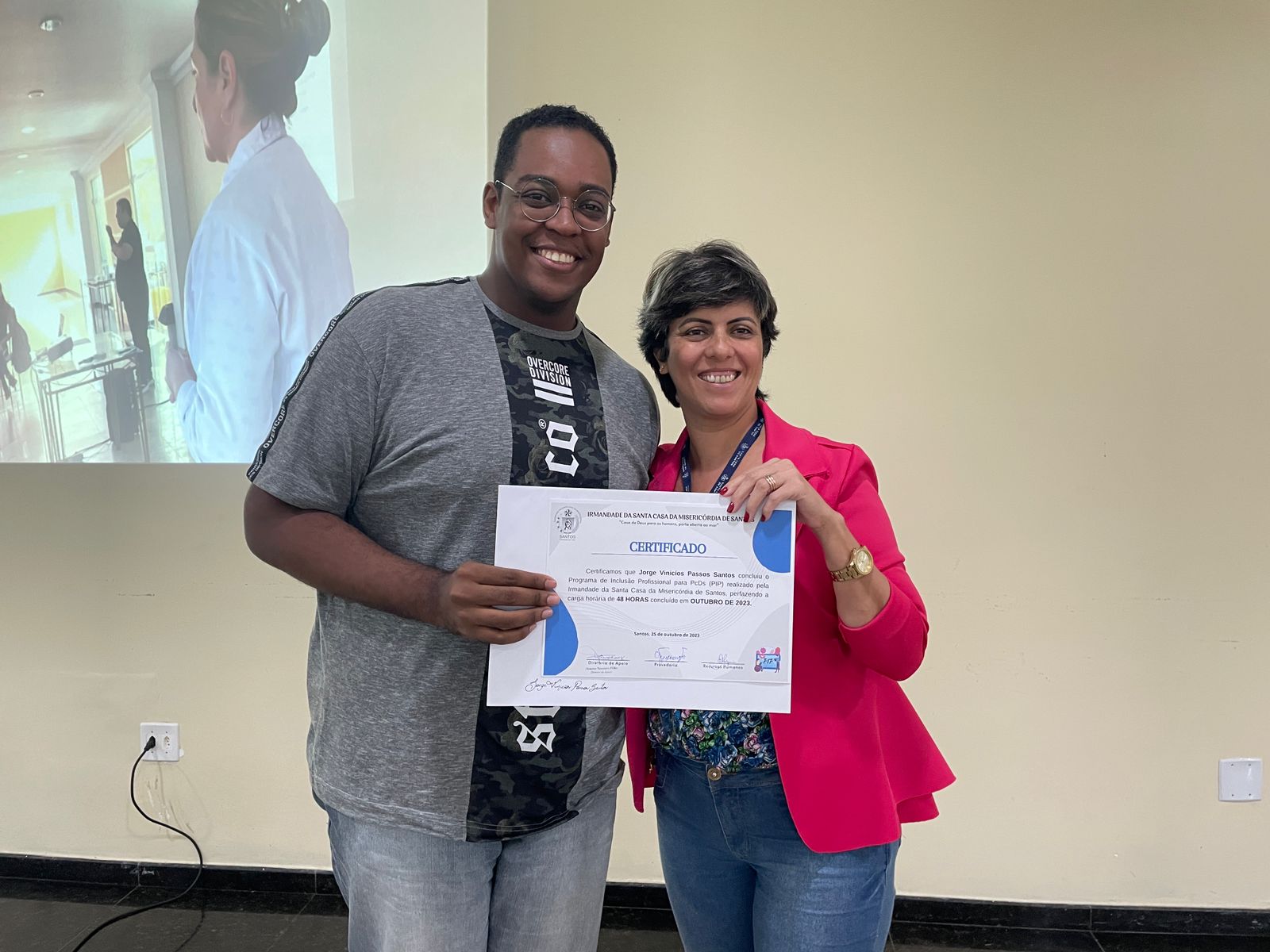 Nesta quarta, dia 25/10, a Santa Casa de Santos realizou a entrega dos certificados de conclusão de curso para os participantes do Programa de Inclusão Profissional para PcD. Esta é a 3ª turma formada pelo curso criado pela instituição, que tem a finalidade de preparar pessoas com deficiência para o mercado de trabalho.