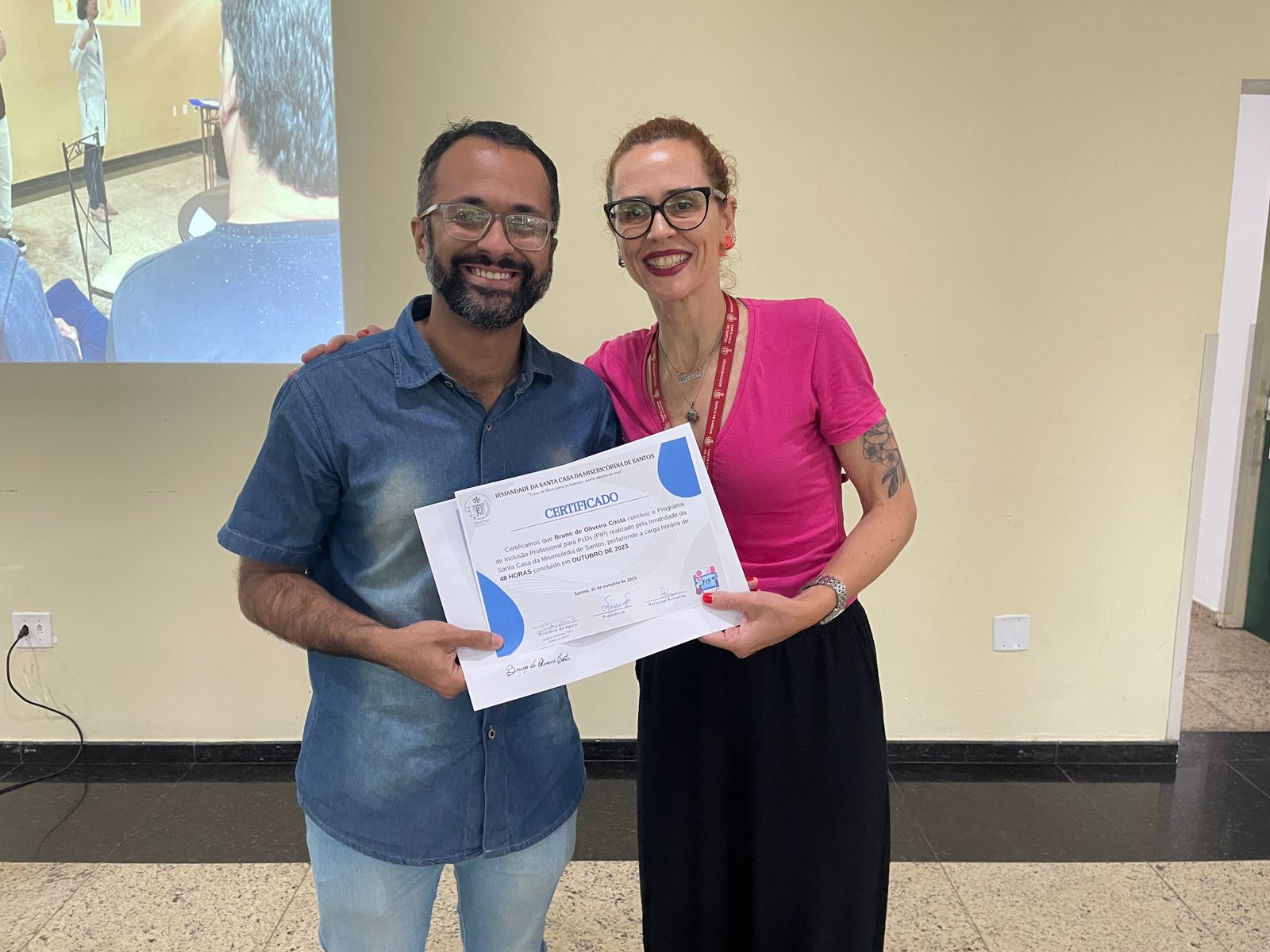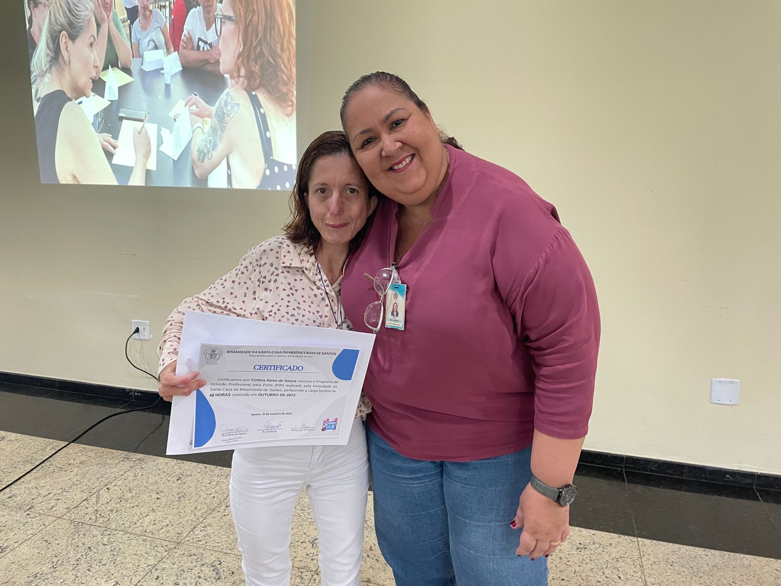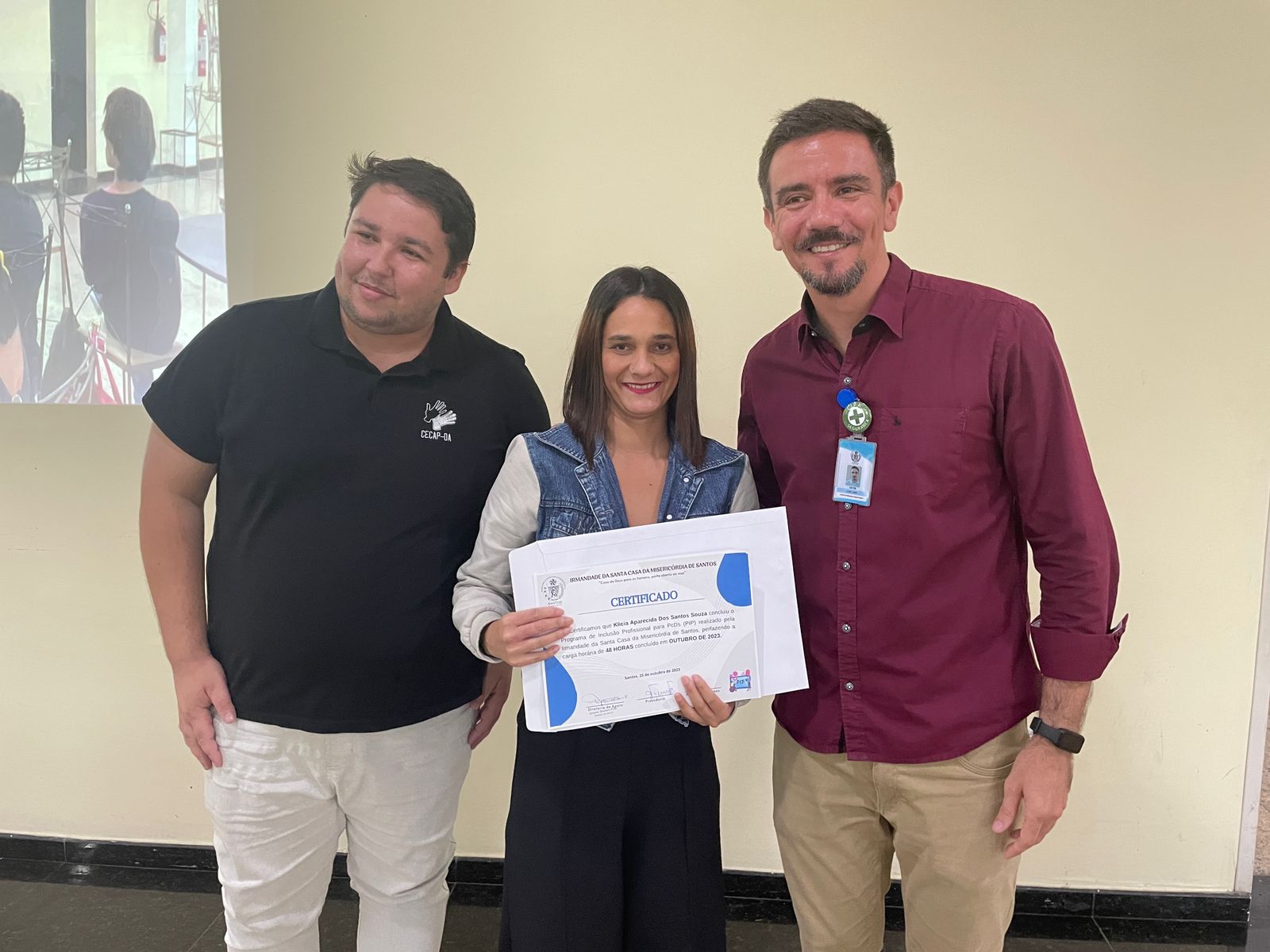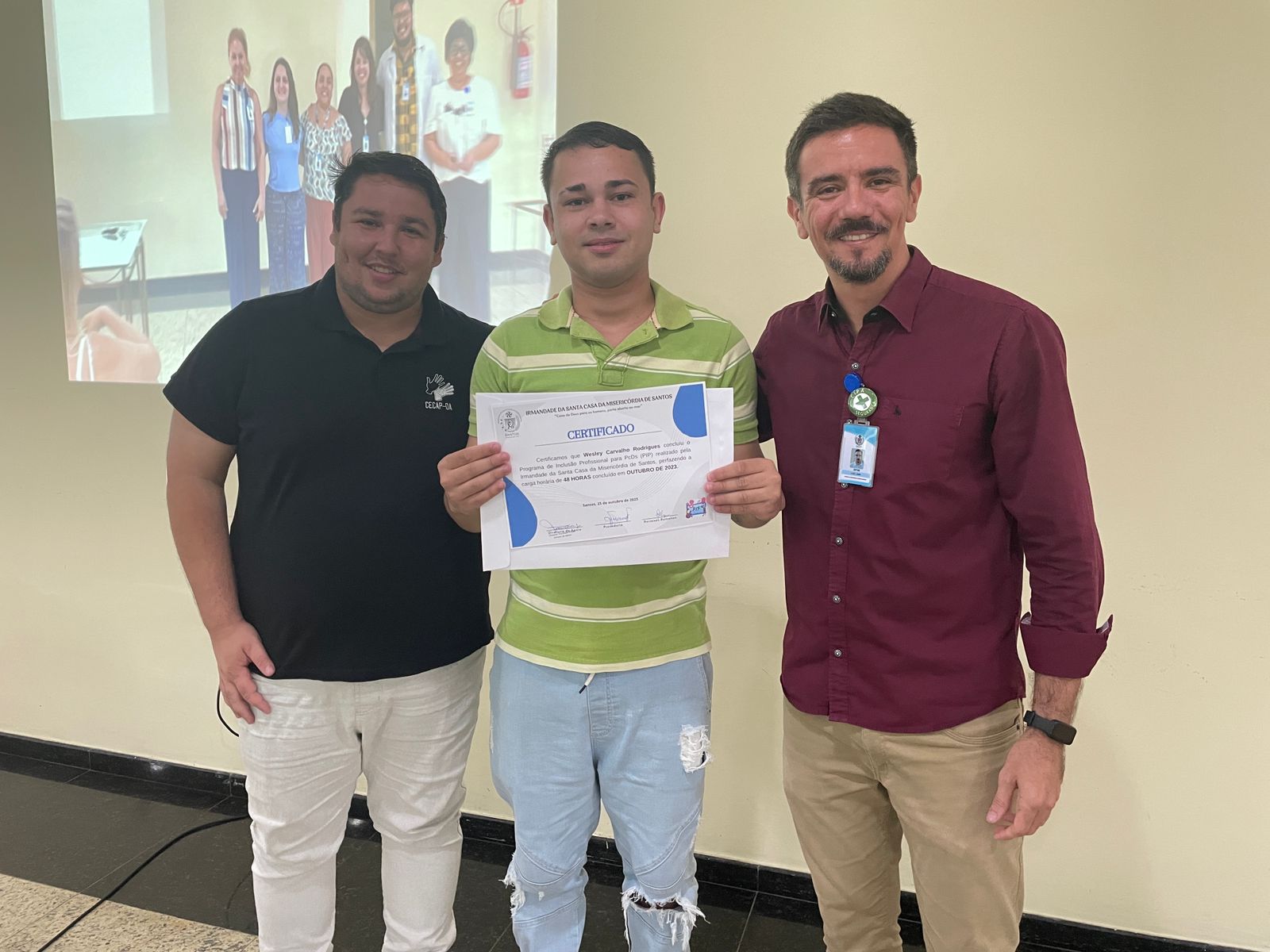 A cerimônia de encerramento para a entrega de certificados aconteceu no salão da Abrescas, com as presenças do vice provedor da Santa Casa, Carlos Teixeira Filho, e do diretor de apoio, Octavio Tavolaro Filho.