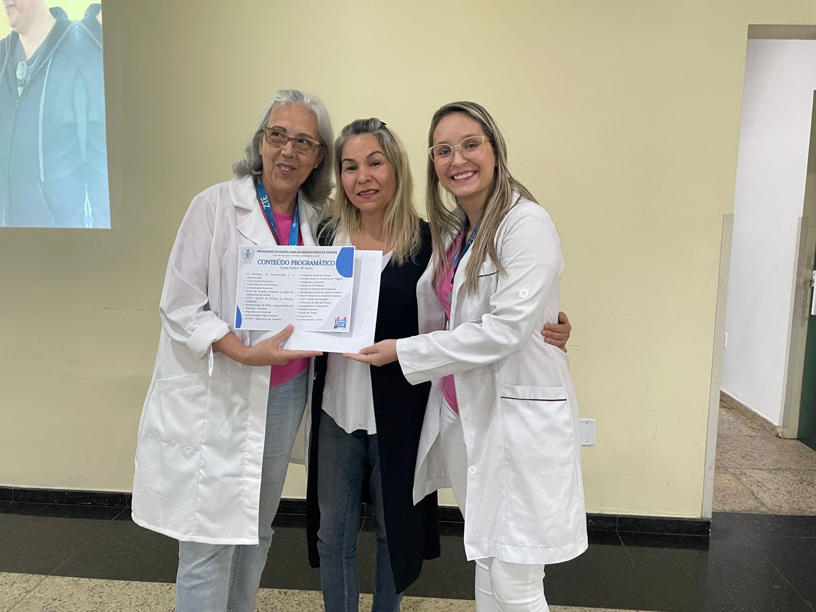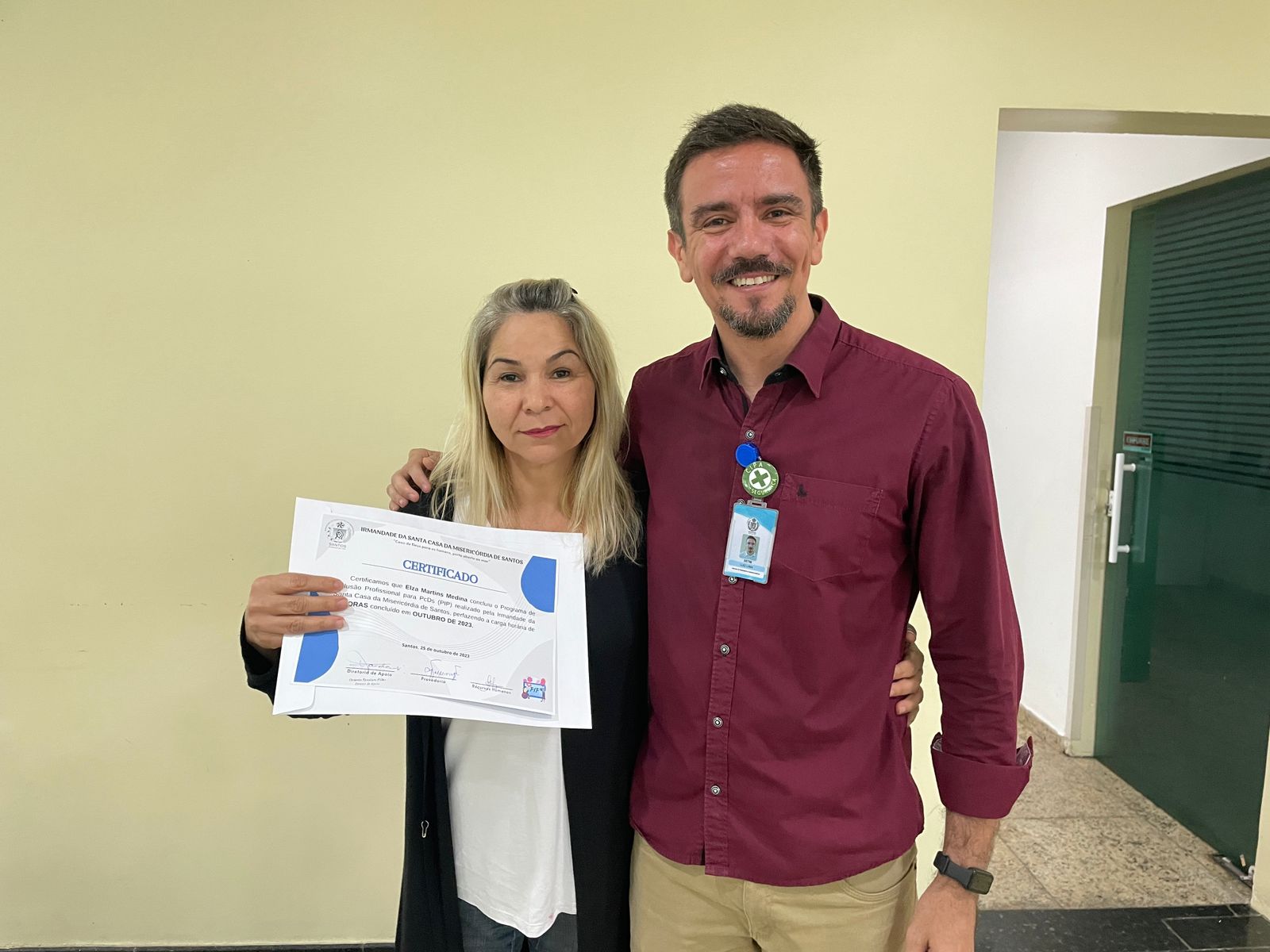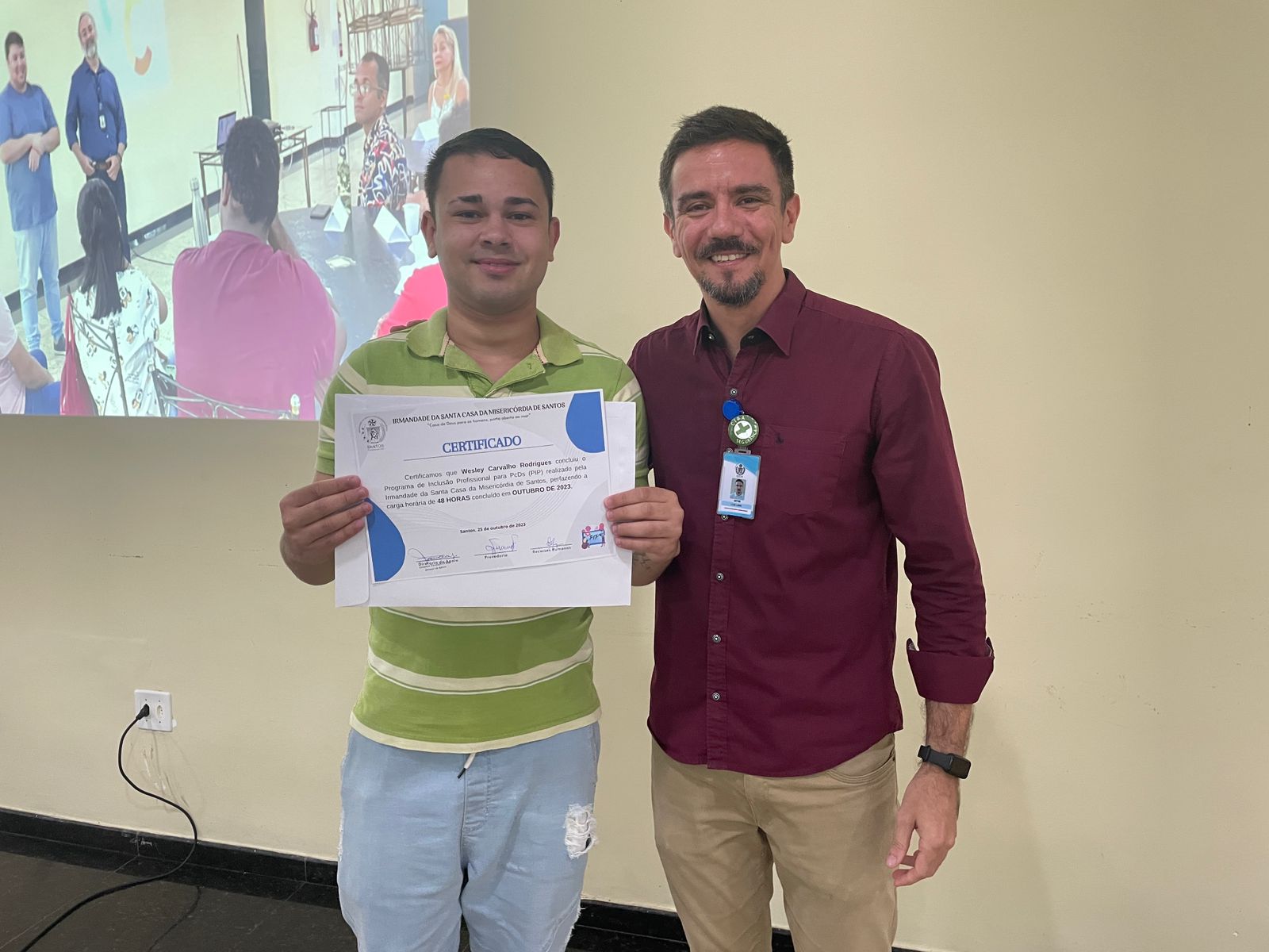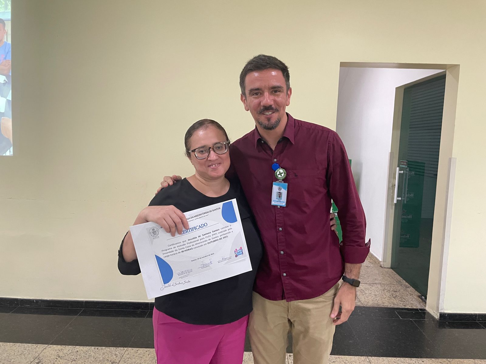A cerimônia de encerramento para a entrega de certificados aconteceu no salão da Abrescas, com as presenças do vice provedor da Santa Casa, Carlos Teixeira Filho, e do diretor de apoio, Octavio Tavolaro Filho.