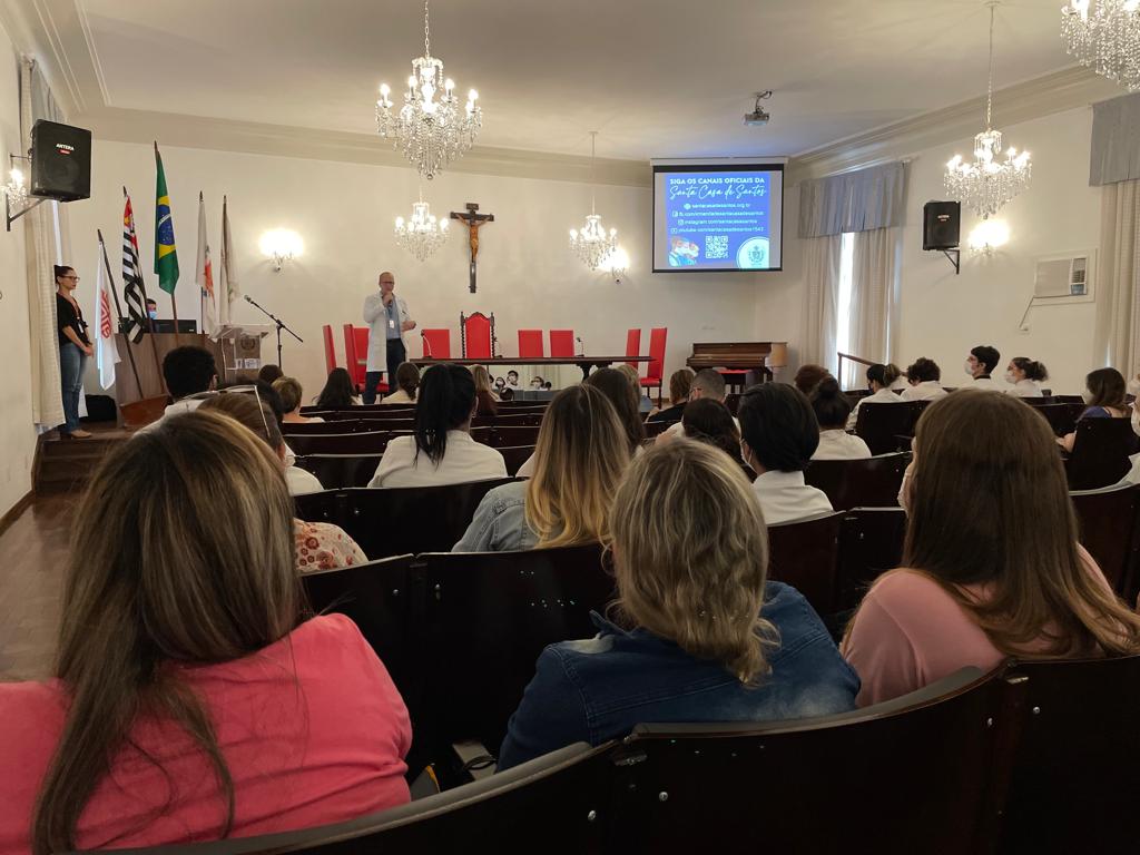 O médico coordenador de Ensino da Santa Casa de Santos, Dr. Maurício Sgarbi, fez a abertura oficial, destacando a importância de abordar o tema e preparar profissionais para o atendimento e acolhimento dos indivíduos com TEA, e agradeceu a participação da APAE Santos no evento.