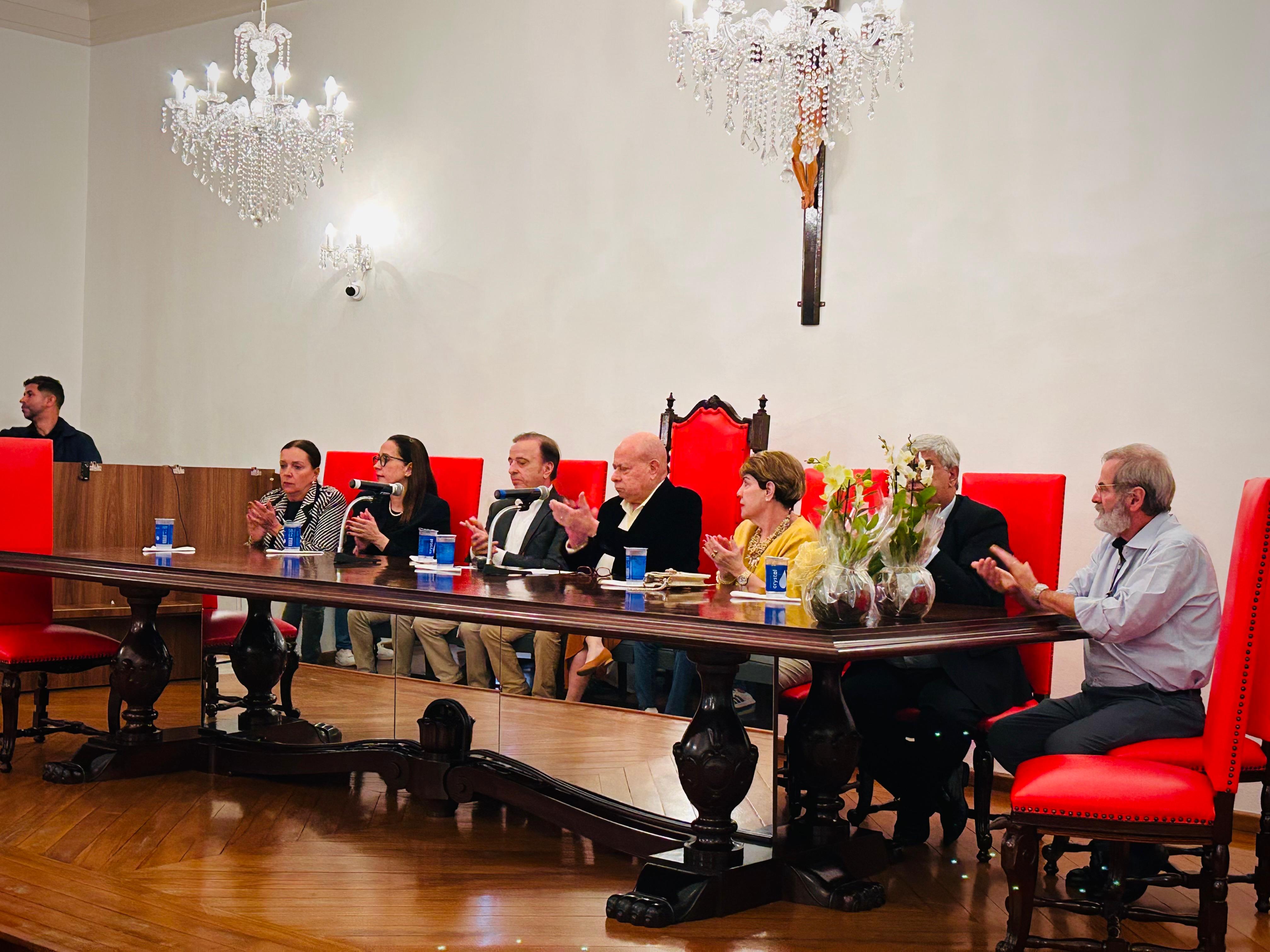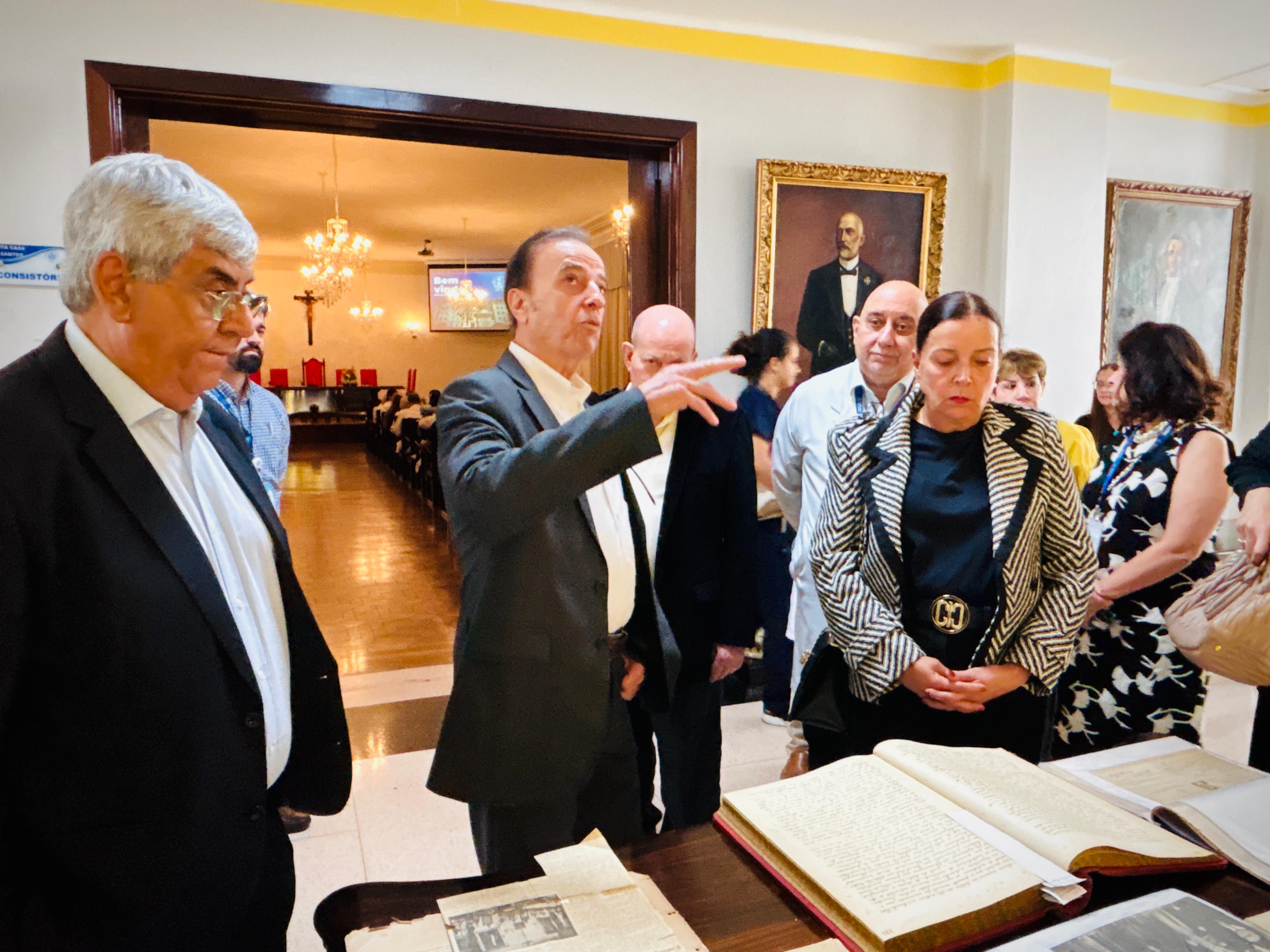 Henrique Prata foi recebido pelo Provedor Ariovaldo Feliciano, pelo vice-provedor Carlos Teixeira Filho, pelo Presidente do Conselho Geral Orlando Viscardi Jr, pelo 1º Tesoureiro da Mesa Administrativa Antonio Carvalho e pela Presidente da Comissão de Controle da Qualidade, Eliana Lopes Feliciano.