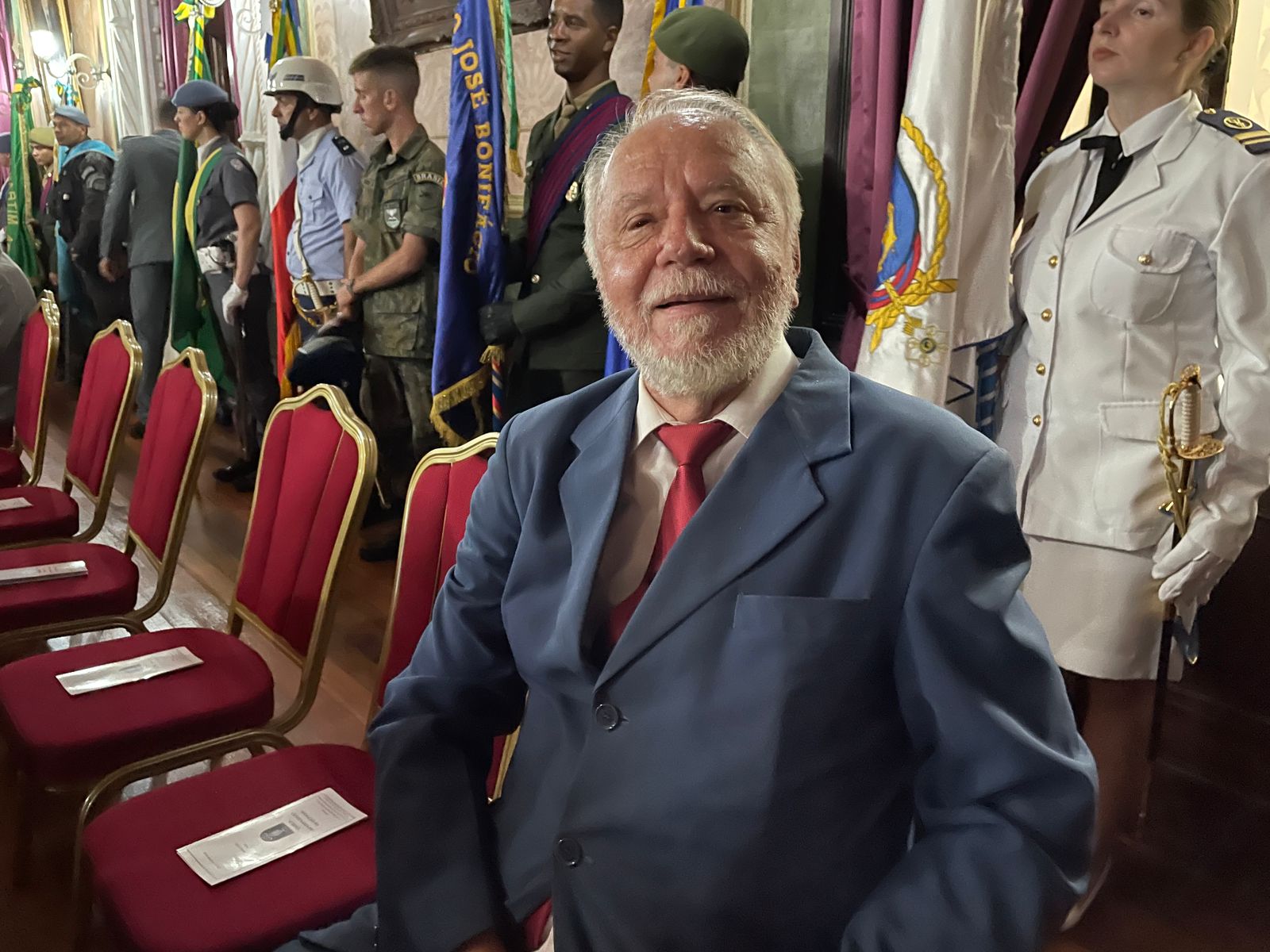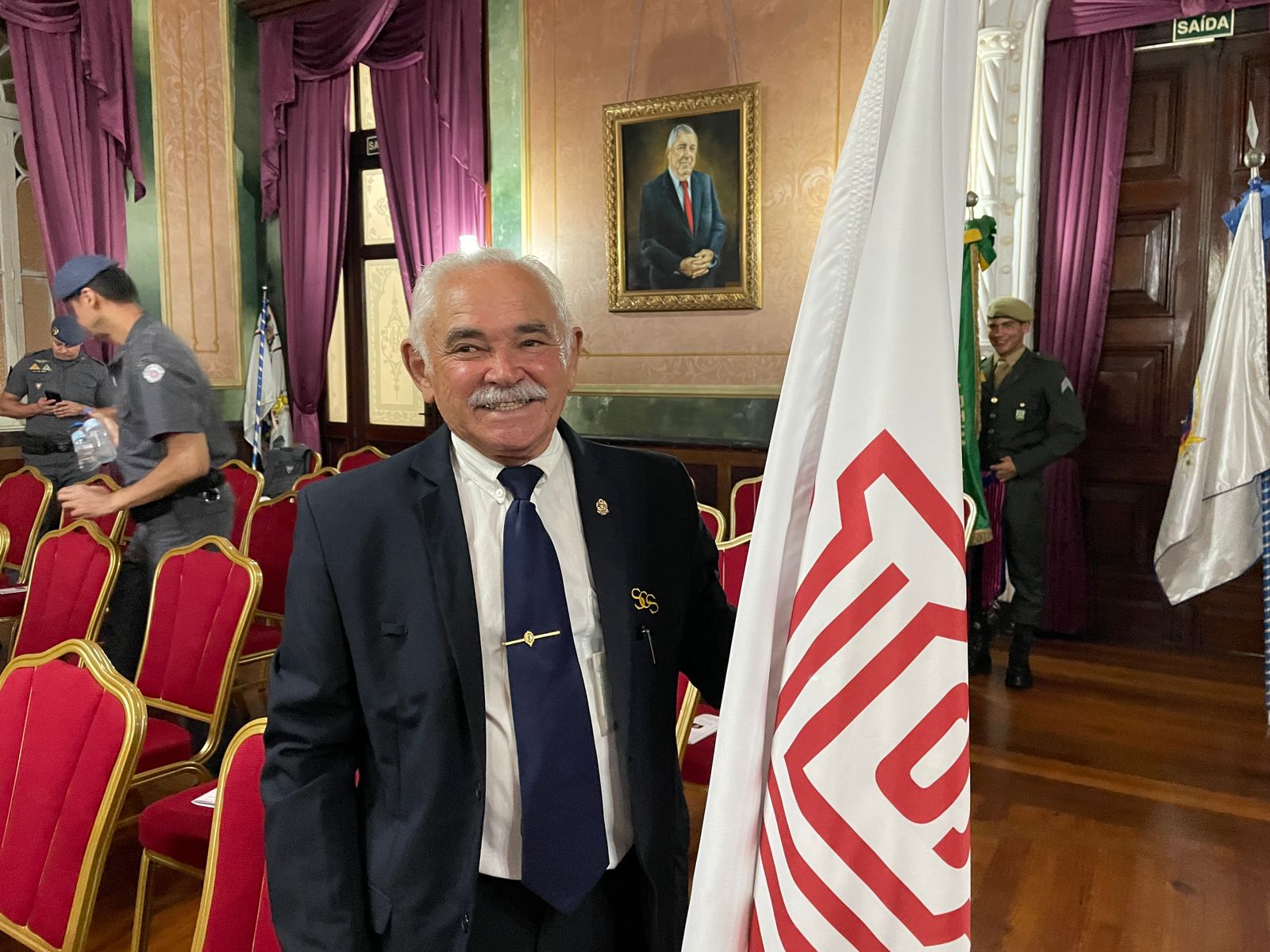 O colaborador José Rabelo Sobrinho, que trabalha há mais de 38 anos na Irmandade, levou a bandeira da Santa Casa para receber a medalha.