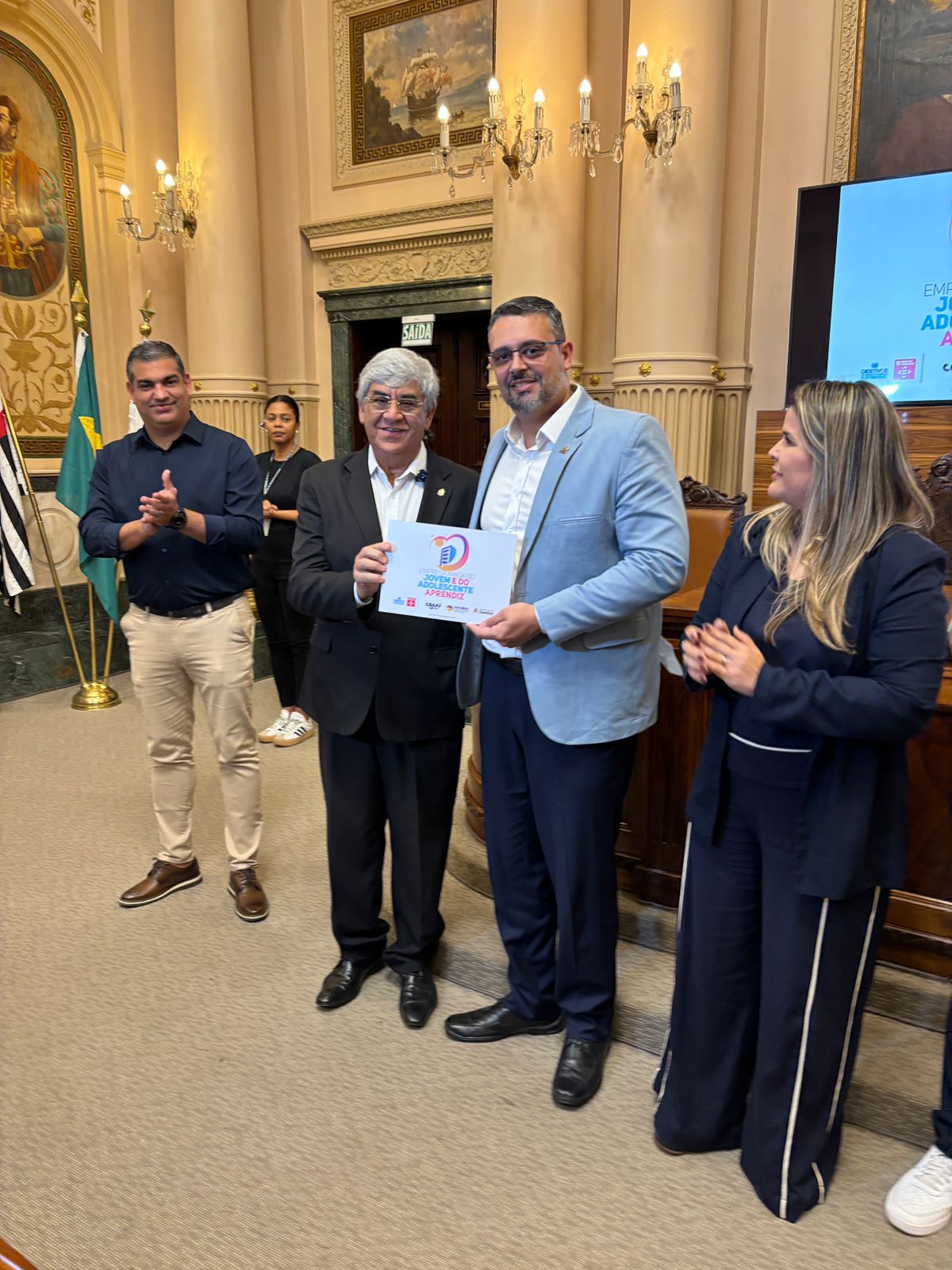 Na manhã desta terça-feira, dia 19 de agosto de 2025, a Santa Casa de Santos recebeu o Selo Empresa Amiga do Jovem e do Adolescente Aprendiz, em cerimônia oficial realizada na Prefeitura Municipal de Santos, conforme critérios estabelecidos pela Lei Municipal nº 4.200/2023 e pelo Decreto nº 9.681/2023. Esta ação é um importante reconhecimento às instituições que investem na inclusão de jovens no mercado de trabalho.