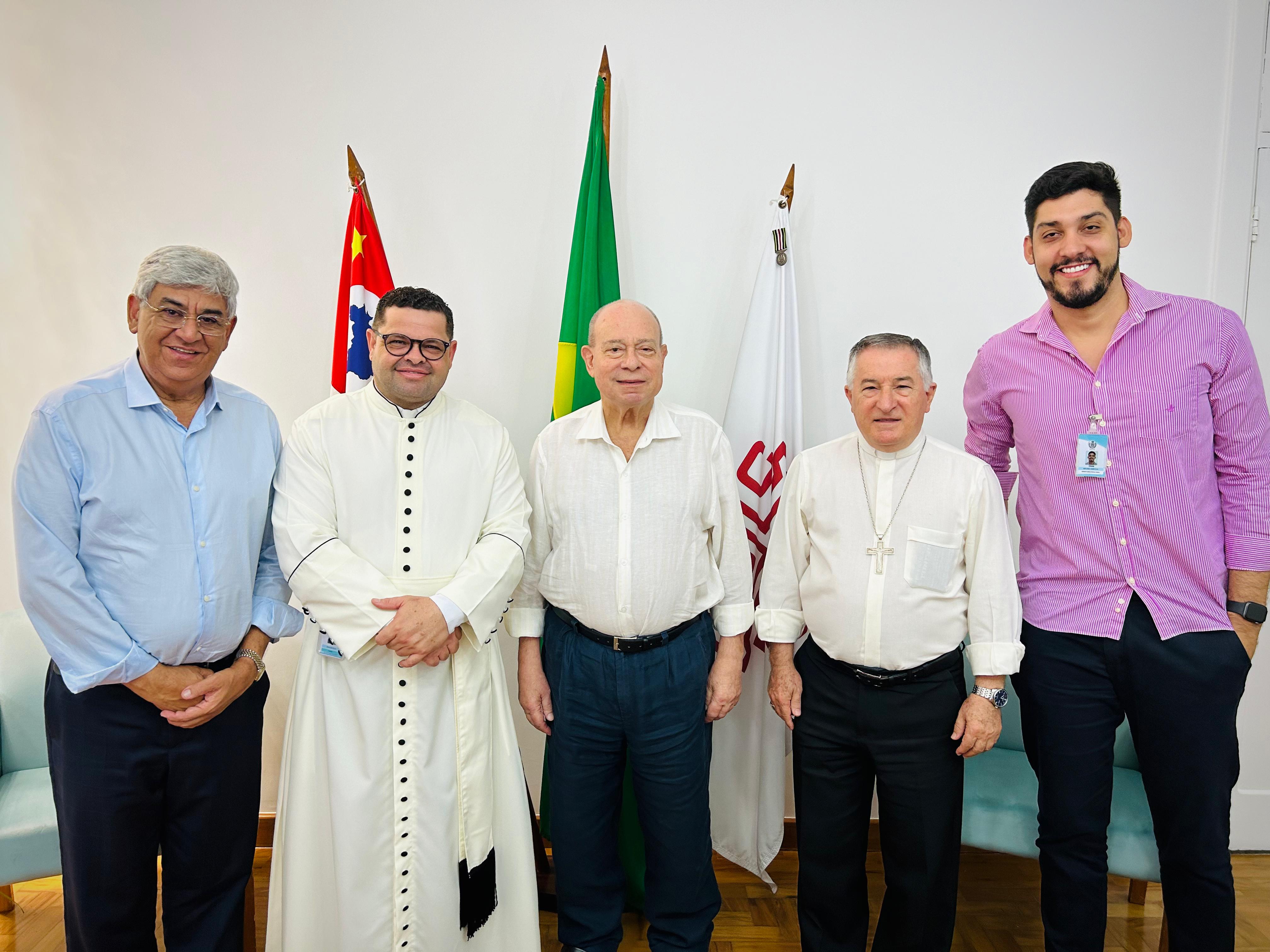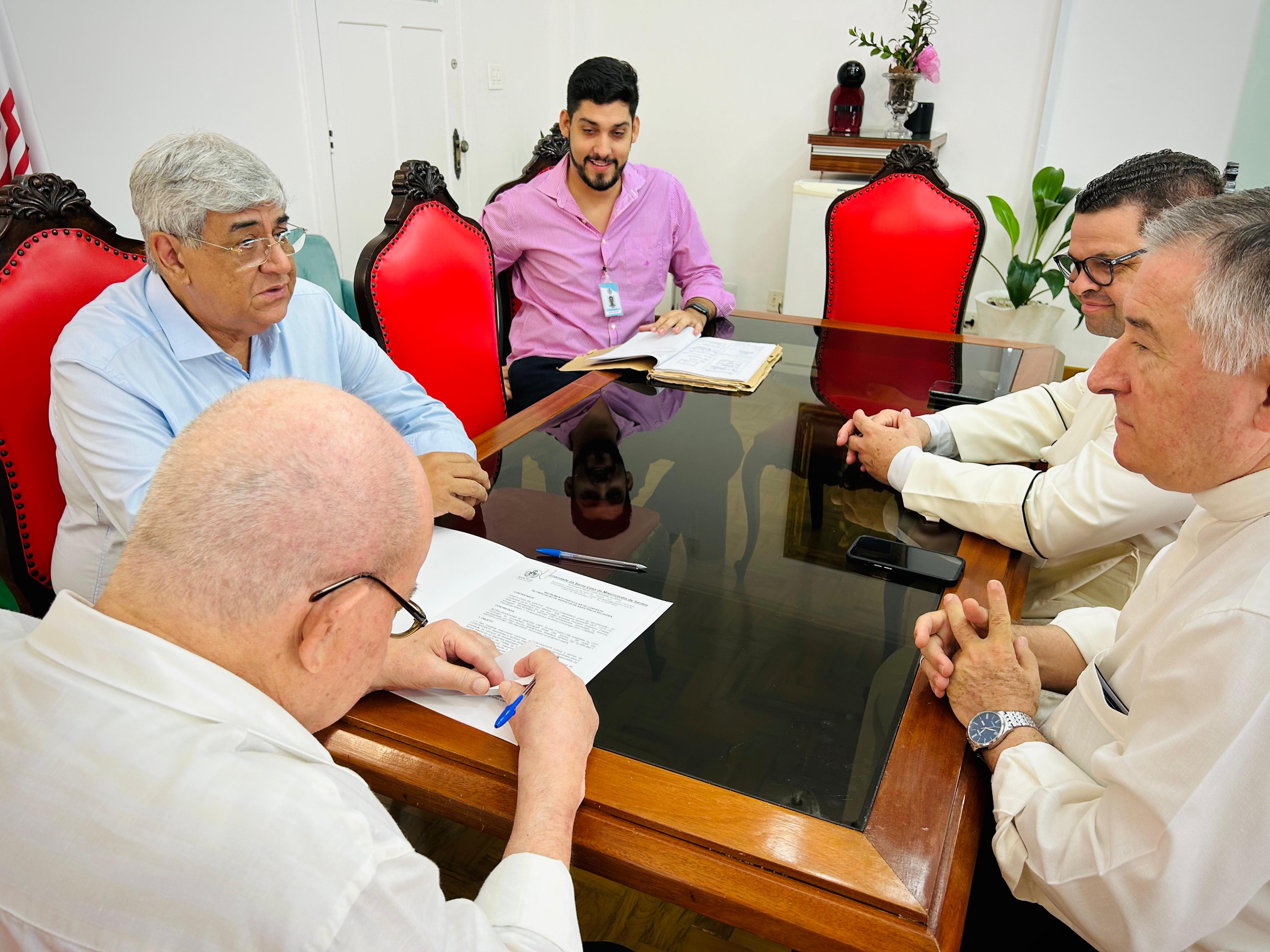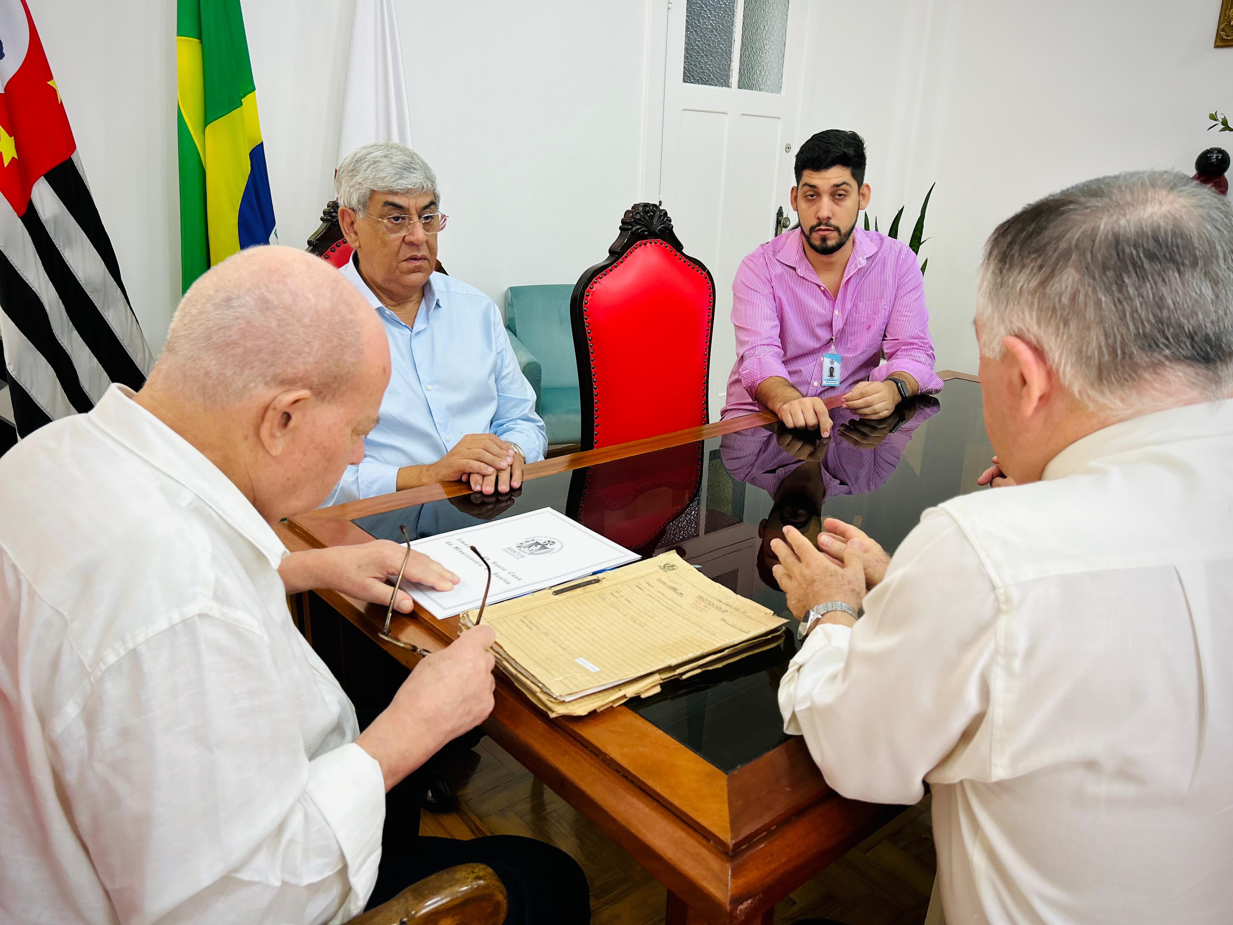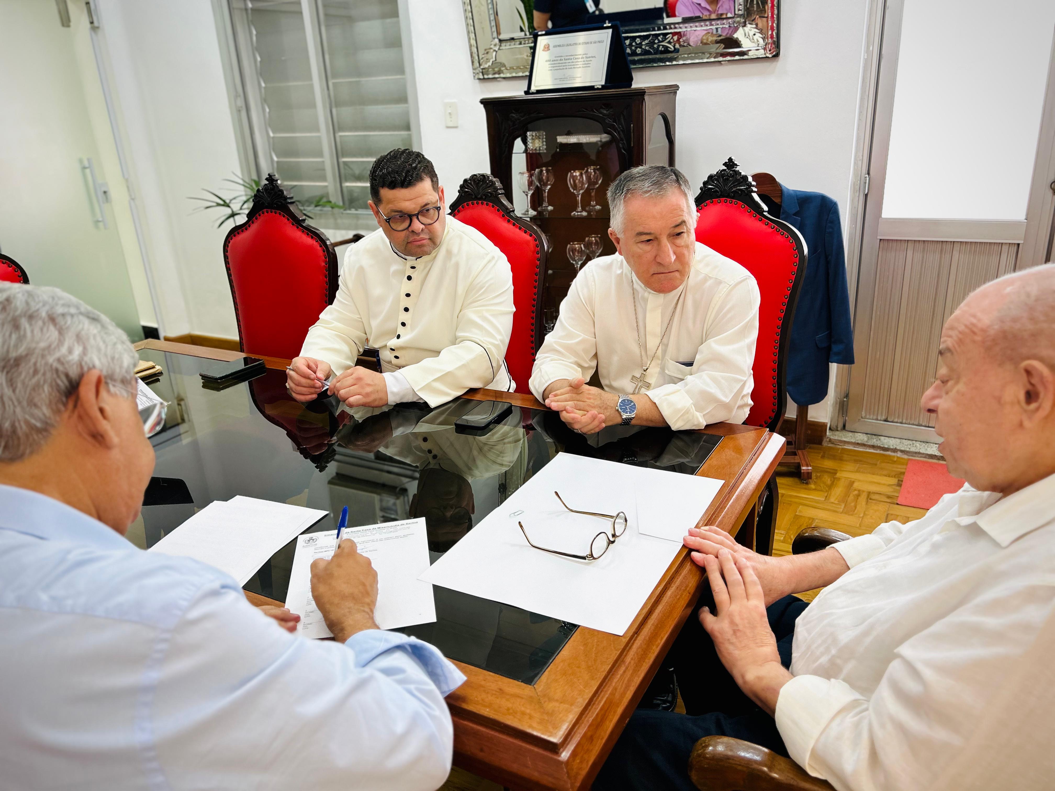 O bispo Dom Tarcísio Scaramuzza esteve na Santa Casa de Santos, em reunião com o provedor Ariovaldo Feliciano e o vice-provedor Carlos Teixeira Filho. Também participaram da reunião, o capelão Padre Denilson, da Capela Santa Isabel e o Gerente de Obras e Infraestrutura Bruno Dantas.