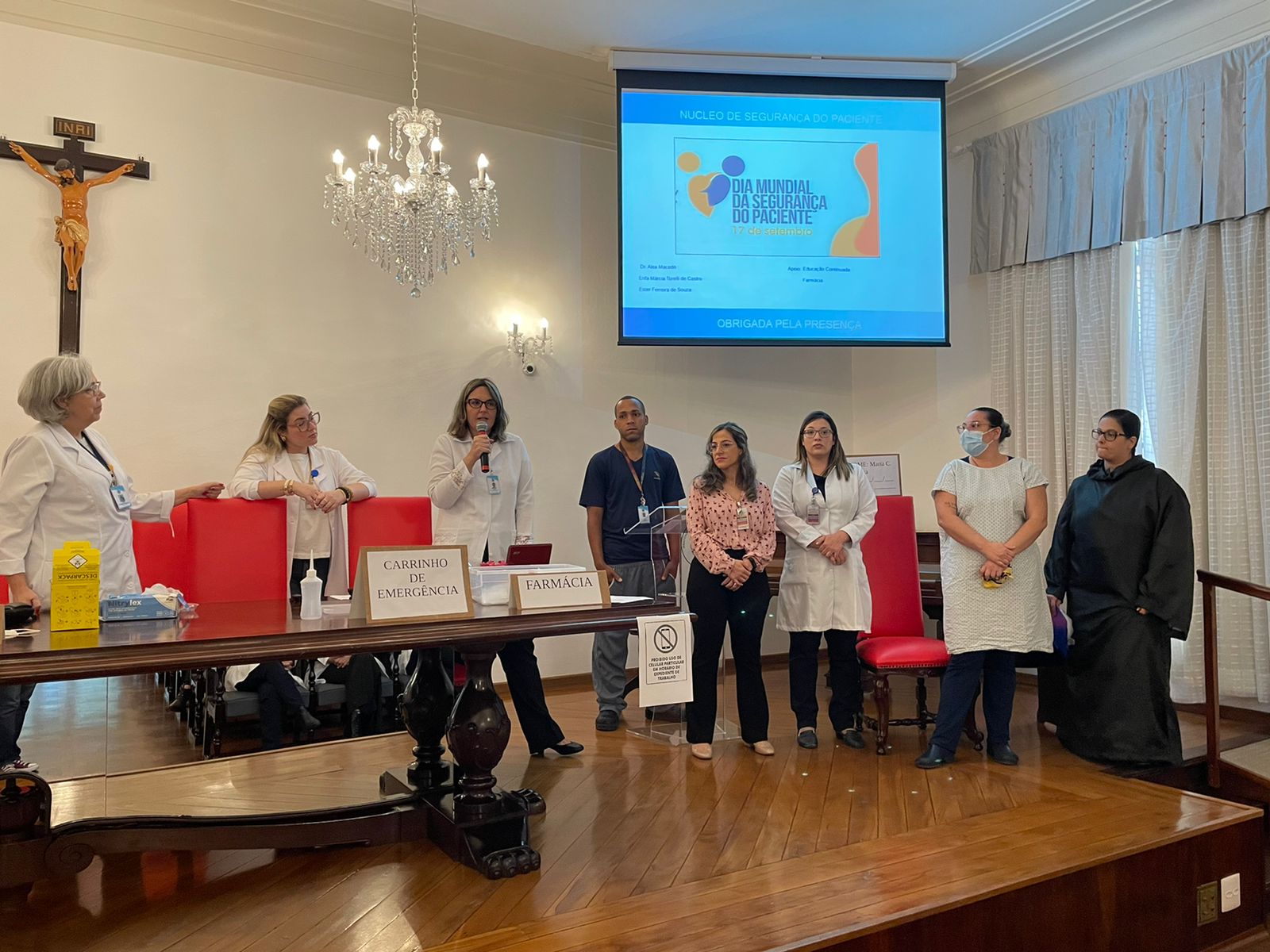Vale destacar que o evento foi organizado pela Enfª Márcia Torelli e Assistente Administrativo Ester Ferreira, do Núcleo de Segurança do Paciente, com apoio da Educação Continuada e Farmácia.