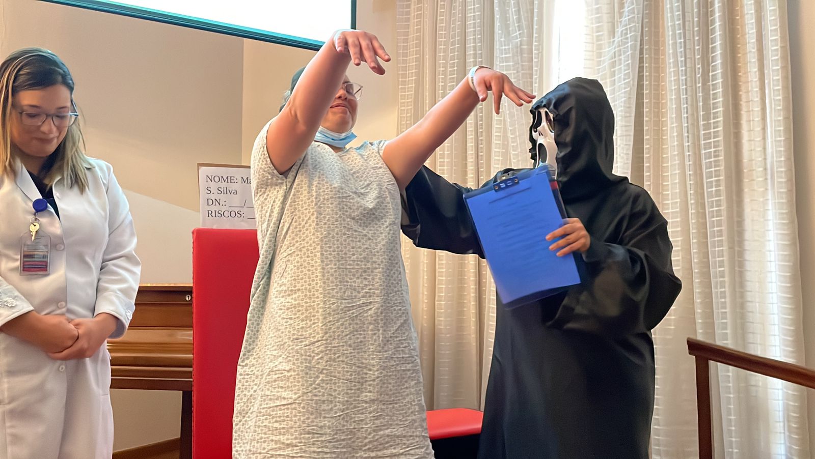 O ápice do evento ficou por conta de um teatro organizado especialmente para chamar a atenção sobre os riscos das condutas inadequadas em todo o processo da medicação, desde a prescrição médica até a administração do medicamento.