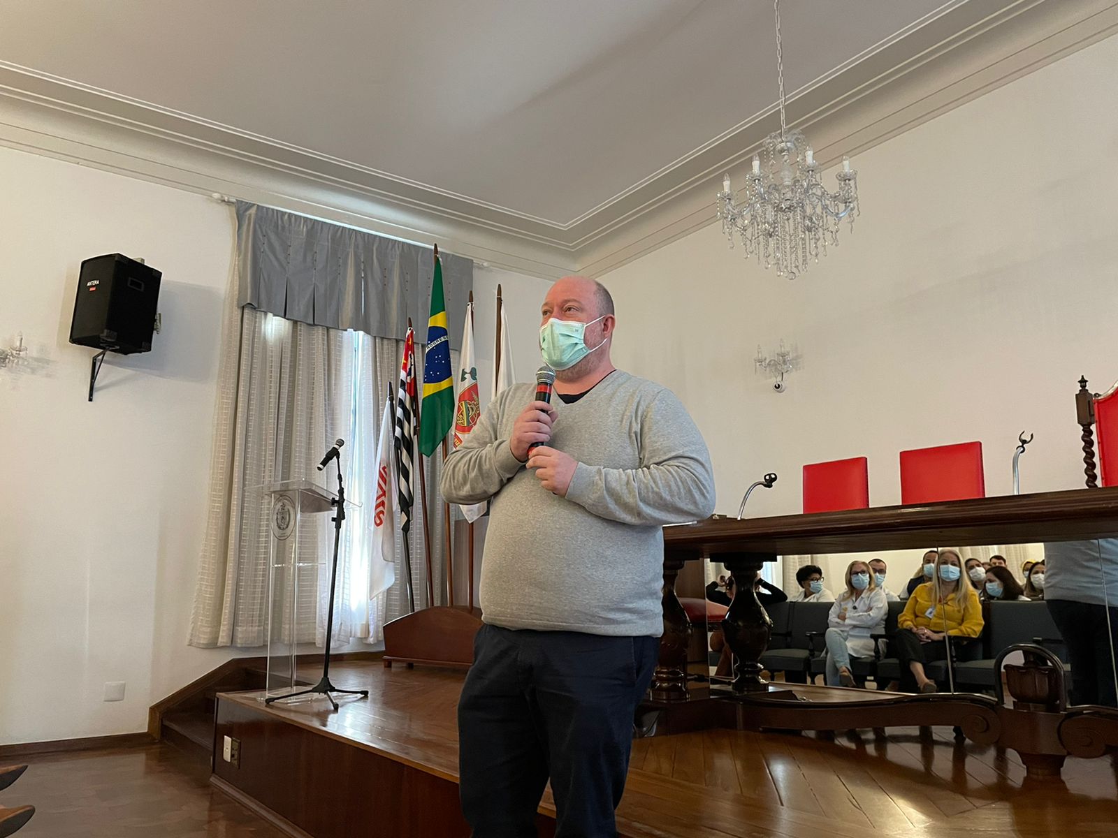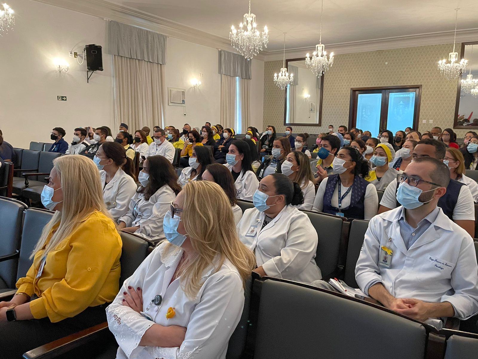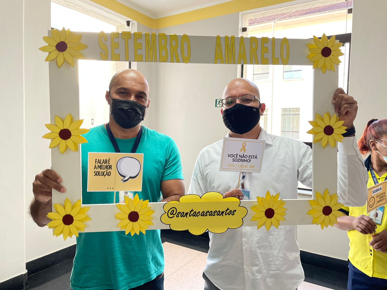 A programação do primeiro dia da Semana Amarela contou com palestras do Dr. Bruno Reis, Chefe do Serviço de Psiquiatria da Santa Casa; da Psicóloga Rita Russo, Coordenadora do Serviço de Psicologia; e apresentação do Enfº. Júlio Sabino, do Setor de Medicina do Trabalho, que falou sobre o grupo de apoio criado pelo serviço, especialmente para o cuidado da saúde mental do colaborador.