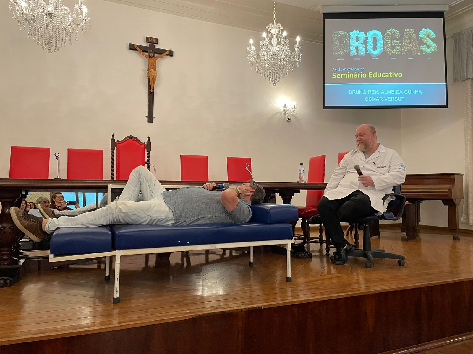 Para sensibilizar os participantes, o médico psiquiatra e responsável pelo Serviço de Psiquiatria da Santa Casa, Dr. Bruno Reis, e o psicólogo Dr. Osmar Versuti fizeram uma encenação de uma consulta onde o paciente não expressa ter um problema relacionado ao alcoolismo, e não considera grave o fato de estar bebendo em excesso e com frequência.
