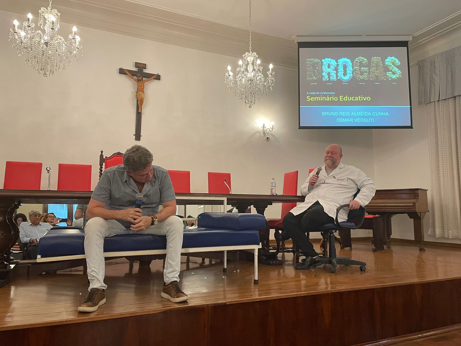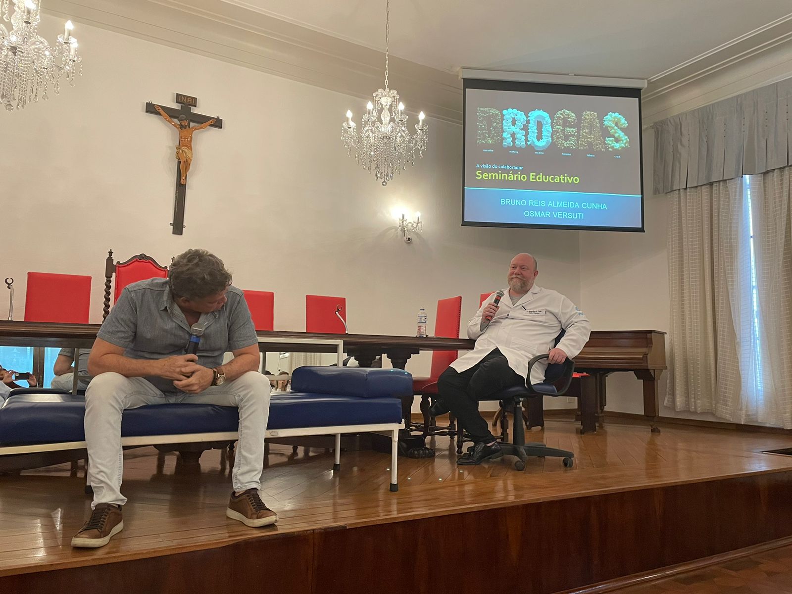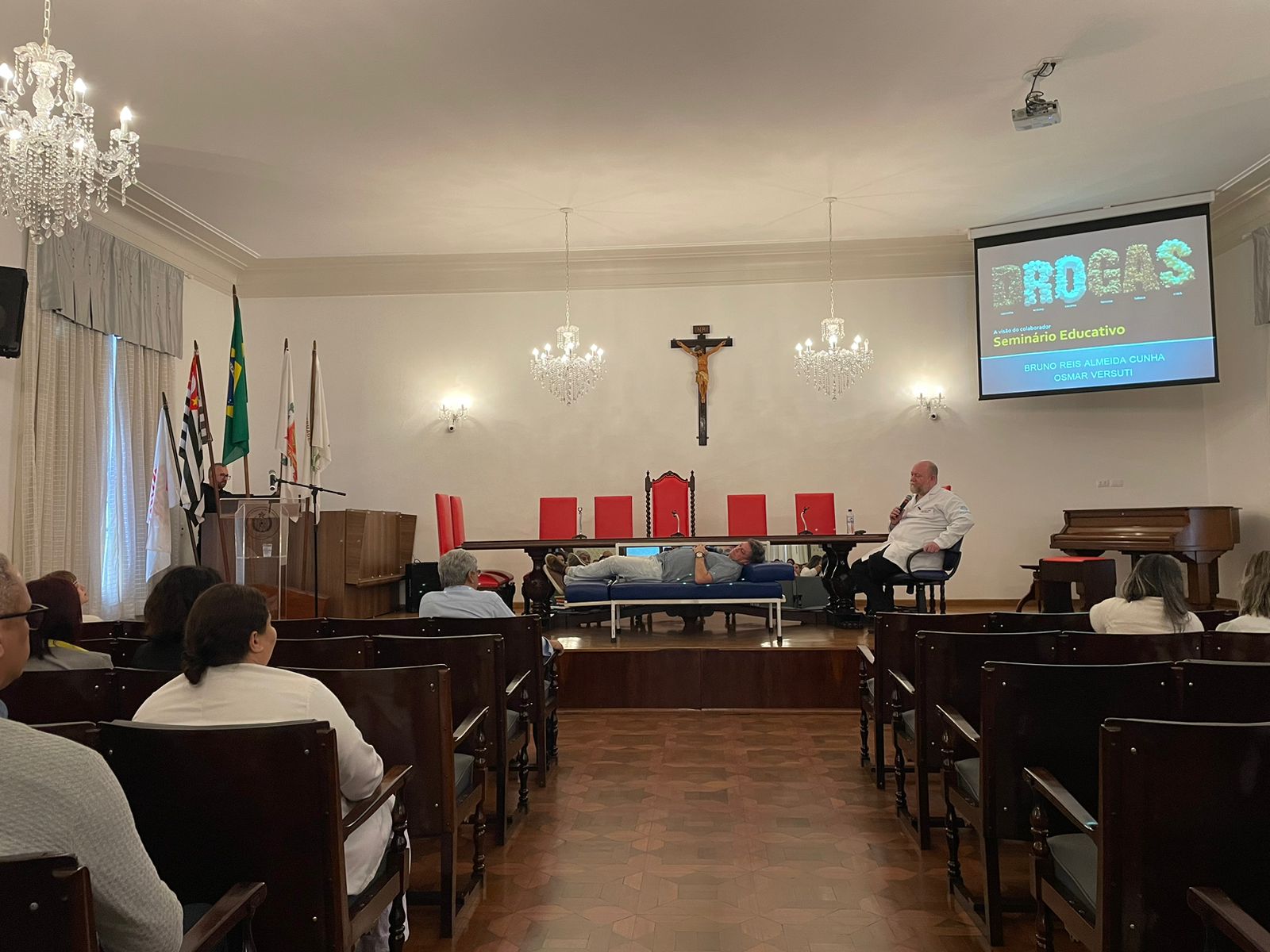 O psicólogo da Santa Casa, Dr. Osmar Versuti, especialista no tema, de maneira abrangente exemplificou muitas situações e casos, alertando quanto aos riscos das drogas, mascaradas como opções de lazer ou relaxamento, e que aprisionam as pessoas de modo silencioso inicialmente.