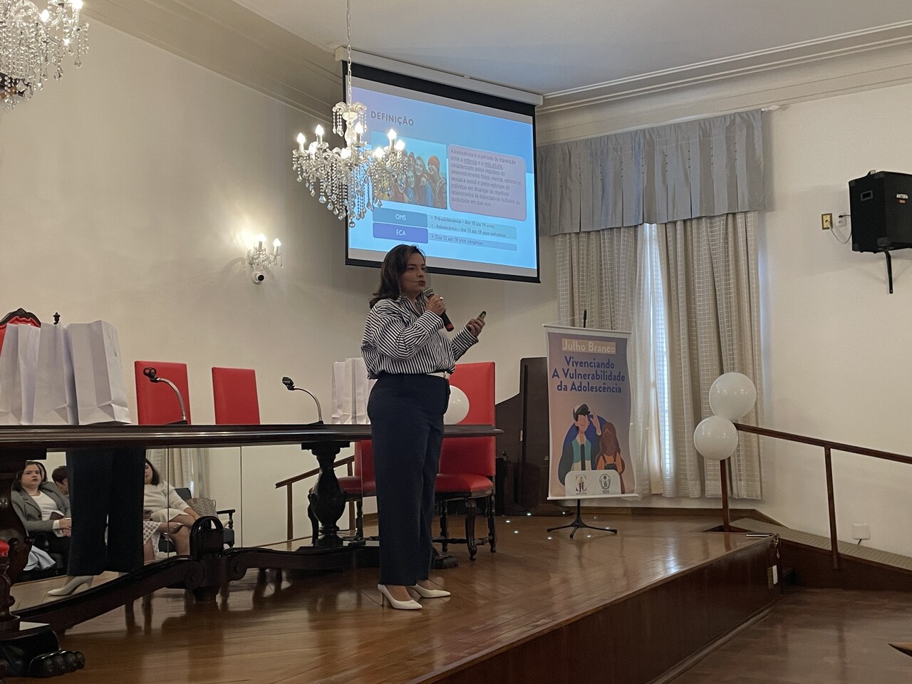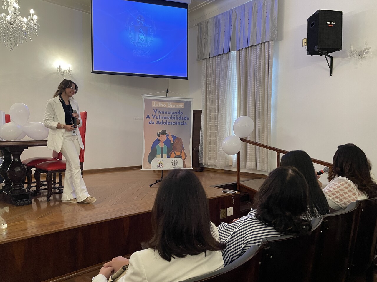 Na tarde do dia 31 de julho de 2024, o Consistório da Santa Casa de Santos ficou lotado com profissionais de saúde para assistirem painéis sobre o Julho Branco - Mês que debate a Vulnerabilidade na Adolescência. O Serviço de Pediatria da Irmandade organizou o evento que contou com cerca de 127 inscritos.