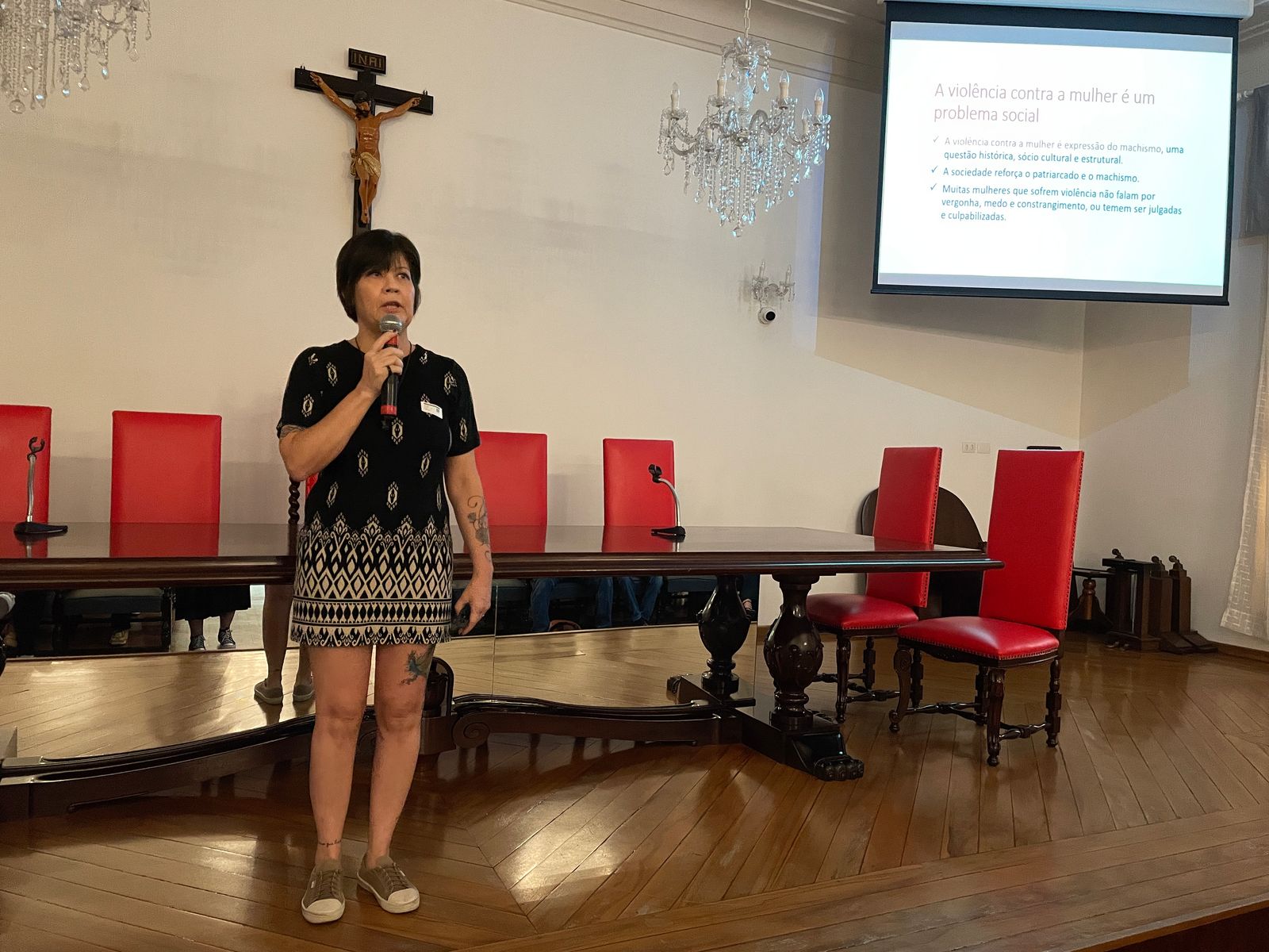No 3º dia de SIPAT, na parte da manhã, o tema “Violência Contra Mulheres” foi abordado pela professora da Universidade São Judas, Drª. Ana Maria Melo e Souza, que detalhou sobre todas as formas de violência, seus impactos, além de informar sobre como e onde buscar ajuda.