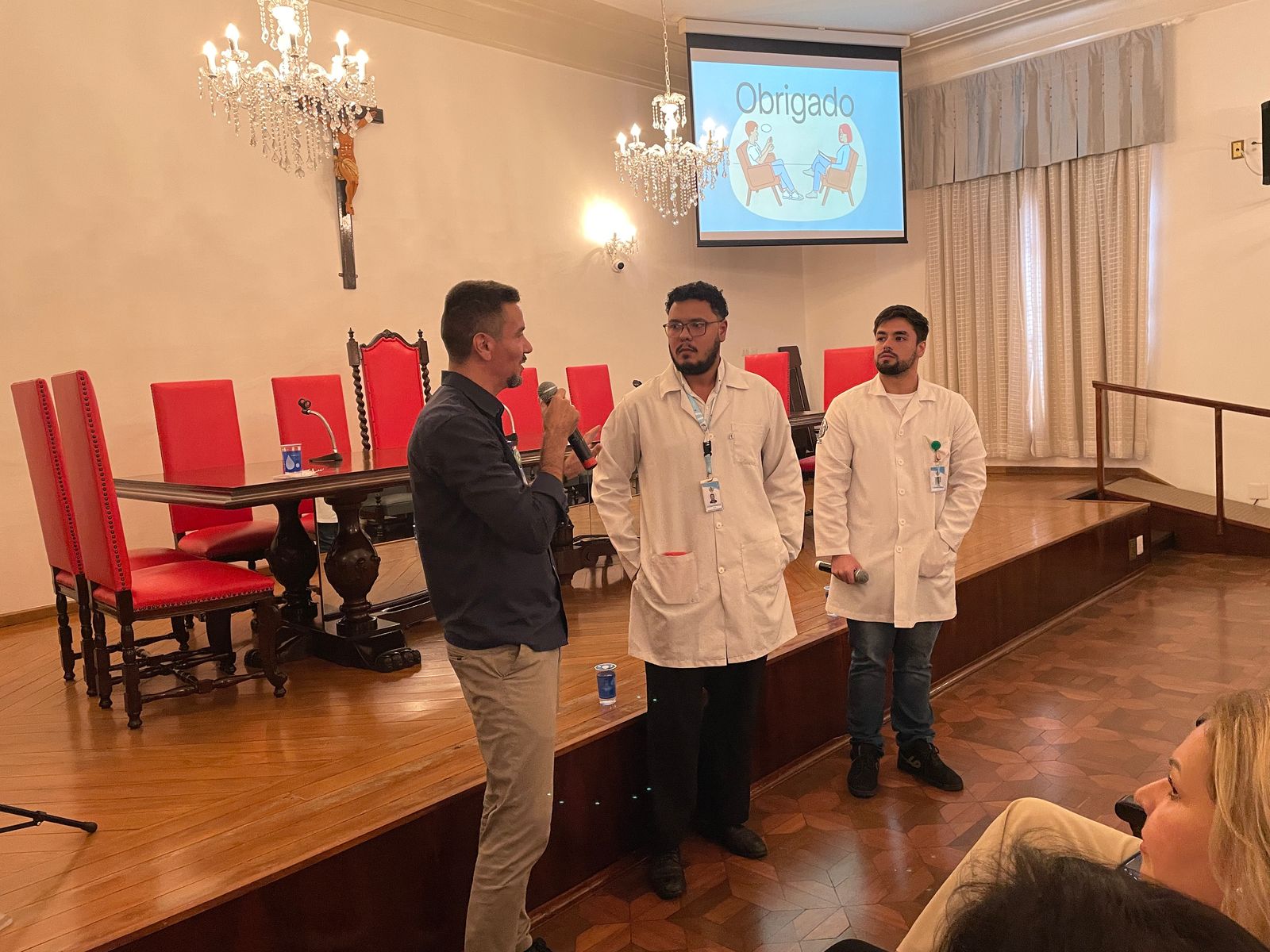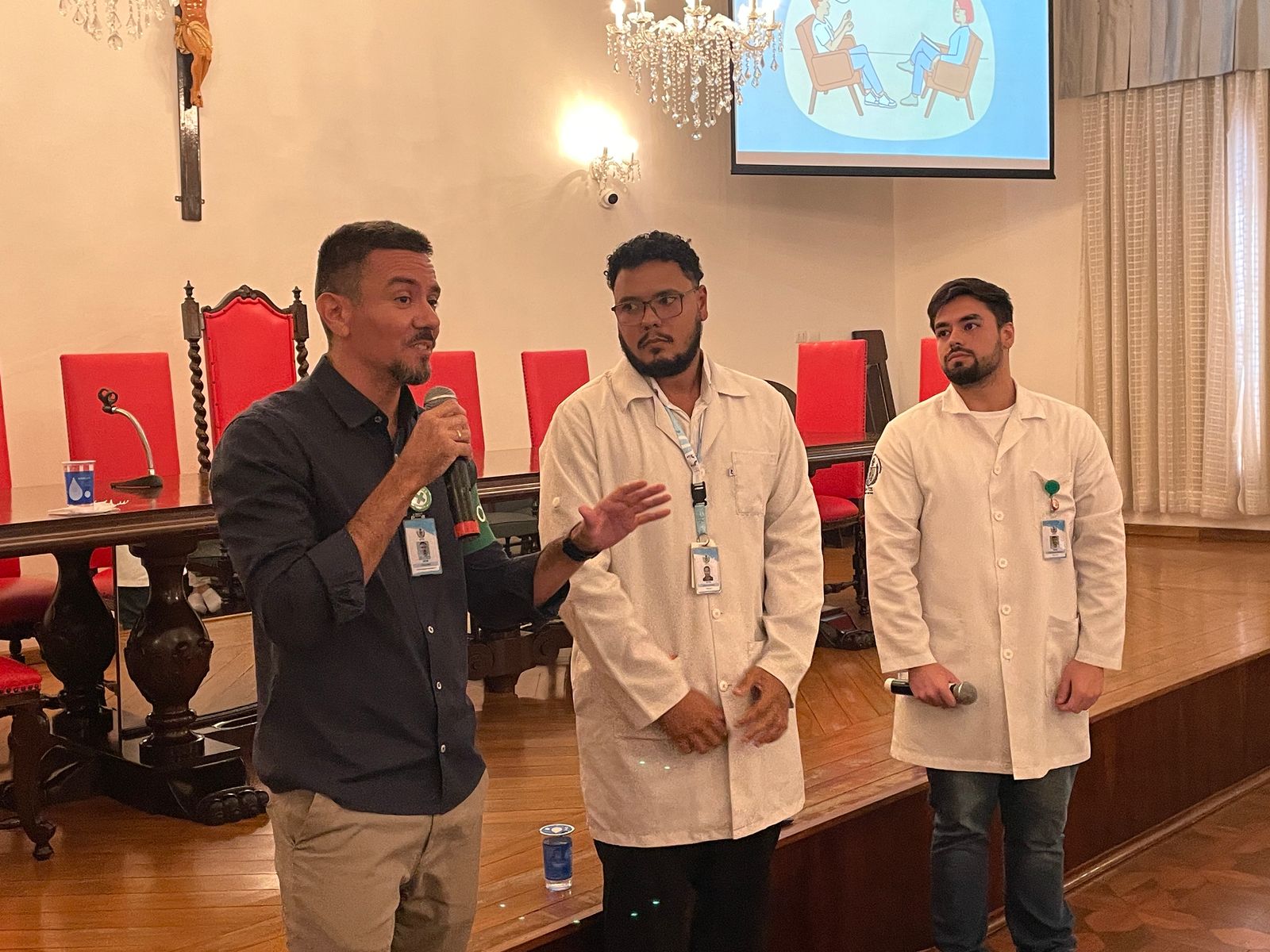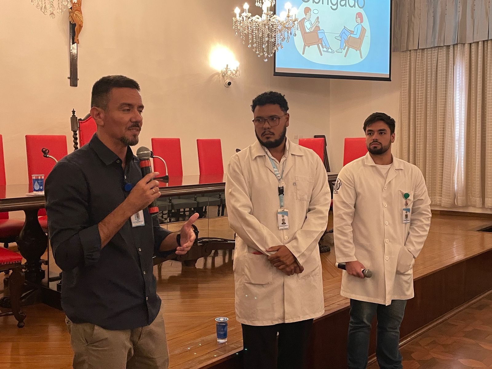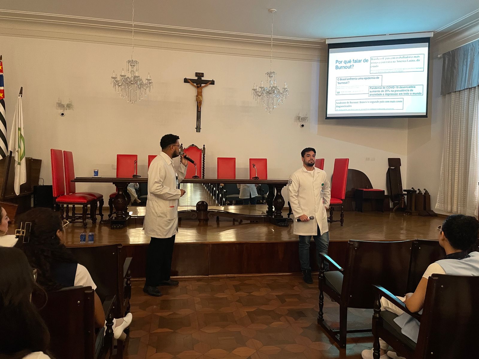 Na palestra da tarde do dia 25/3, os Psicólogos Ocupacionais da Santa Casa, Júlio Maurício e Leonardo Fagundes, falaram sobre o Burnout e a exaustão profissional.