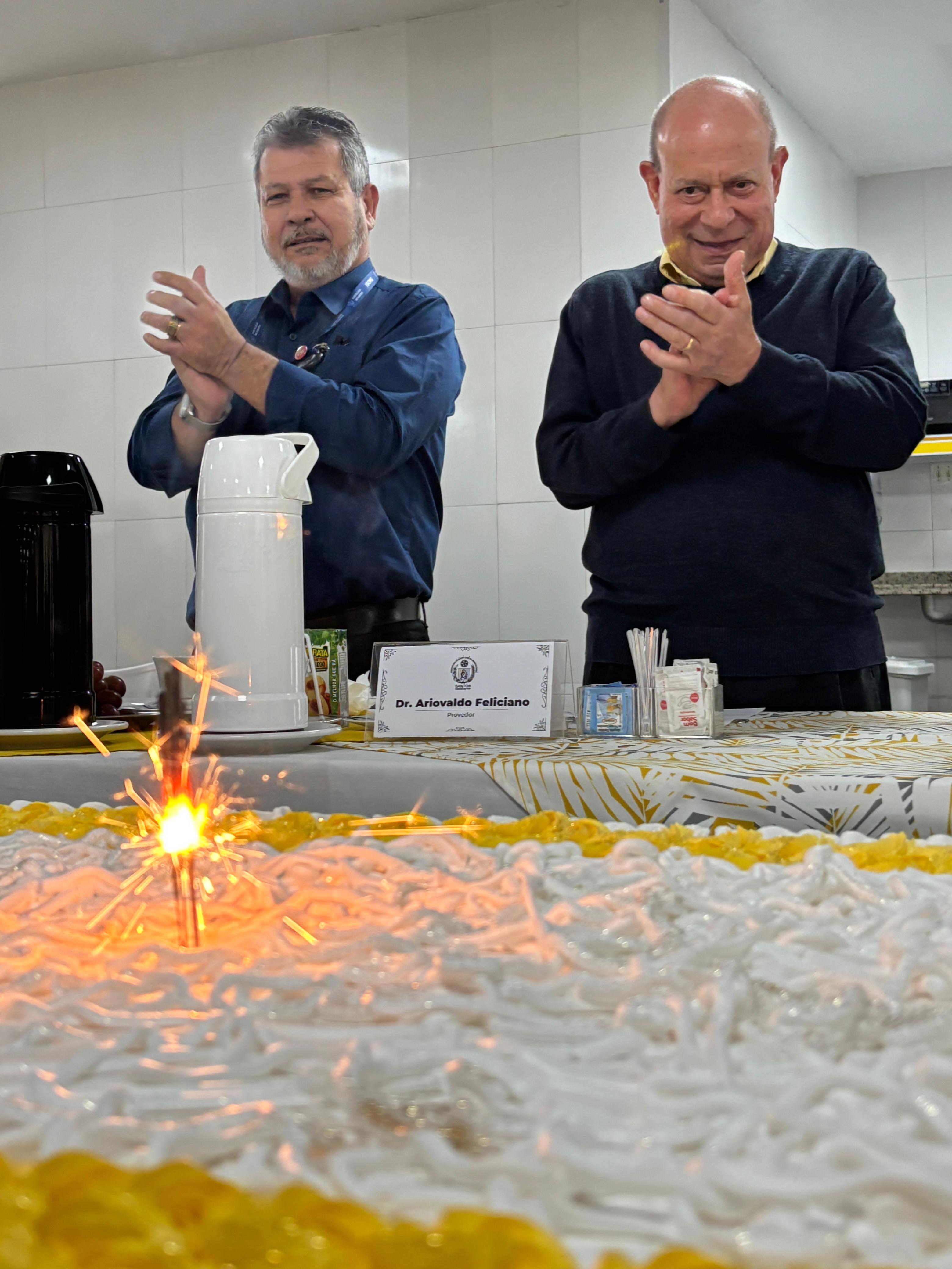O evento foi finalizado com todos cantando o tradicional “Parabéns para você” e a distribuição do bolo confeitado, feito pelo Departamento de Nutrição e Dietética especialmente para os aniversariantes.