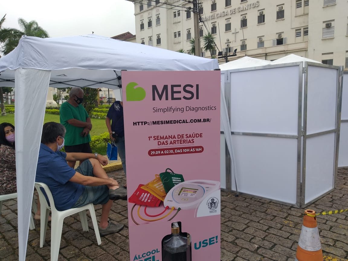 Esta foi a primeira vez que este tema foi abordado em uma campanha no país. Em parceria com a MESI Medical, a Santa Casa de Santos trouxe um equipamento da Eslovênia, inédito no Brasil, e o único que detecta bloqueio de artérias em apenas 1 minuto. Em ação organizada pelo hospital, a população teve a oportunidade de realizar o exame, que consiste na medição do índice tornozelo-braquial, e os resultados foram entregues na hora. Todos que tiveram alguma alteração também receberam orientações da equipe de Cirurgia Vascular da Santa Casa de Santos. Tudo gratuito!