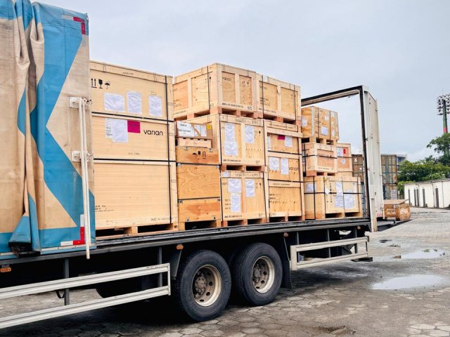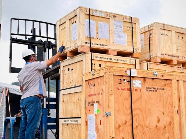 Com mais de 20 toneladas, o novo acelerador será instalado no Serviço de Radioterapia da Santa Casa, ampliando a capacidade de tratamento oferecida aos pacientes. Atualmente, o setor realiza mais de 1.200 sessões de radioterapia por mês e, com a chegada do novo equipamento, a expectativa é que esse número possa dobrar.