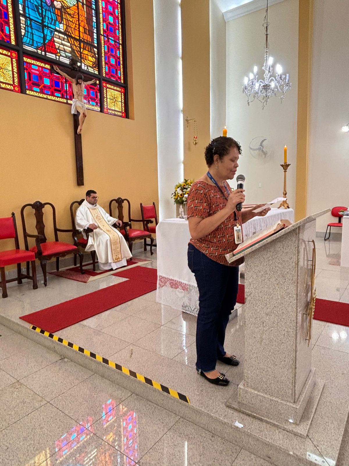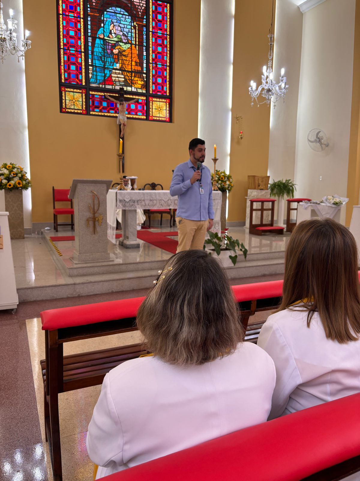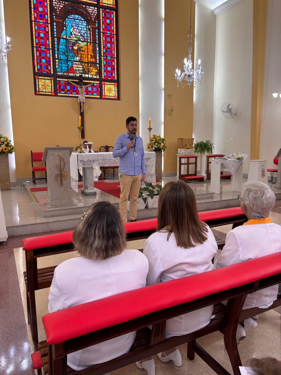 Durante a homilia, Padre Denilson ressaltou o papel essencial dos voluntários no acolhimento aos pacientes e familiares. “Os ‘Amarelinhos’ são parte da história da Santa Casa. Eles estão presentes nos momentos de dor e sofrimento, oferecendo uma palavra amiga ou até mesmo um abraço”, destacou.