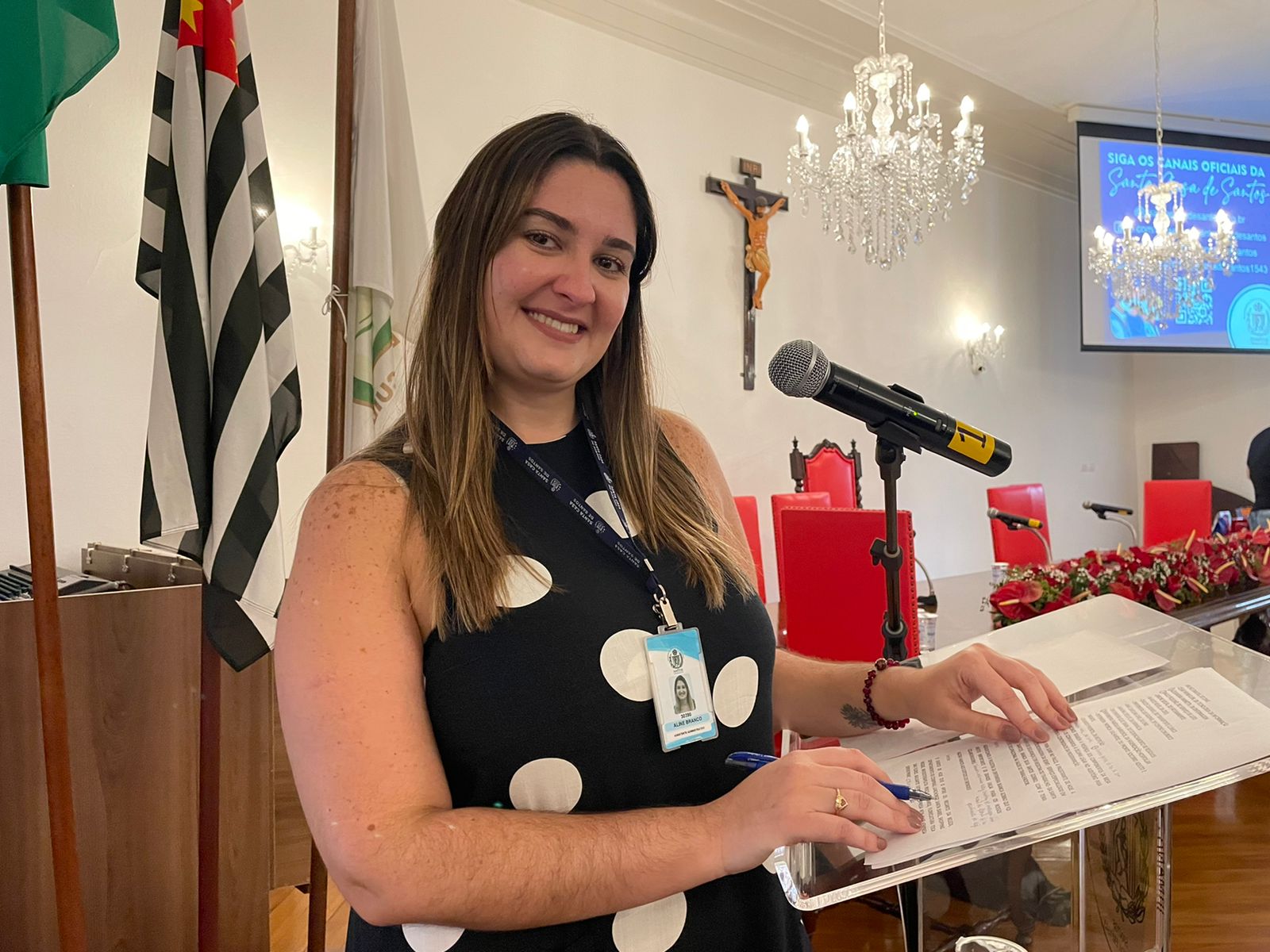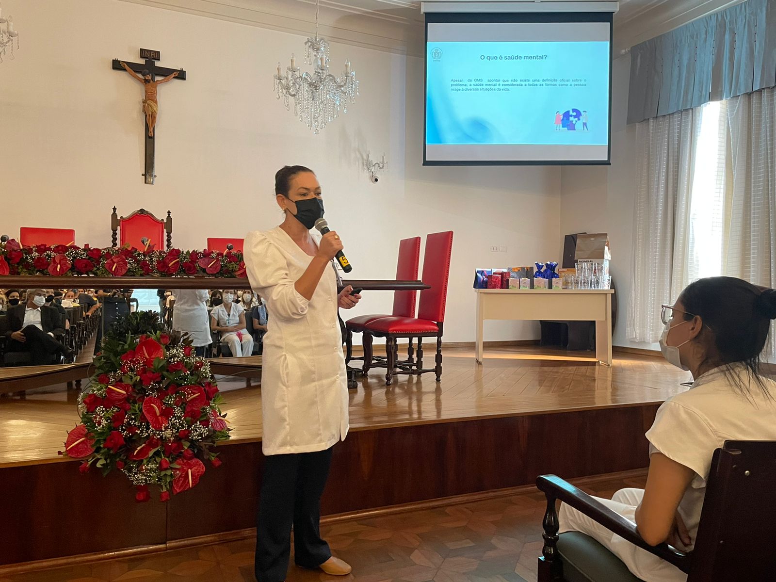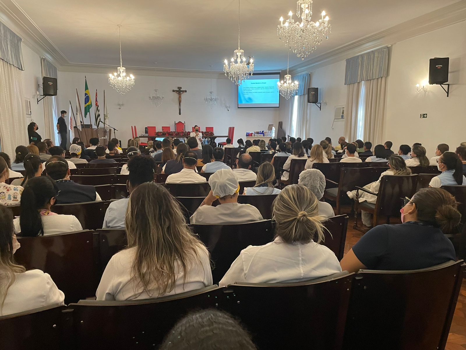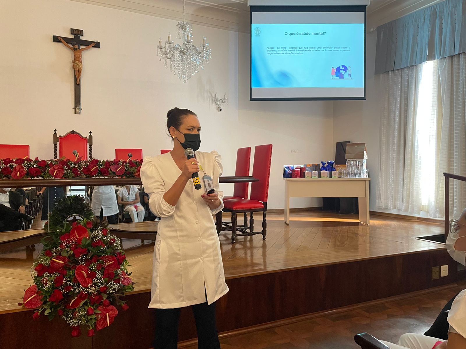 Semana Interna de Prevenção de Acidentes do Trabalho da Santa Casa de Santos começa com tema atual, abordado pela Enfª. Bianca Gobbo, do Setor de Medicina no Trabalho.