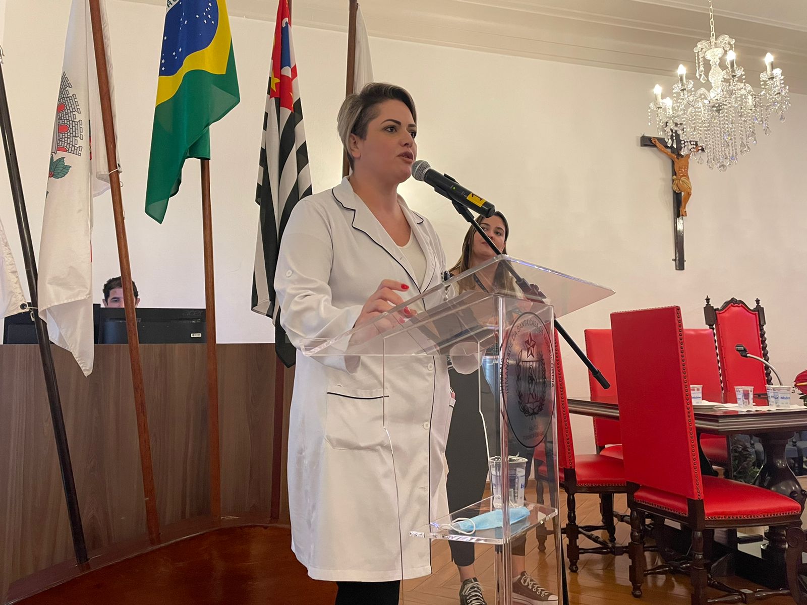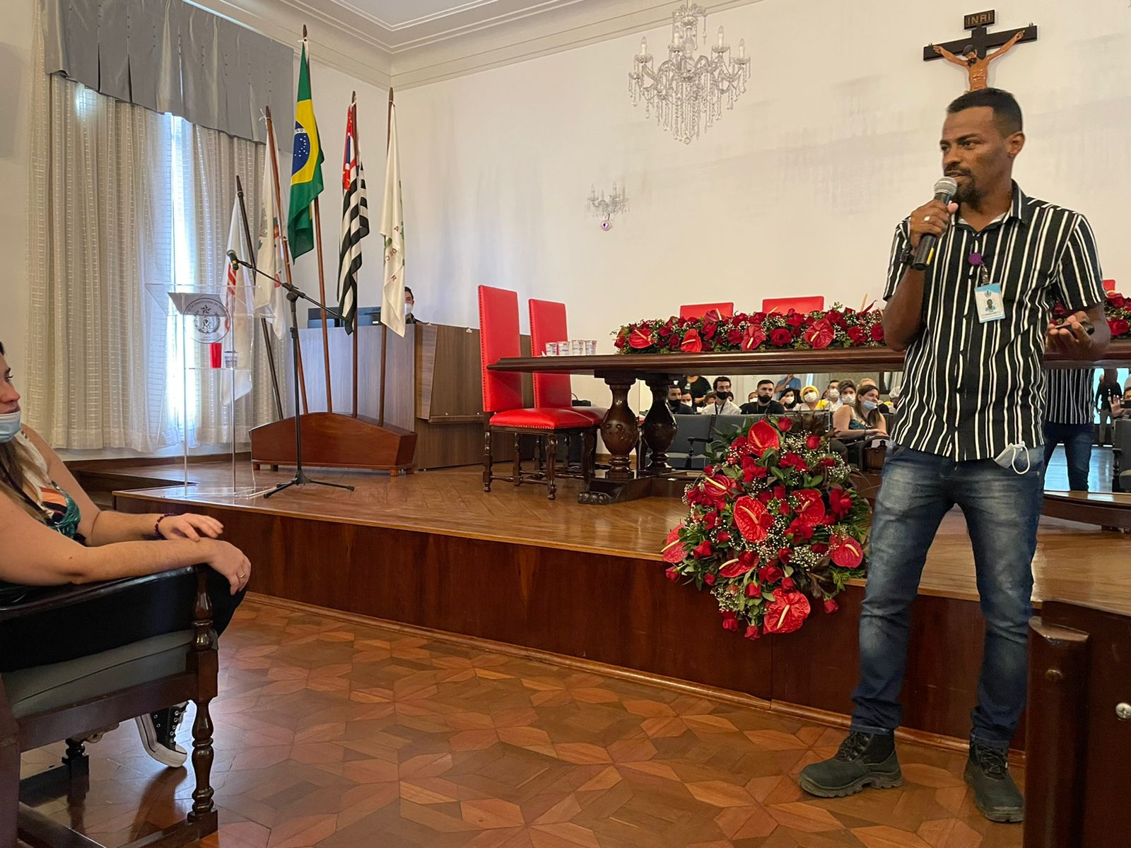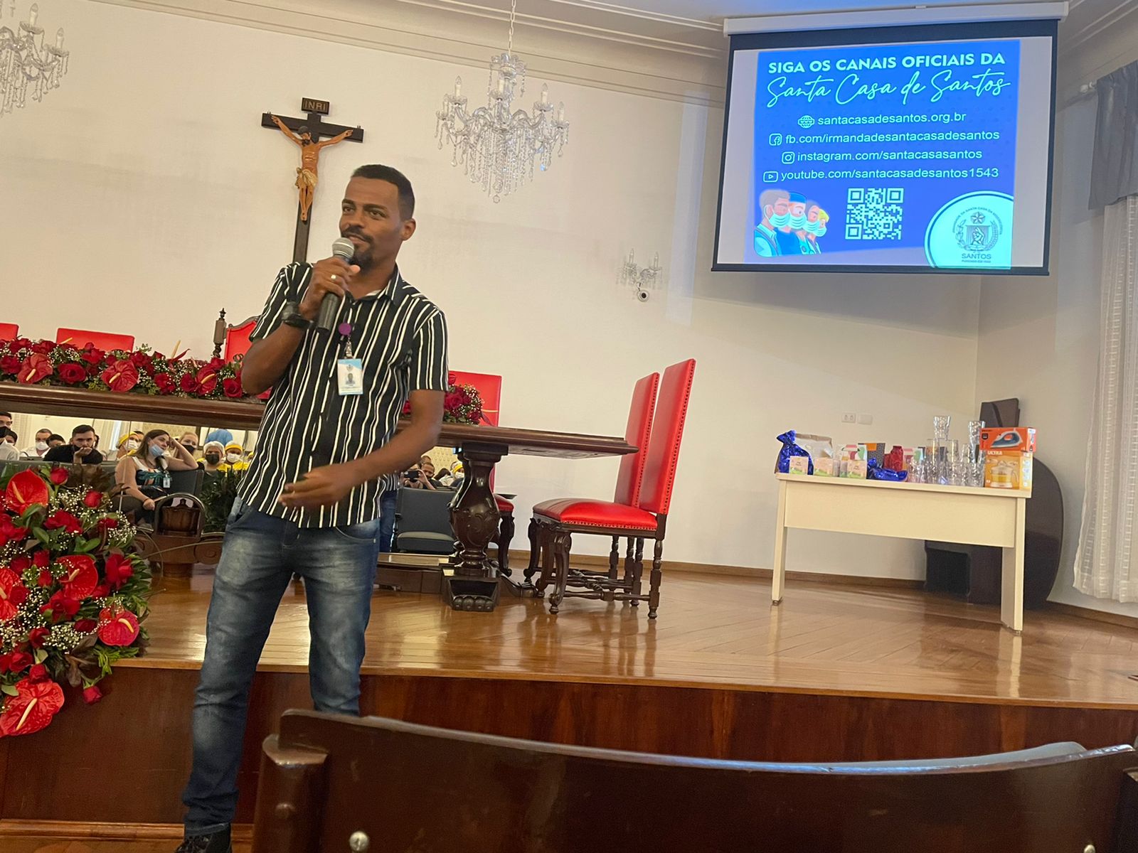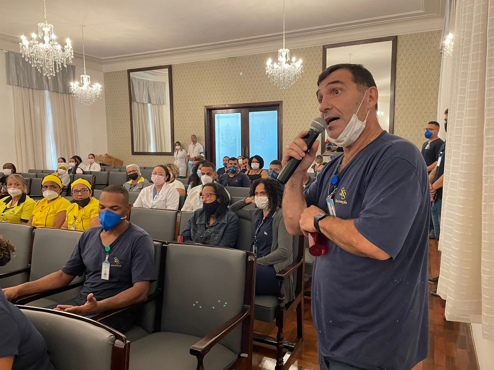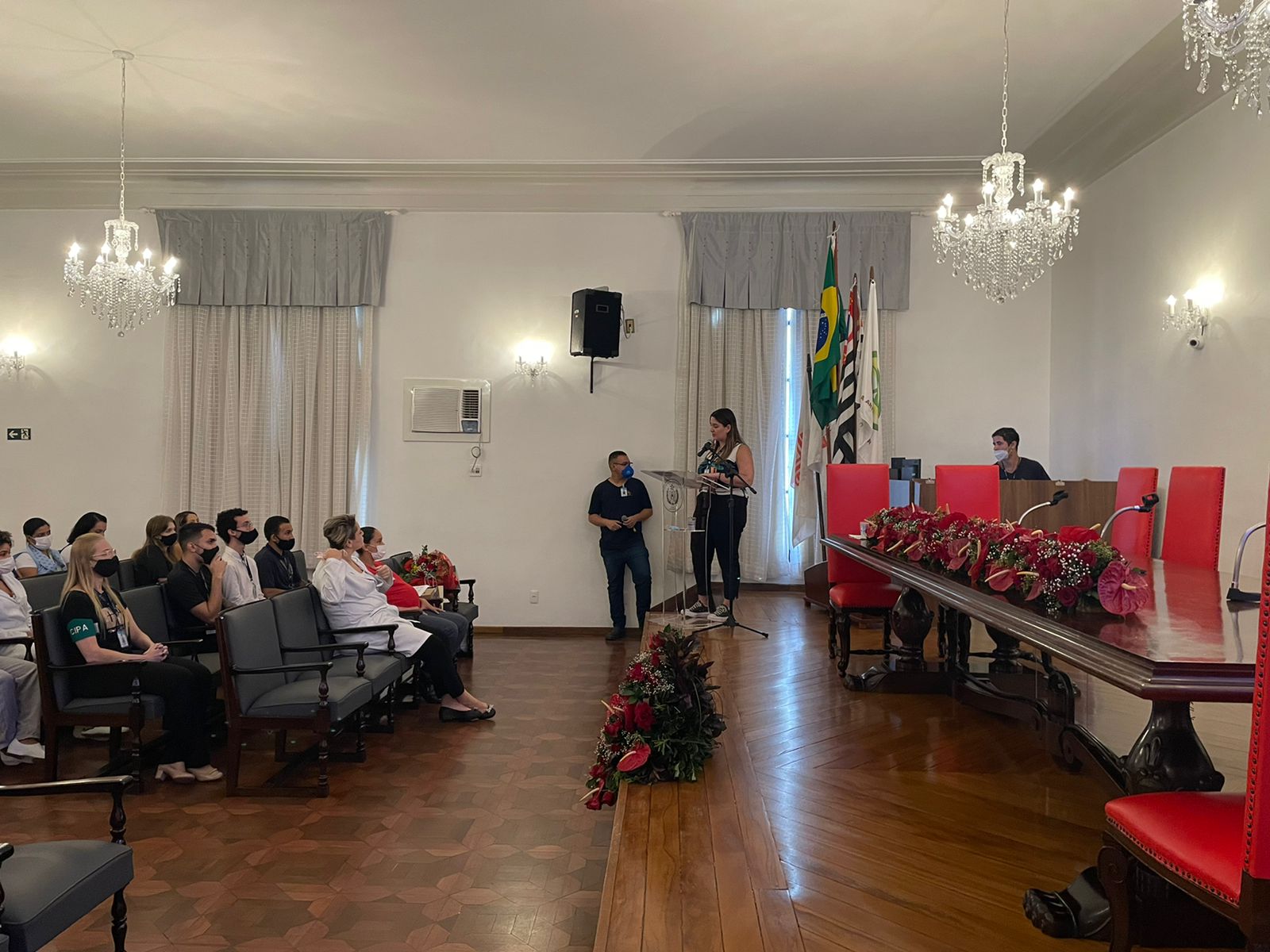 Para encerrar a palestra, Flávio fez uma homenagem aos profissionais de enfermagem e da limpeza, para que recebessem uma salva de palmas pela atuação na pandemia.
