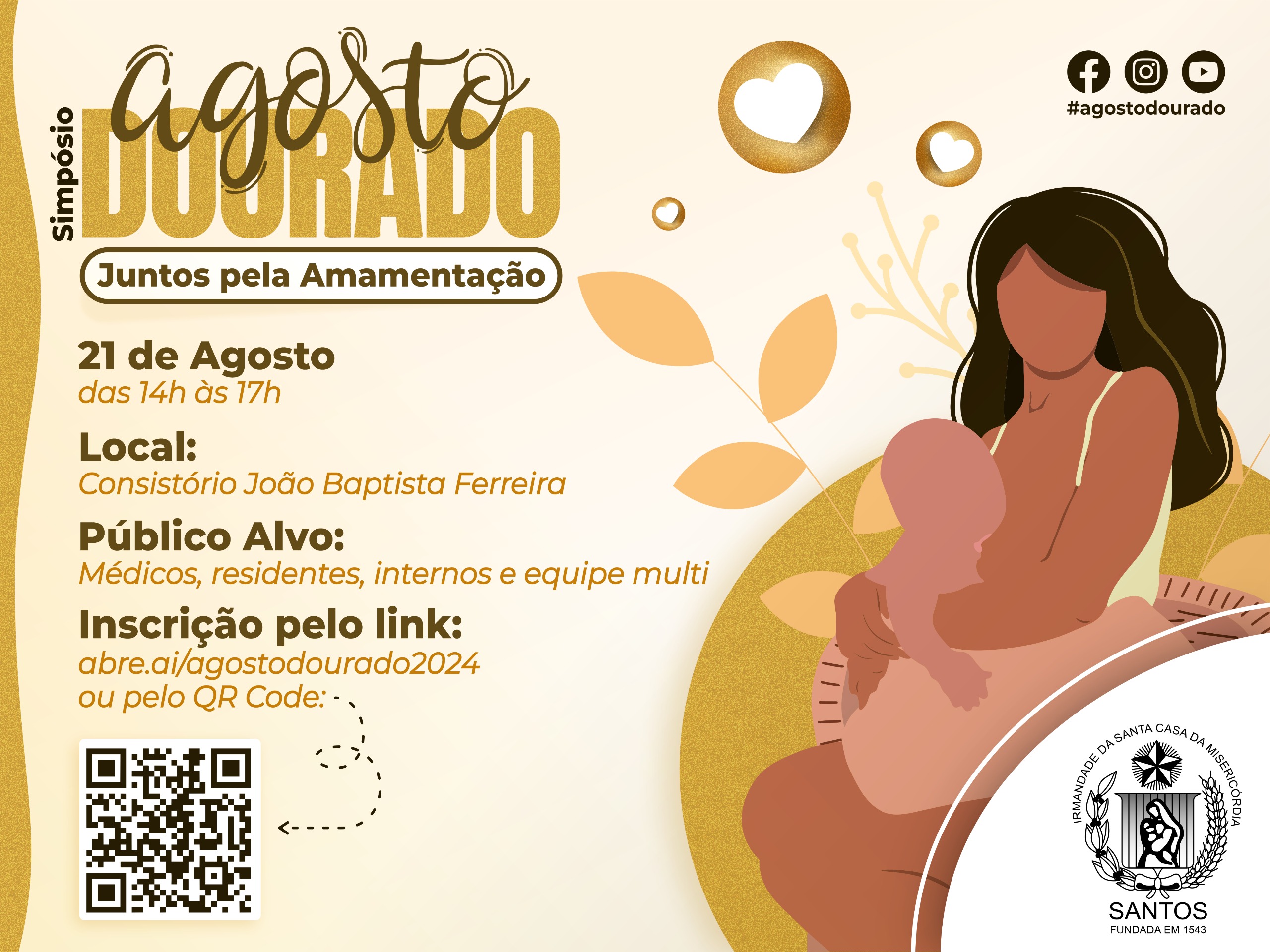 O Serviço de Pediatria da Santa Casa de Santos promove o Simpósio em alusão ao Agosto Dourado - Mês de incentivo à amamentação, no dia 21 de agosto às 14 horas, no Consistório da Irmandade. Com o slogan “Juntos pela amamentação”, o evento é voltado aos médicos, residentes, internos e equipe multiprofissional. O tema do simpósio compõe a série de ações incentivadas pela Sociedade de Pediatria de São Paulo.