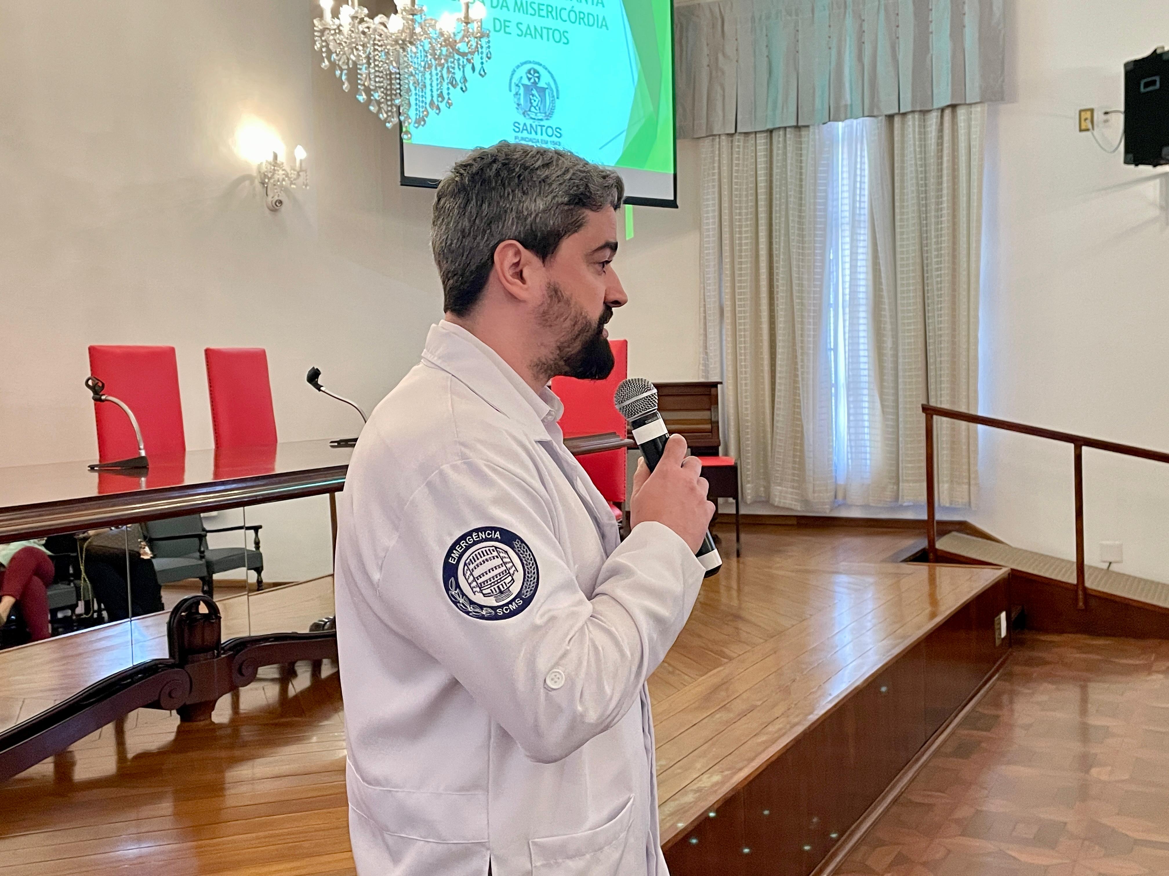 Representando o diretor clínico Dr. Constantino Kader Conde, o médico coordenador dos prontos-socorros e assessor da provedoria, Dr. Daniel Lustoza, passou as principais orientações de conduta da instituição.