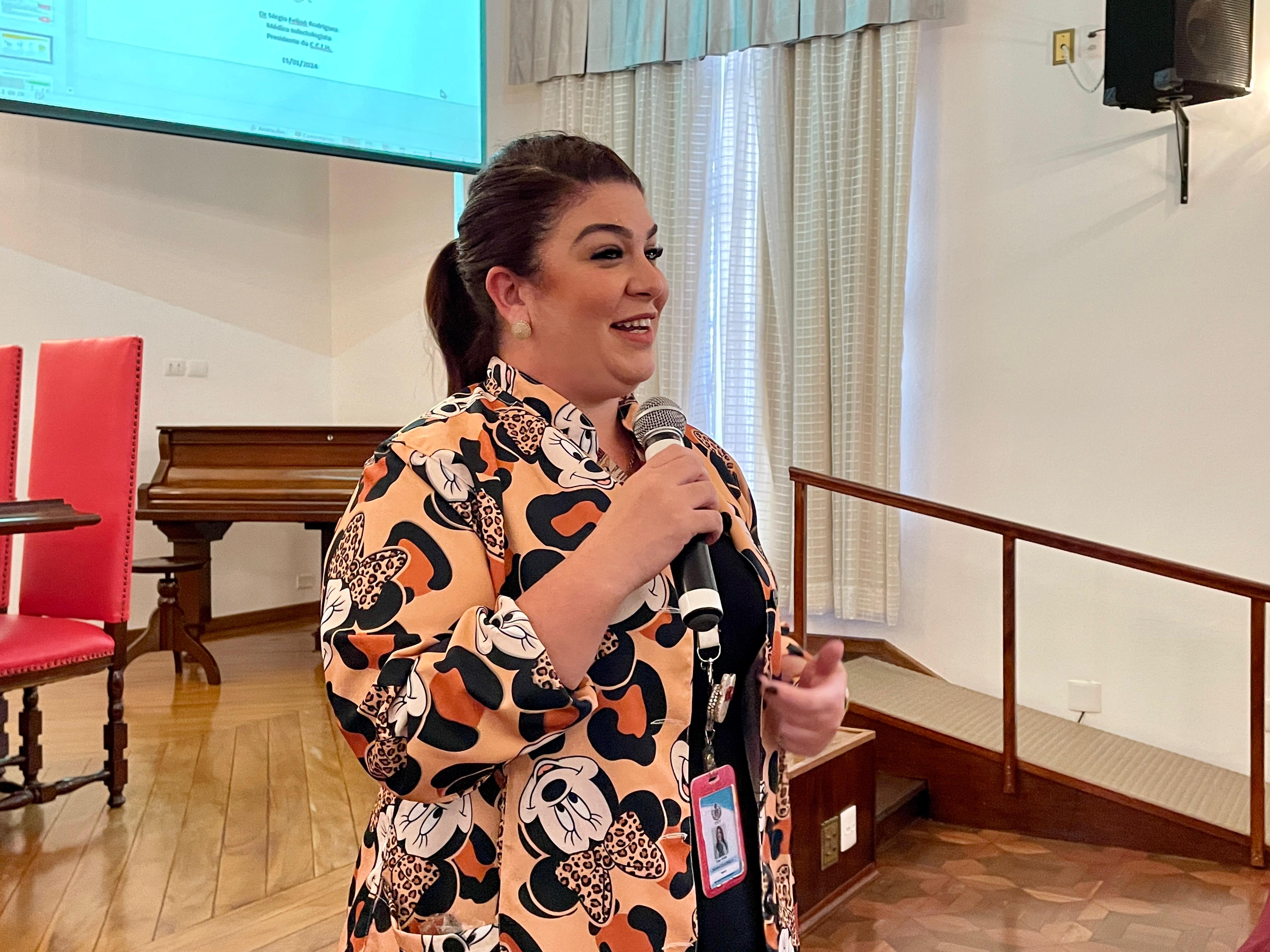 A médica coordenadora da Pediatria, Drª. Bruna Giacomelli, falou um pouco sobre a especialidade, e a pediatra Drª. Ana Dib complementou contando um breve histórico sobre a pediatria, dando dicas para o internato.