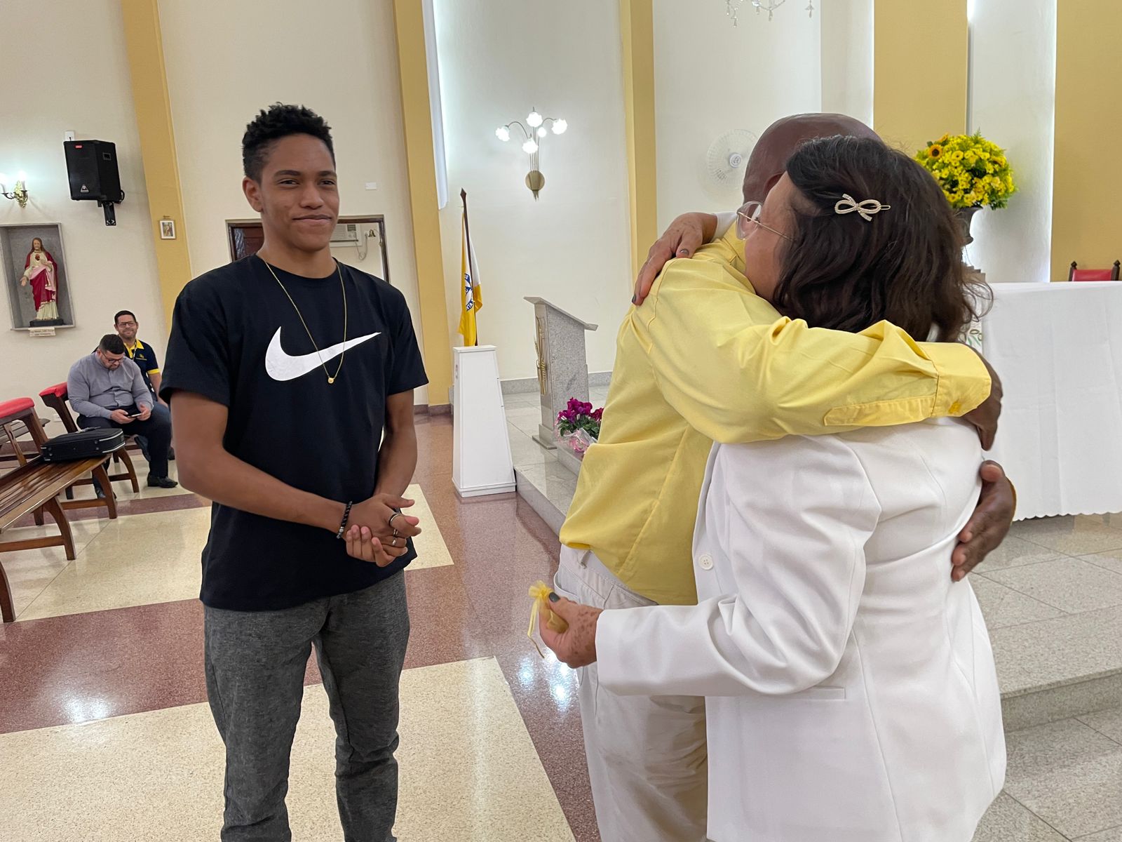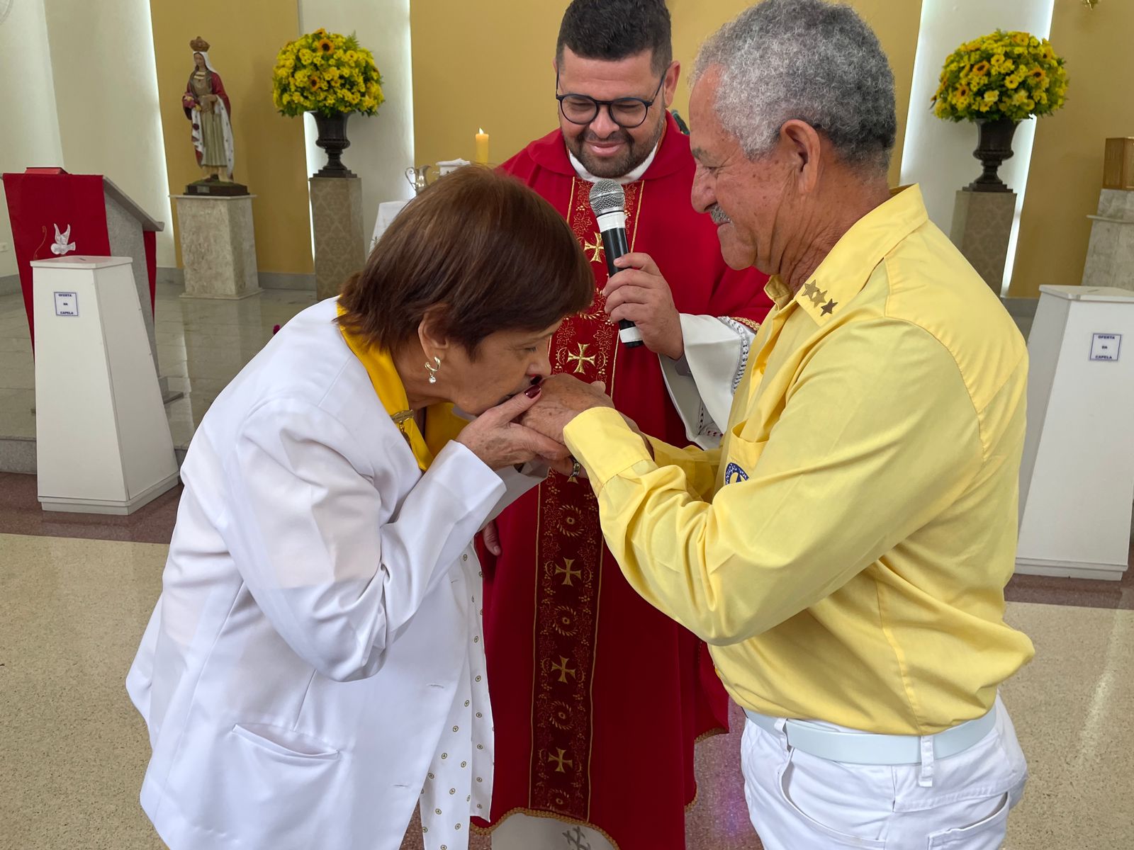 Na missa também foi celebrada as bodas de ouro do casal de voluntários, Hedi e Raimundo, com uma cerimônia que emocionou todos os presentes.