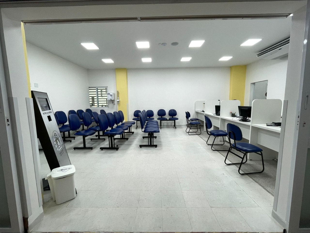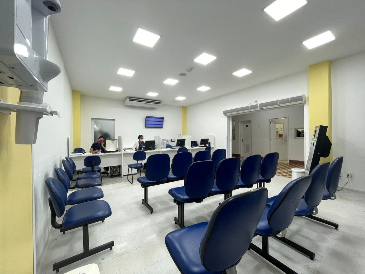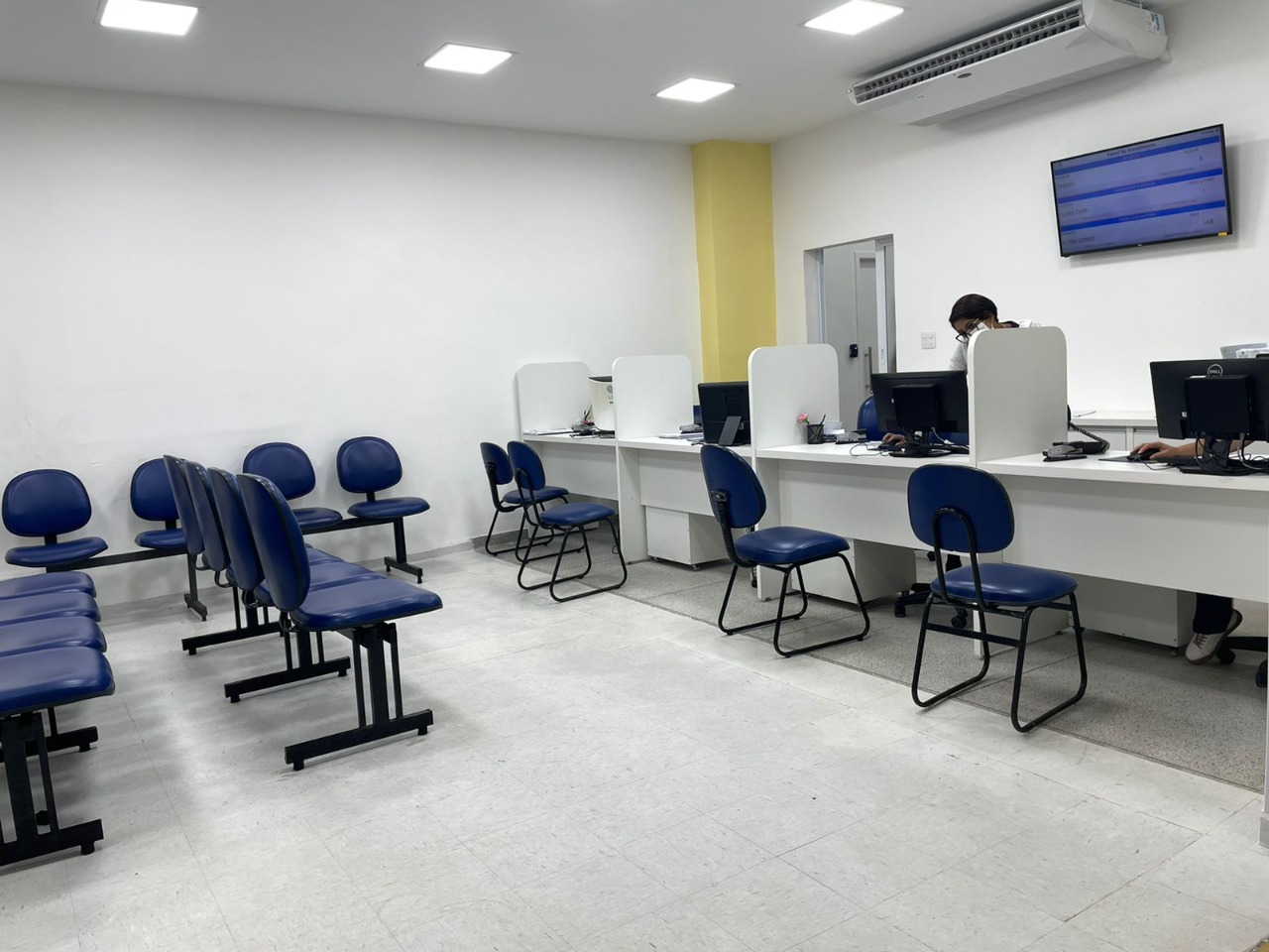A recepção e sala de espera foram completamente reestruturadas, ganhando novos mobiliários, pintura e ambiente climatizado.