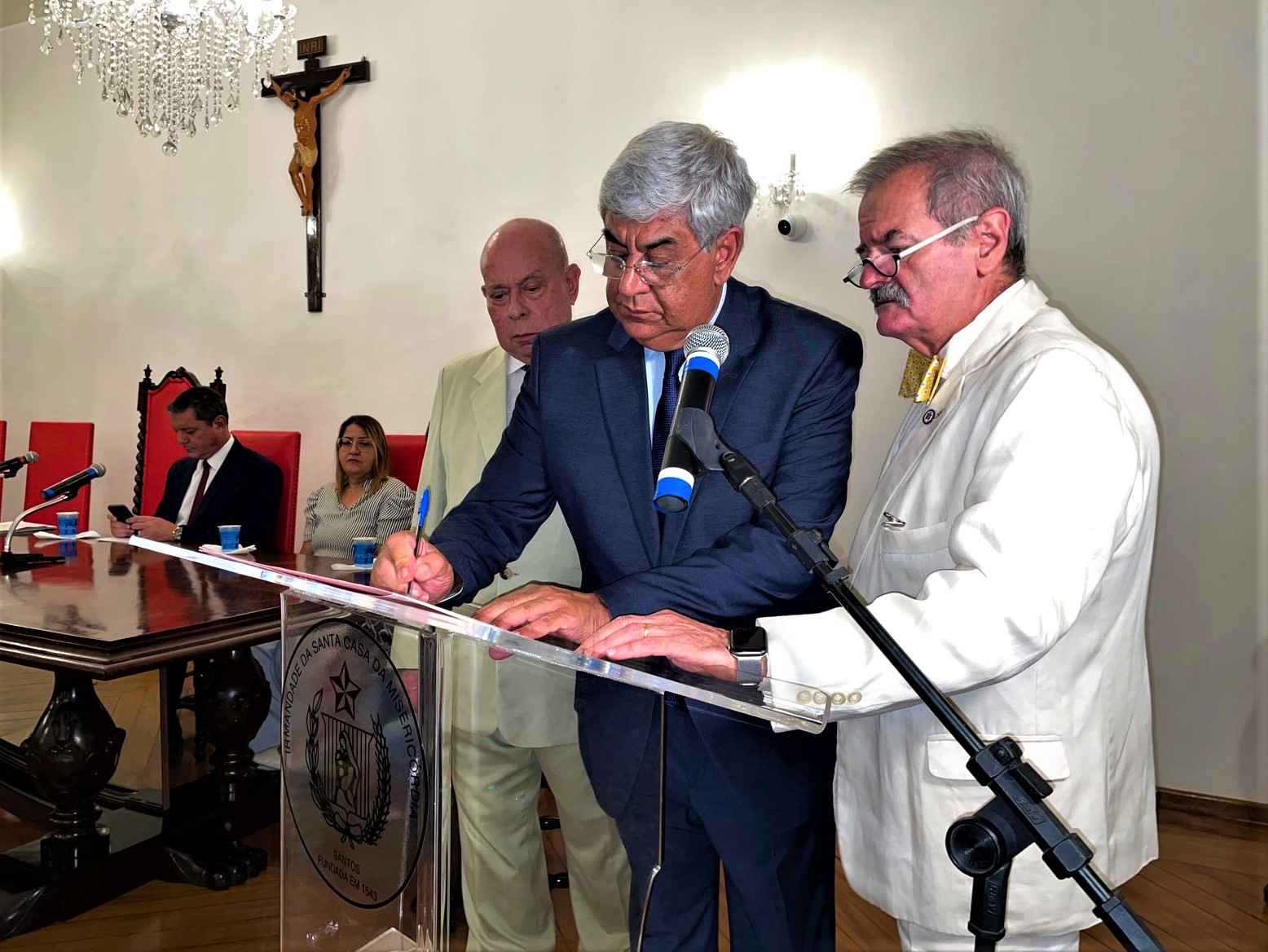 Na noite de sexta, dia 24/1, o provedor e vice provedor reeleitos, Ariovaldo Feliciano e Carlos Teixeira Filho, tomaram posse para a gestão do triênio 2025/2028 da Santa Casa de Santos, em solenidade realizada no consistório da instituição.