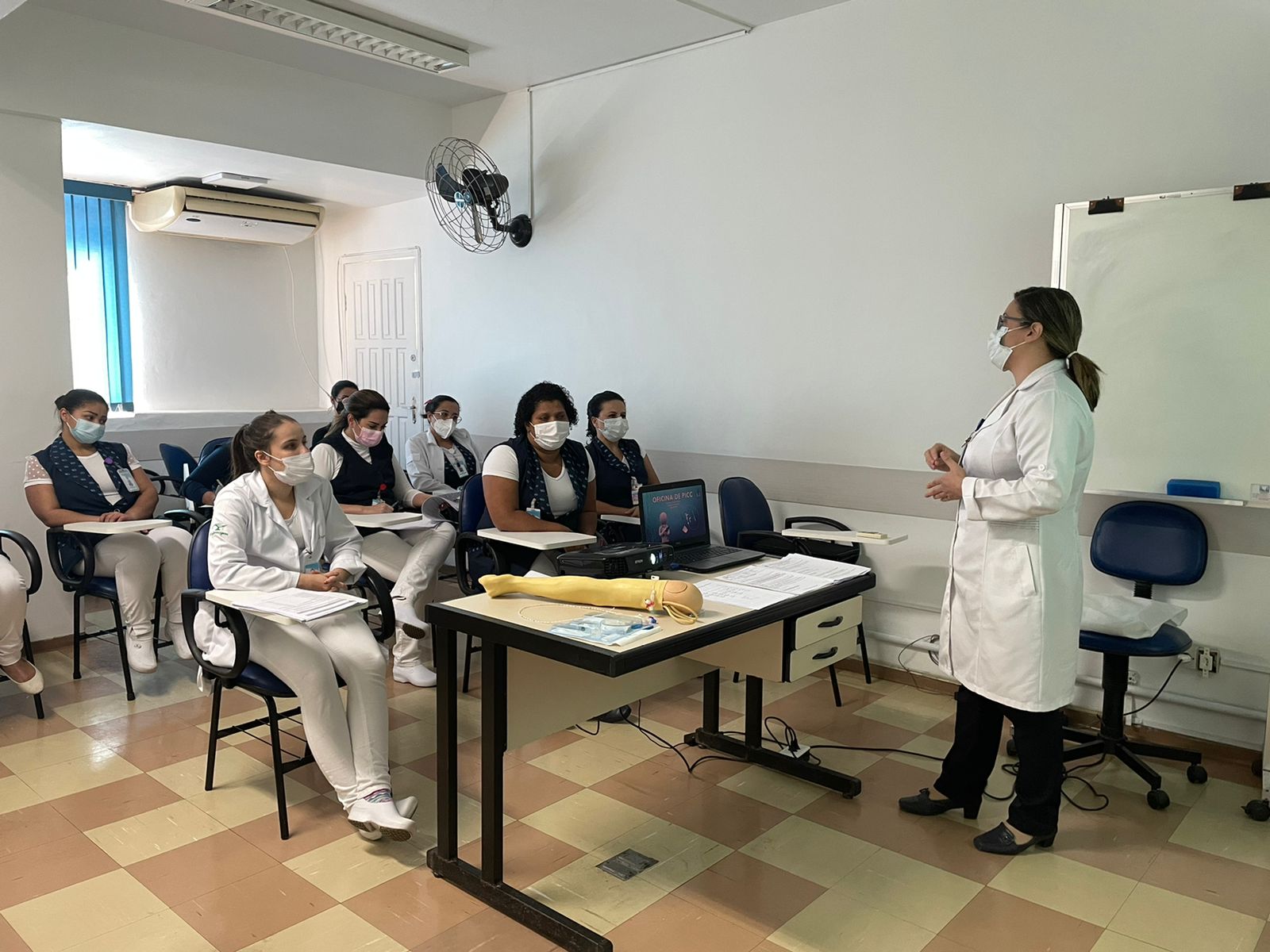 Profissionais participam de curso de capacitação para passagem de Cateter Central de Inserção Periférica - PICC