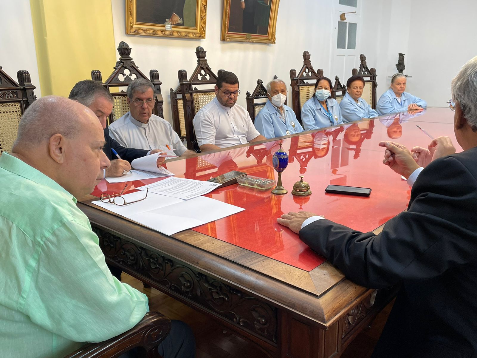 Também participaram da reunião: o vice provedor, Carlos Teixeira Filho, o Frei Denilson, do Santuário de Santo Antônio do Valongo, o capelão Padre Oscar Vasconcelos de Souza Filho, a coordenadora diocesana Dirce José de Lima Souza, o gerente de Obras e assessor da provedoria, Bruno Dantas, e o grupo de voluntários da Pastoral da Saúde.