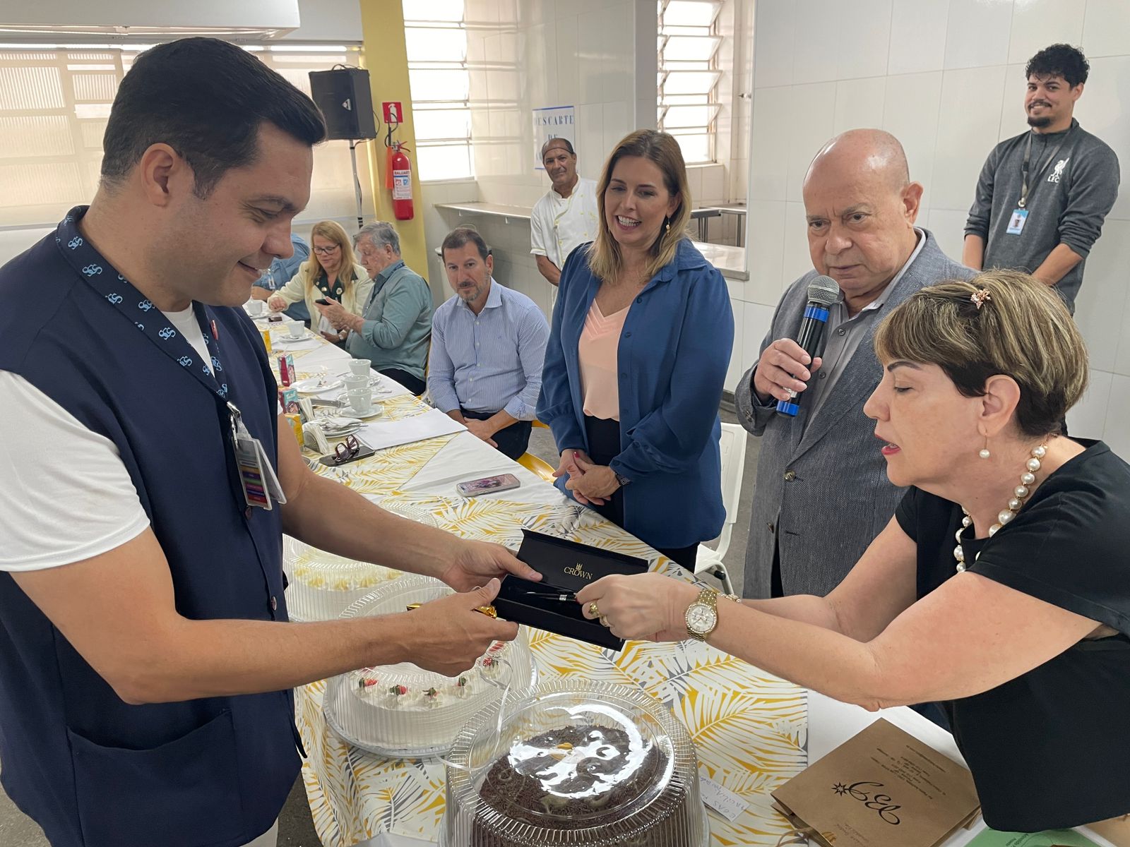 A 3ª edição de 2023 do evento institucional “Café com o Provedor” aconteceu no dia 6/10 e lotou o refeitório dos funcionários, com a presença dos aniversariantes dos meses de junho, julho, agosto e setembro. Os profissionais de enfermagem mais elogiados pelos pacientes, de acordo com os formulários de satisfação do cliente apurados no mesmo período, também foram convidados para receber as devidas homenagens.