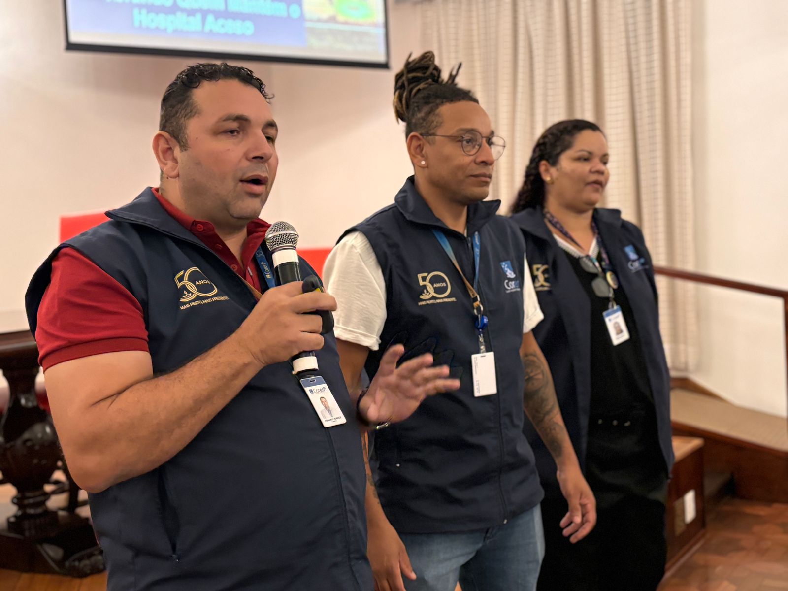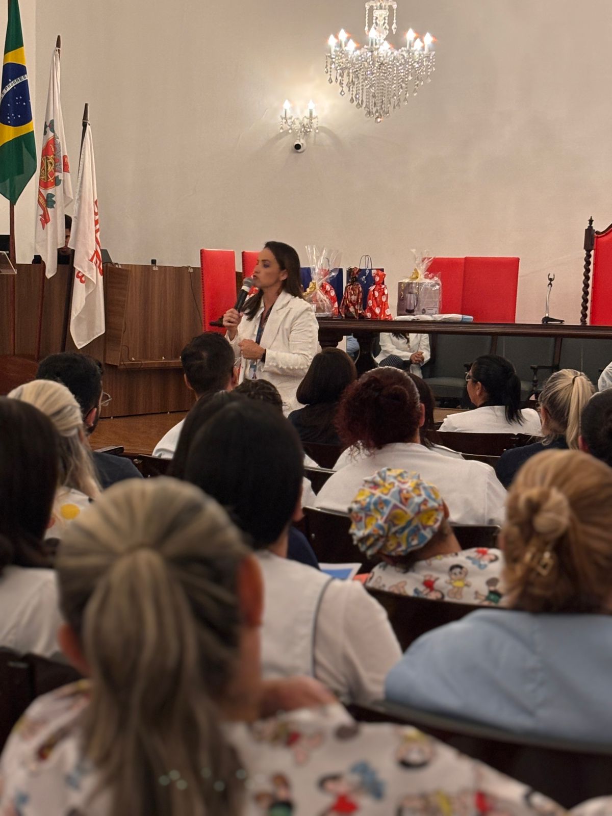 Durante o encontro, o Coren-SP apresentou uma palestra sobre violência contra a equipe de enfermagem, tema essencial para a categoria. A Santa Casa de Santos já atua preventivamente nessa frente. Há mais de seis meses, a Instituição implantou um protocolo específico para acolher, orientar e proteger seus profissionais em situações de violência, reforçando o compromisso com um ambiente de trabalho seguro.