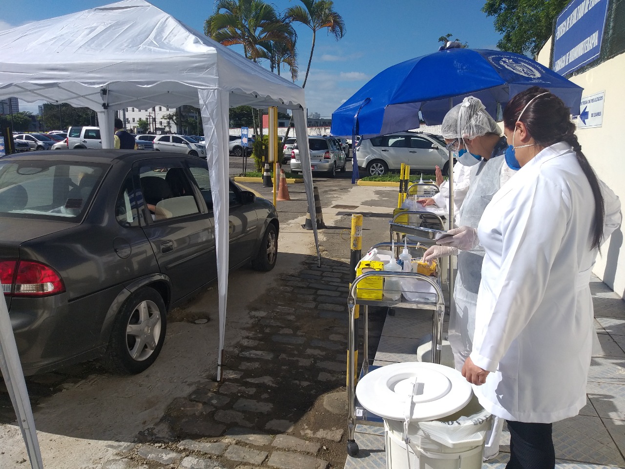 A fila de veículos para o drive thru da Santa Casa de Santos já era grande às 8h da manhã desta sexta, dia 6/11. Professores e profissionais da educação compareceram ao hospital para aproveitar a oportunidade de realizar os testes rápidos para Covid-19 gratuitamente. Os resultados, com laudo, serão disponibilizados pela internet. Ao todo, foram realizados 600 testes rápidos para Covid-19.