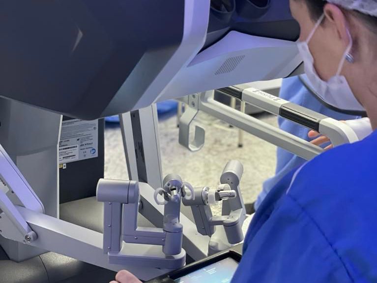 O Centro Robótico da Santa Casa de Santos realizou mais um procedimento inédito na região, mas agora na especialidade de Cirurgia de Cabeça e Pescoço. A médica cirurgiã, Drª. Sílvia Miguéis Picado Petrarolha, realizou a ressecção de uma lesão na base da língua por via robótica, no dia 19/2/22. Esta foi a primeira vez que um procedimento da especialidade acontece na Baixada Santista utilizando a tecnologia cirúrgica mais avançada do mundo.