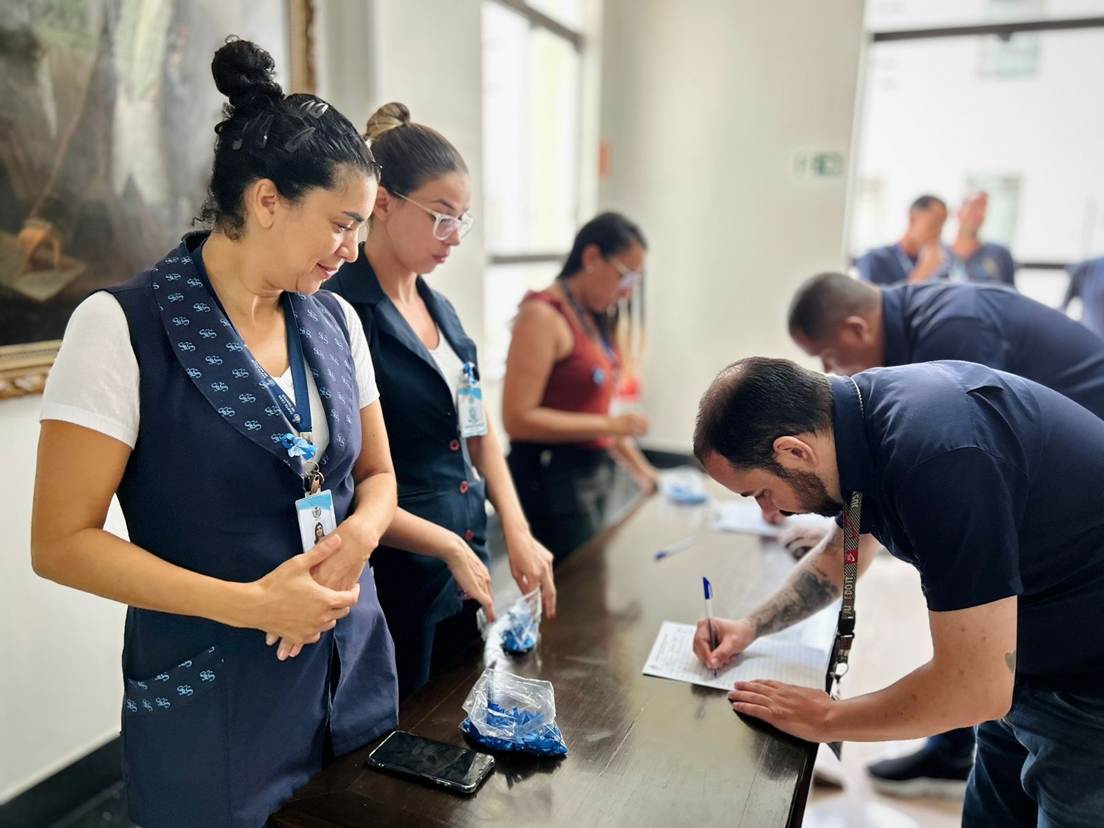 Para conscientizar os colaboradores da Santa Casa de Santos sobre a importância da prevenção do câncer de próstata, o Setor de Medicina do Trabalho em parceria com o Centro Integrado de Humanização promoveu uma ação no dia 17/11, no consistório do hospital, com palestra, sorteio de brindes e a visita dos cães terapeutas da Guarda Municipal de Santos.
