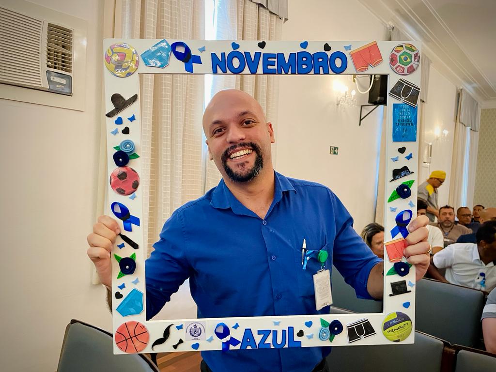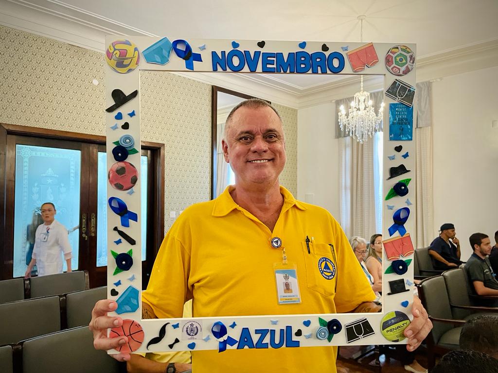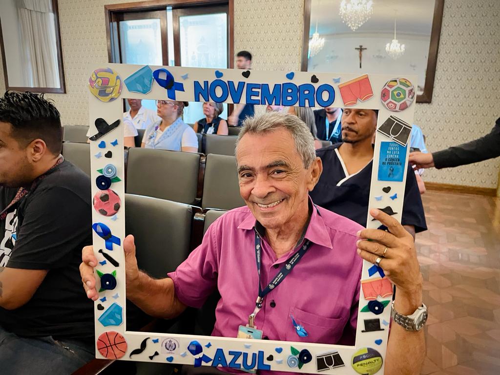 A equipe do Centro Cirúrgico também colaborou com a campanha, produzindo um quadro instagramável para os funcionários engajados tirarem fotos e darem sua contribuição no alerta do Novembro Azul.