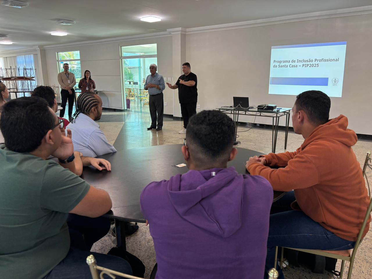 Na última terça-feira, 15 de julho de 2025, foi realizada a abertura da 5ª turma do PIP (Programa de Inclusão Profissional) para PcD, na Santa Casa de Santos. O curso deste ano é composto por um plano de ensino focado em apresentar e explorar as principais rotinas do ambiente hospitalar e desenvolver habilidades comportamentais e técnicas exigidas em ambientes organizacionais.