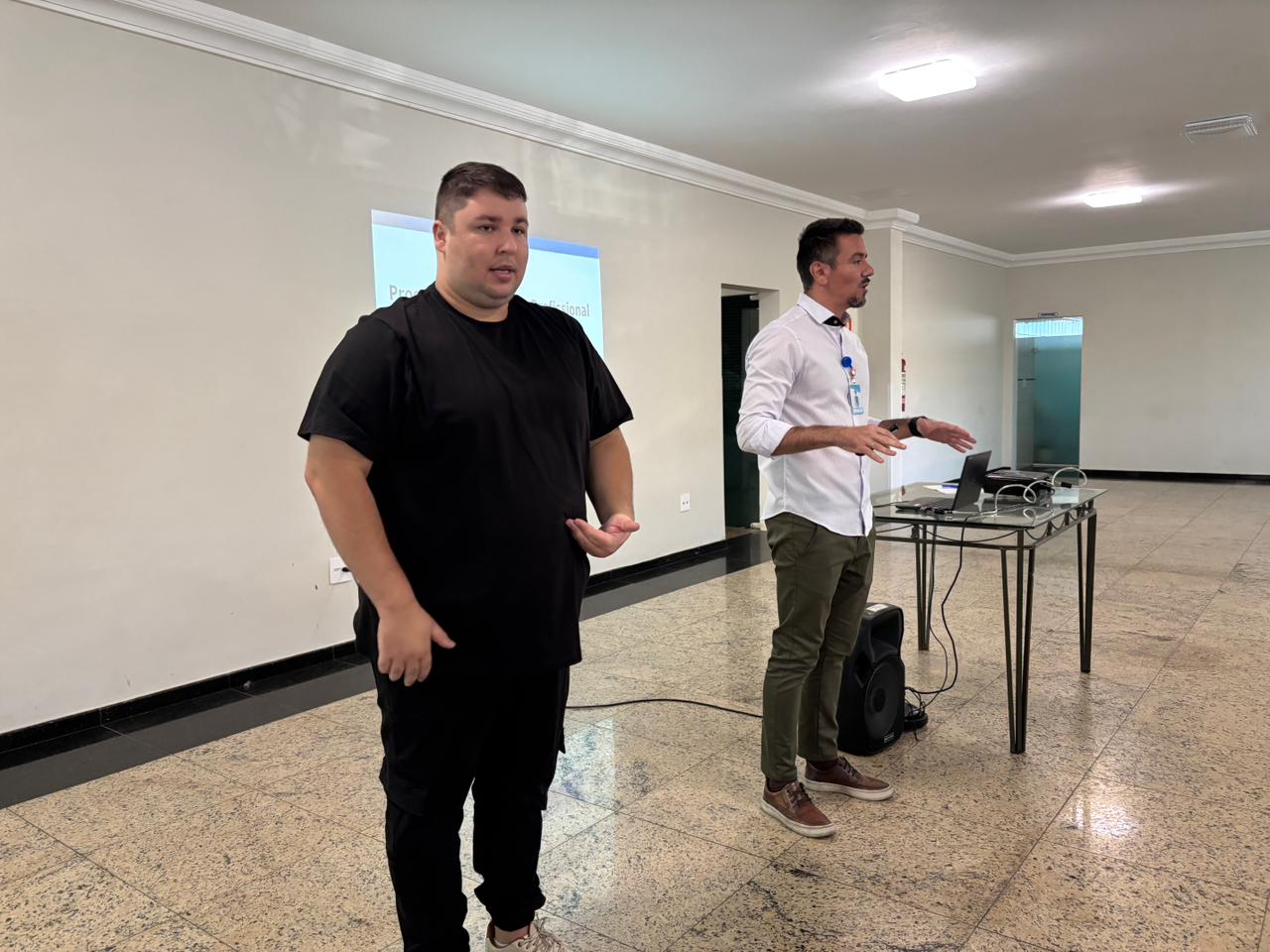 O Analista de Treinamento e Desenvolvimento do Departamento de Recursos Humanos, Luiz Onofre Silva Lima, apresentou aos alunos como funciona o programa, regras, horários e o cronograma do curso.