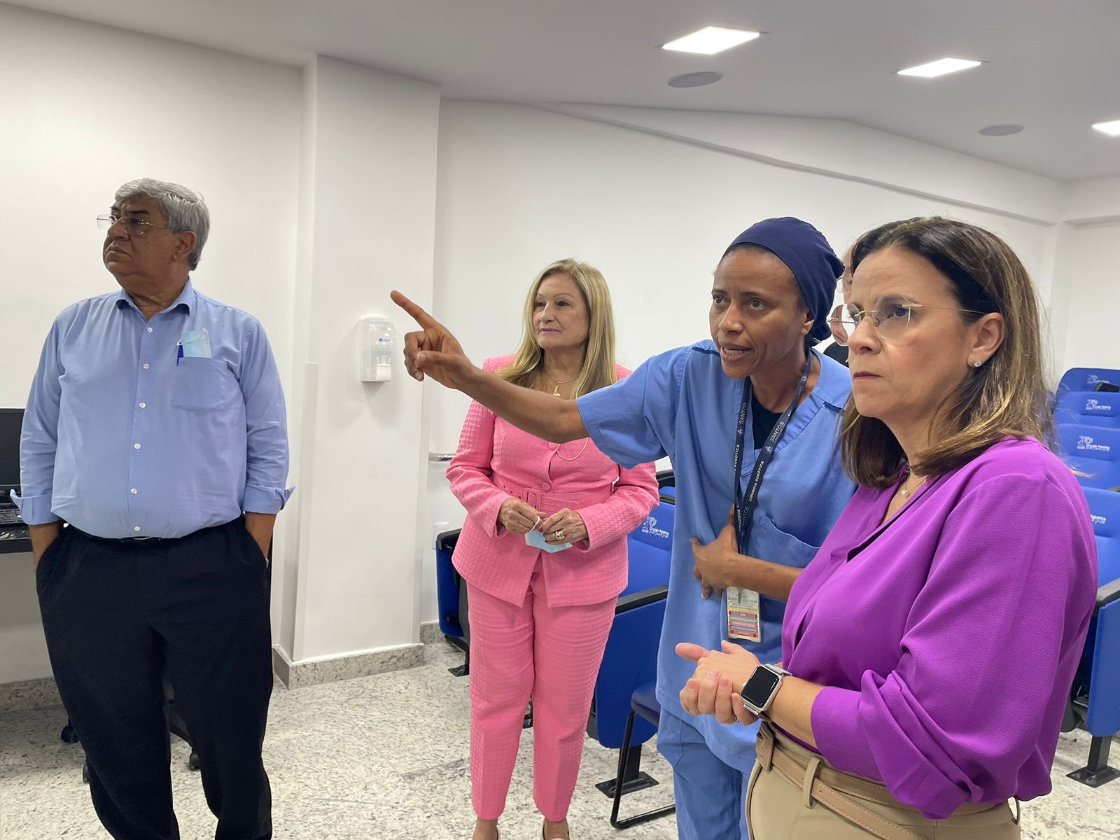 A comitiva visitou as unidades de internação da Pediatria SUS (3ºD), Oncologia Pediátrica (3ºE), Centro Robótico e por fim o Complexo de Radioterapia.