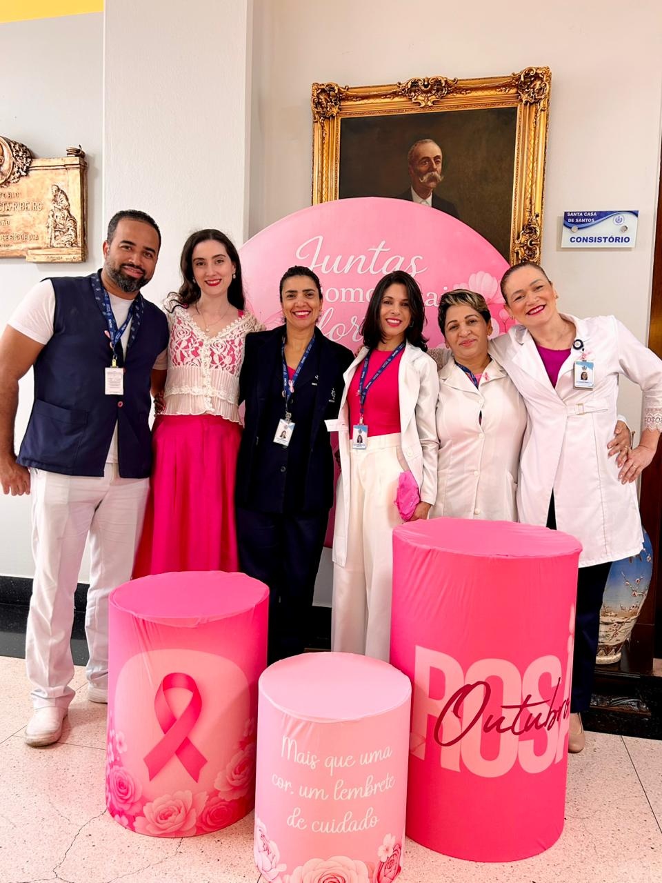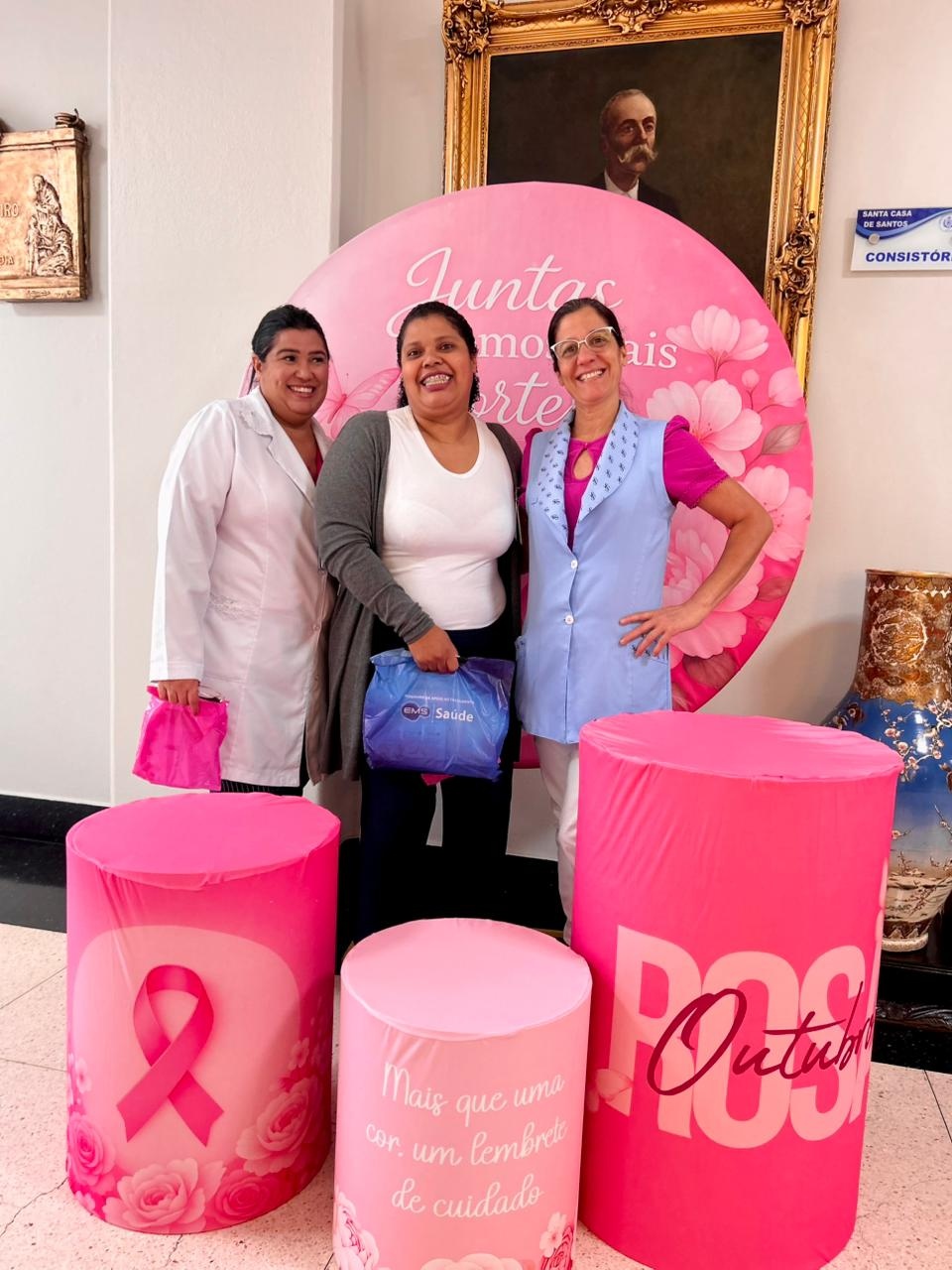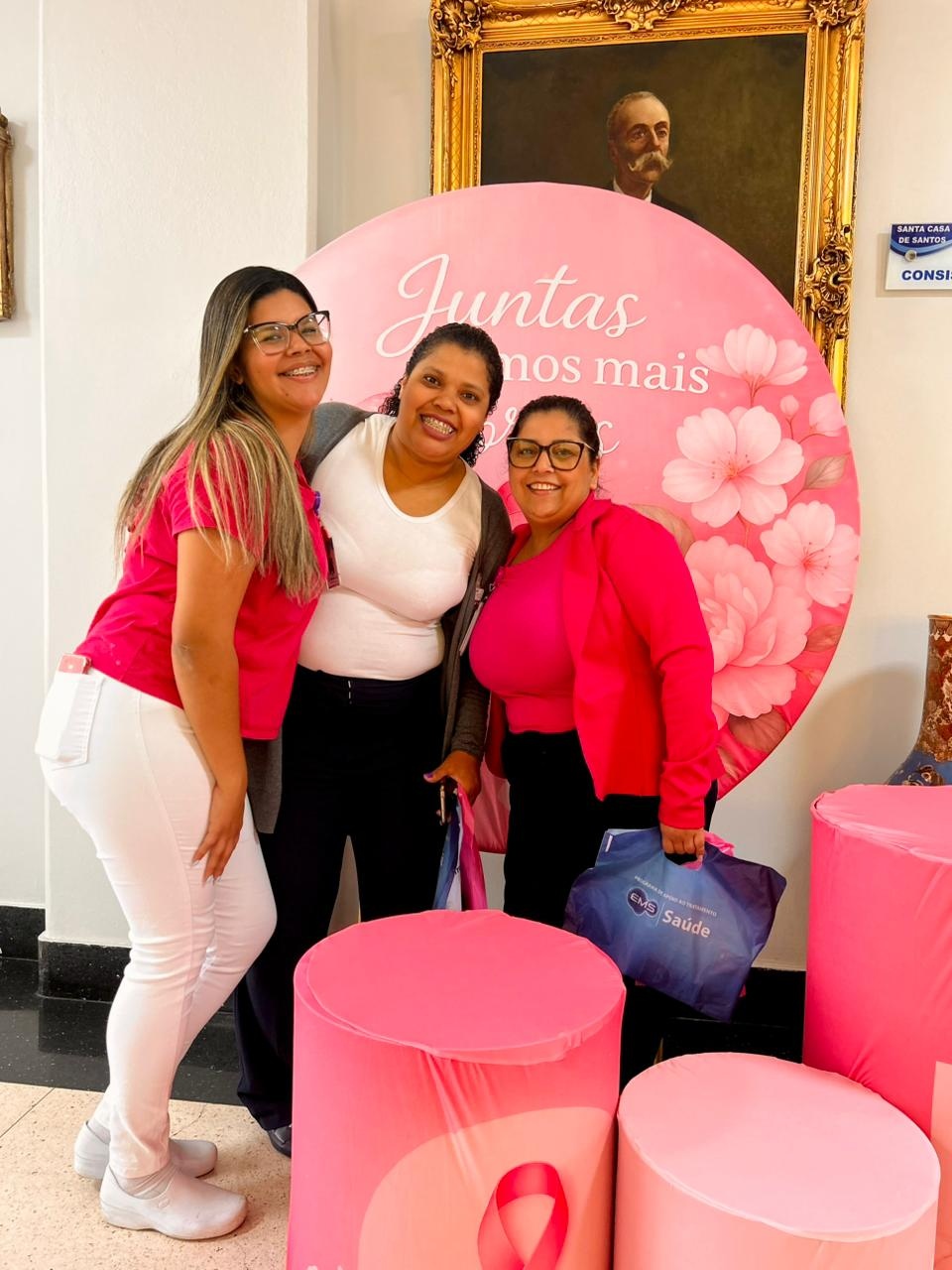 Durante todo o evento, os colaboradores da Santa Casa vestiram camisetas rosas, demonstrando apoio à campanha e reforçando a mensagem de conscientização. Muitos também compartilharam o momento em suas redes sociais, marcando o perfil oficial @santacasadesantos, ampliando o alcance da iniciativa.