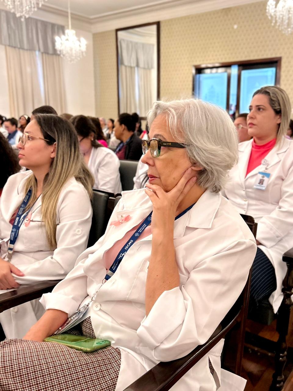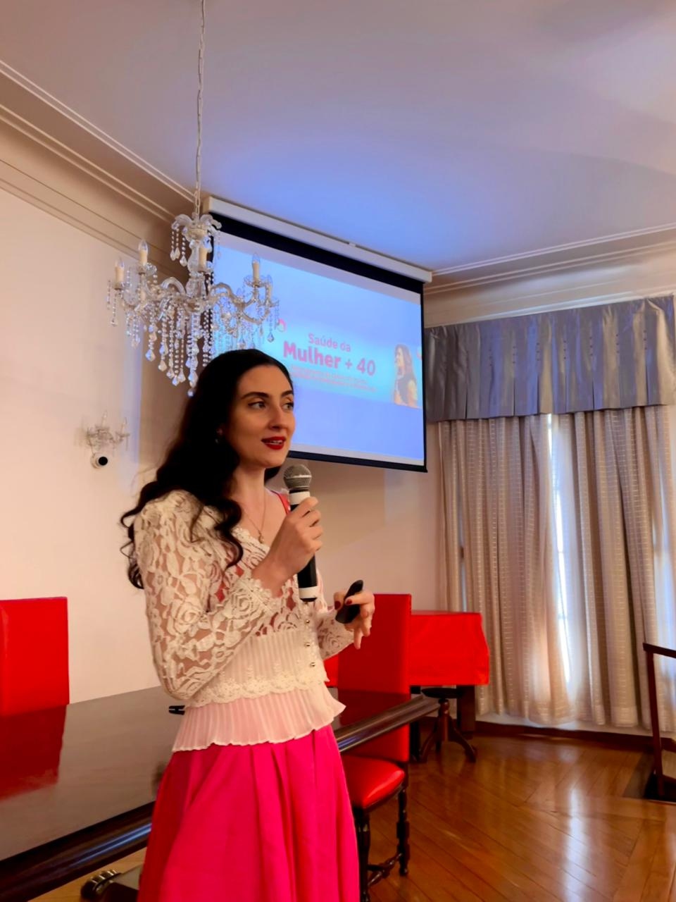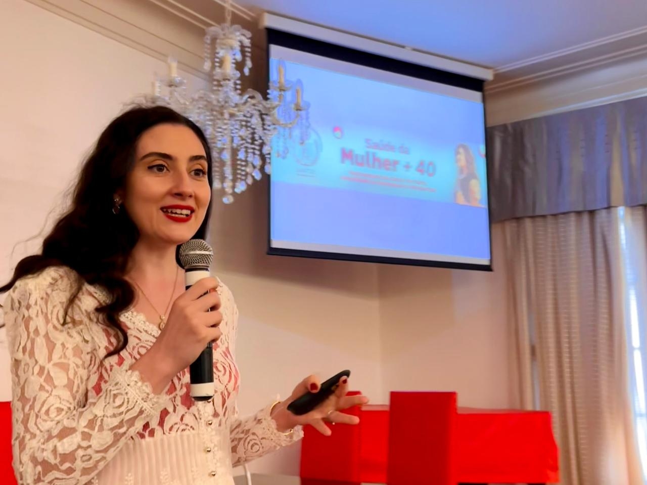Durante sua fala, também abordou as fases de oscilação hormonal na menopausa, explicando os impactos desse período na saúde da mulher, e pontuou as principais contraindicações à terapia hormonal, reforçando a necessidade de acompanhamento médico individualizado para cada caso.