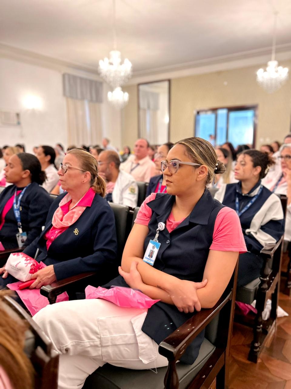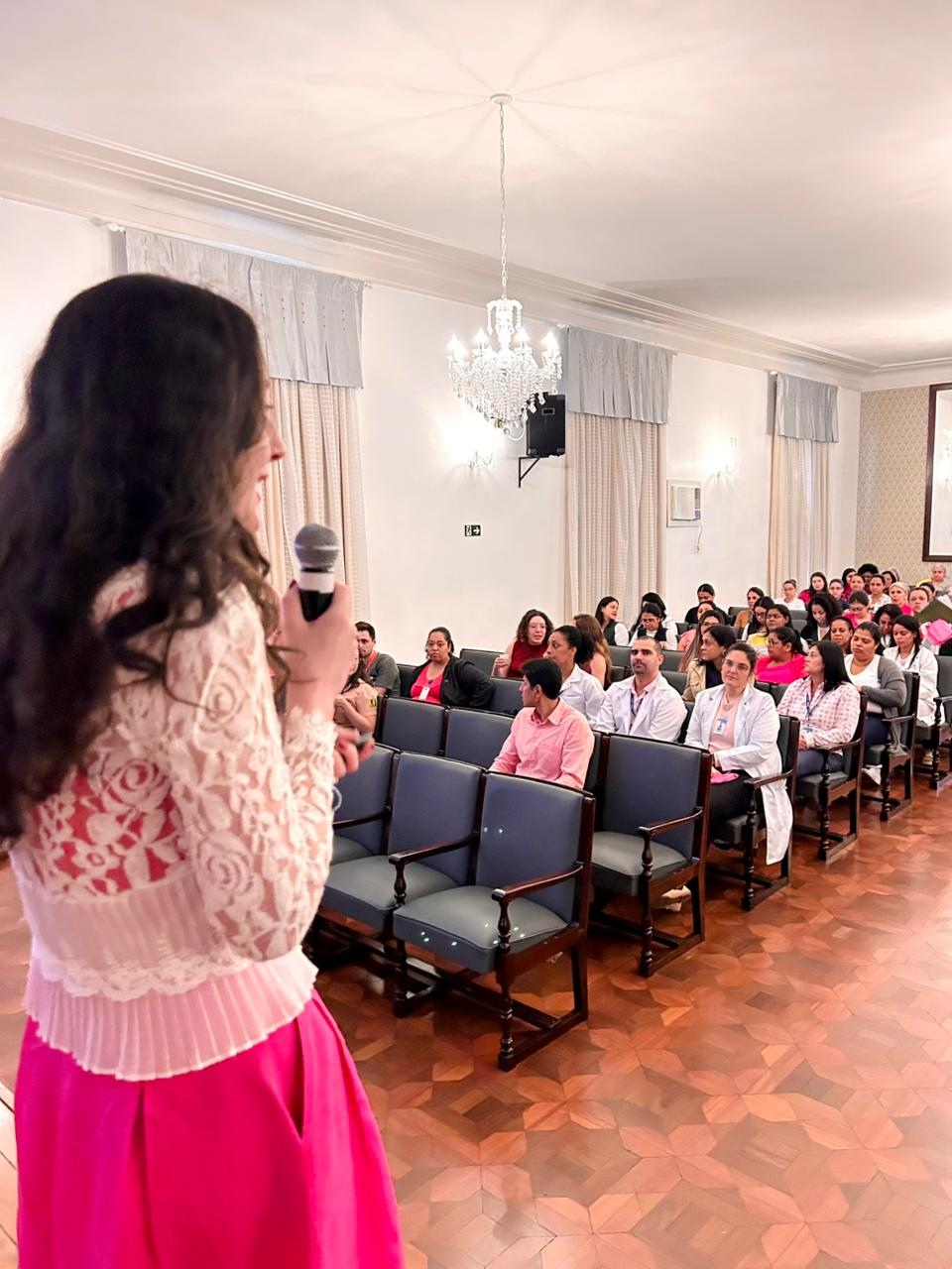 A Santa Casa de Santos promoveu, no dia 21 de outubro, no Consistório, o Dia ‘D’ Outubro Rosa, uma manhã dedicada à conscientização sobre a prevenção do câncer de mama e temas relacionados à saúde da mulher. O evento reuniu colaboradores e equipe multiprofissional em uma programação especial com palestras, música e momentos de integração.
