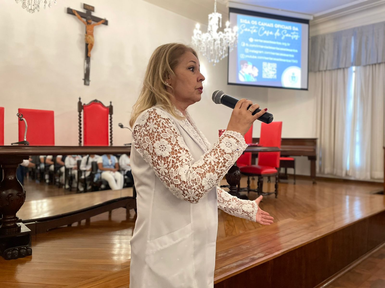 A gerente de Enfermagem, Enfª. Alessandra Conceição Roberto Manetta, também parabenizou toda a equipe pela dedicação e envolvimento na profissão, e anunciou o lançamento do vídeo feito em homenagem a todos os profissionais de enfermagem, produzido pela equipe de Comunicação da Santa Casa de Santos.