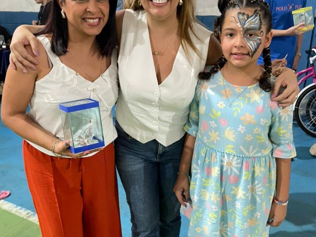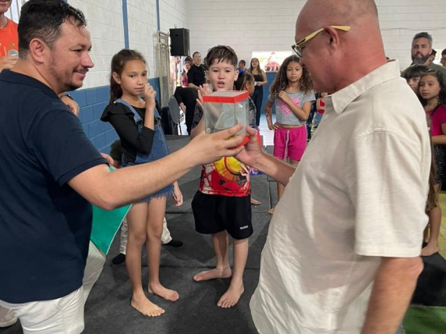 Foram sorteadas 2 bicicletas, cerca de 20 aquários com peixe beta e outros diversos brindes.