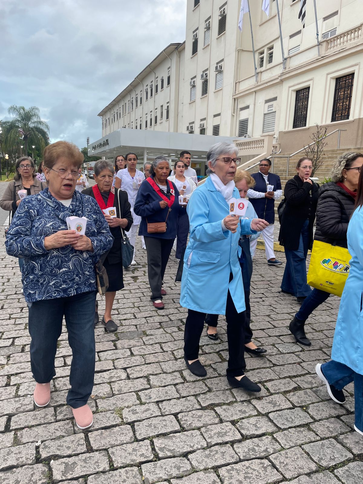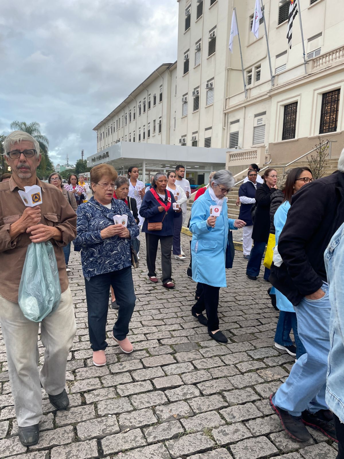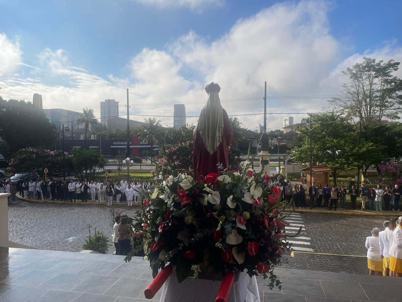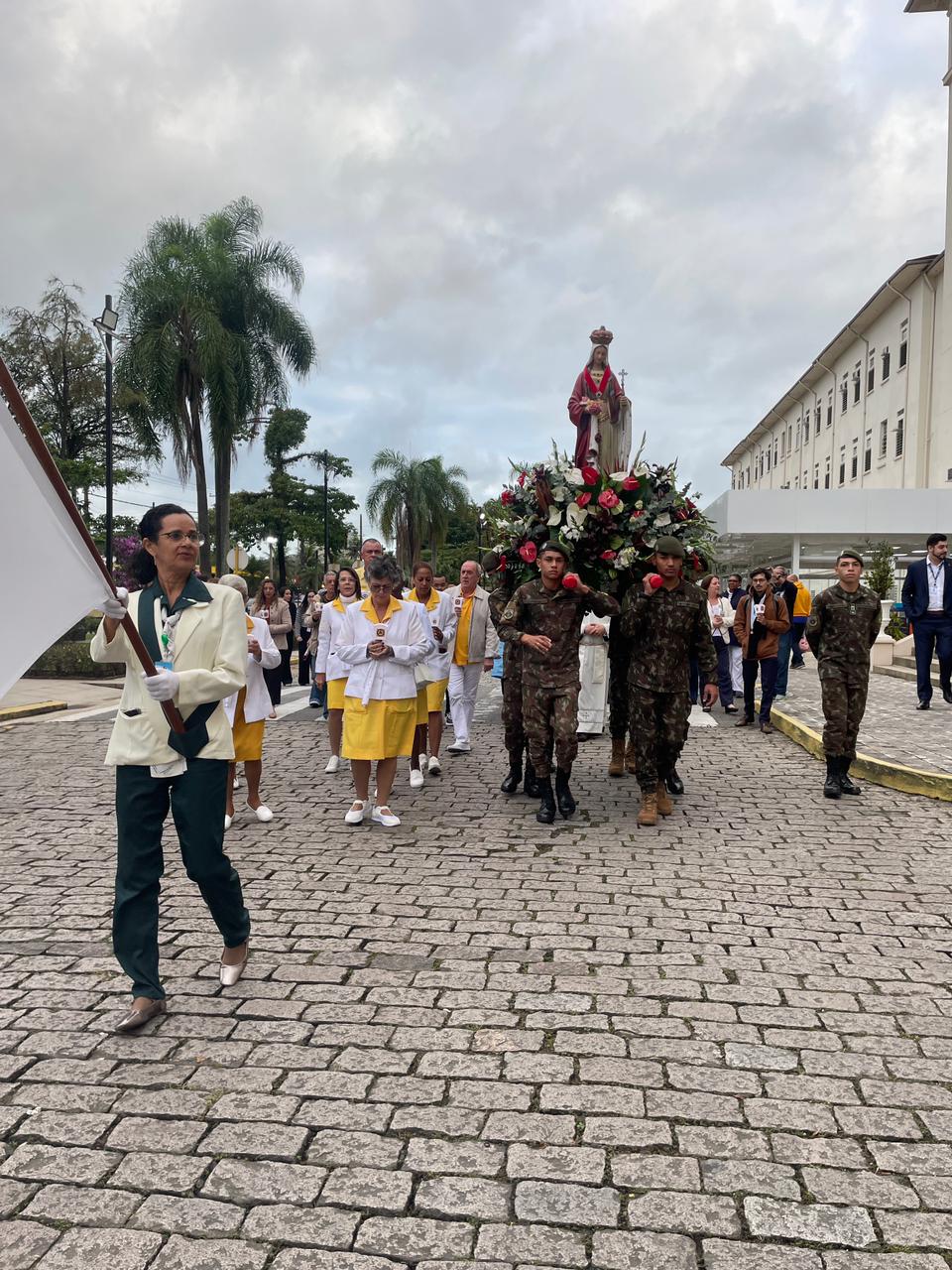 No período da tarde, os voluntários amarelinhos e verdinhos fizeram a distribuição de rosas aos enfermos e, às 16h30, aconteceu a procissão luminosa, saindo da frente da Santa Casa de Santos rumo à Capela Santa Isabel.