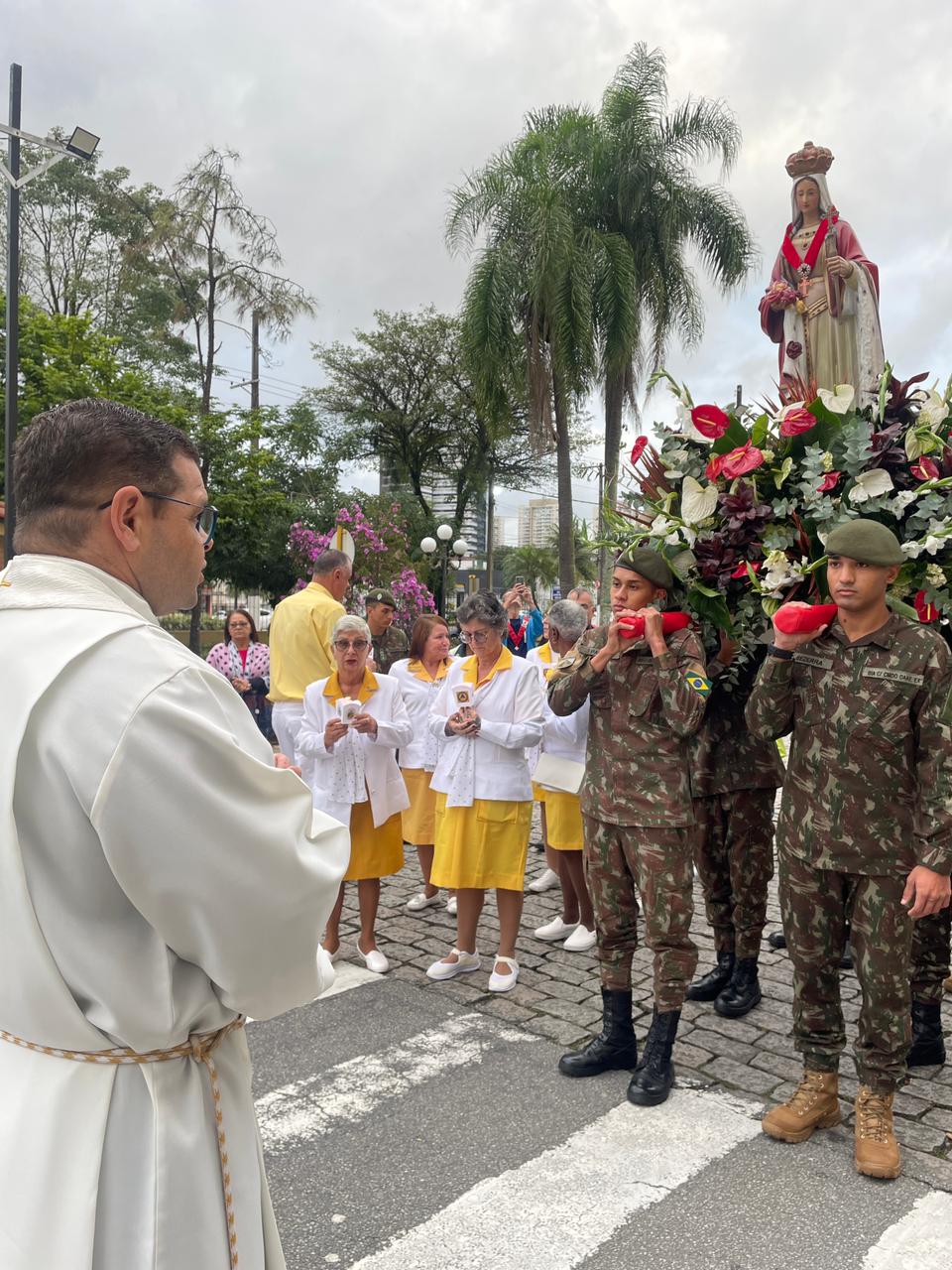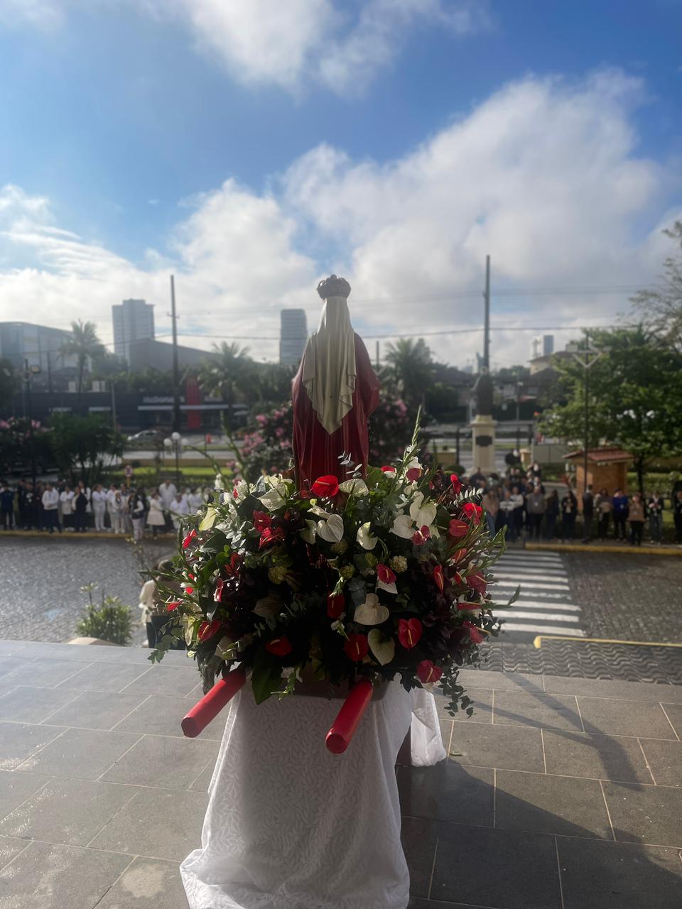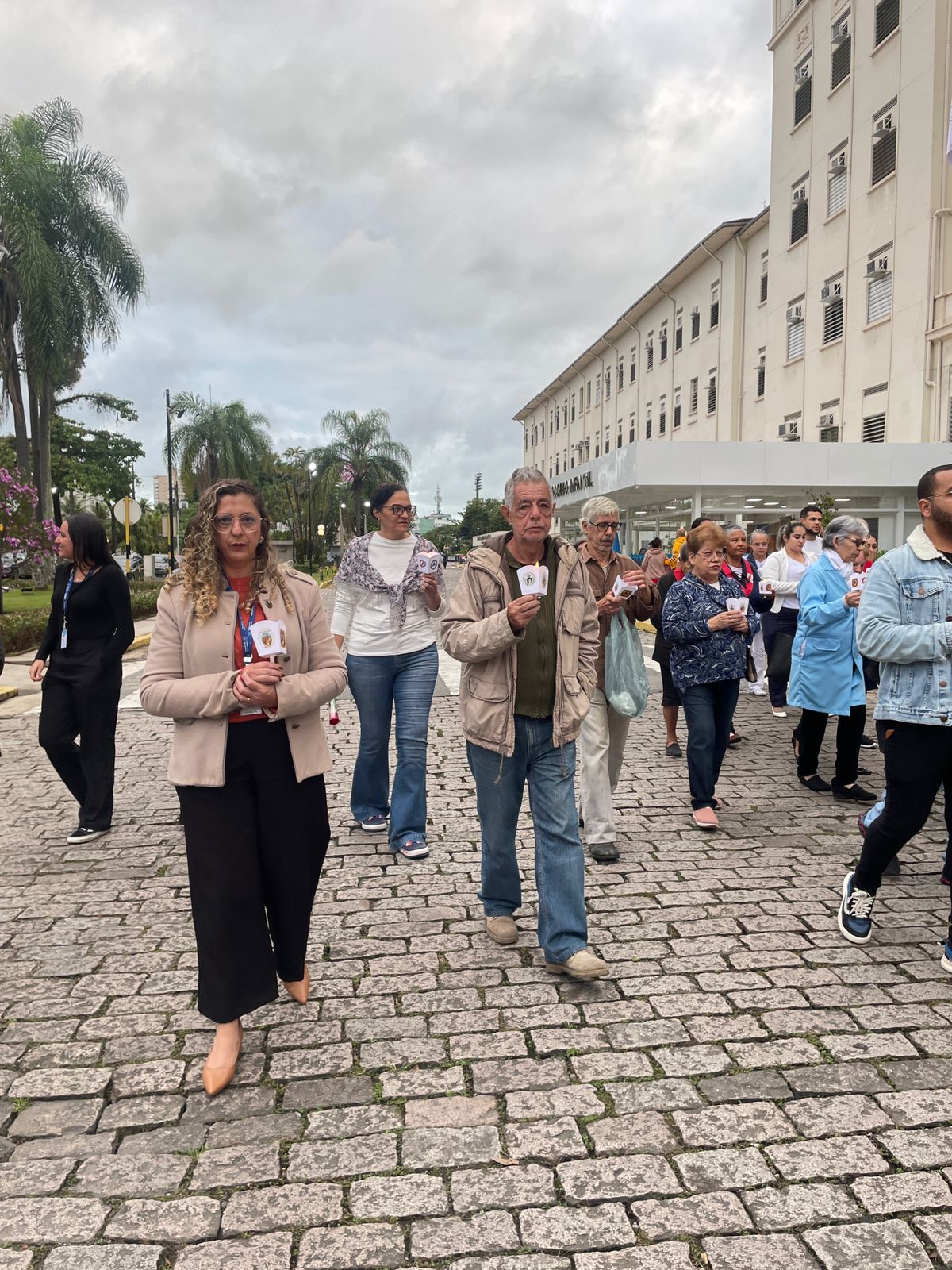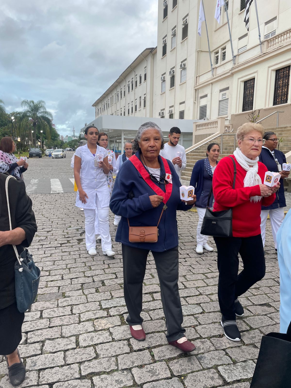 No período da tarde, os voluntários amarelinhos e verdinhos fizeram a distribuição de rosas aos enfermos e, às 16h30, aconteceu a procissão luminosa, saindo da frente da Santa Casa de Santos rumo à Capela Santa Isabel.