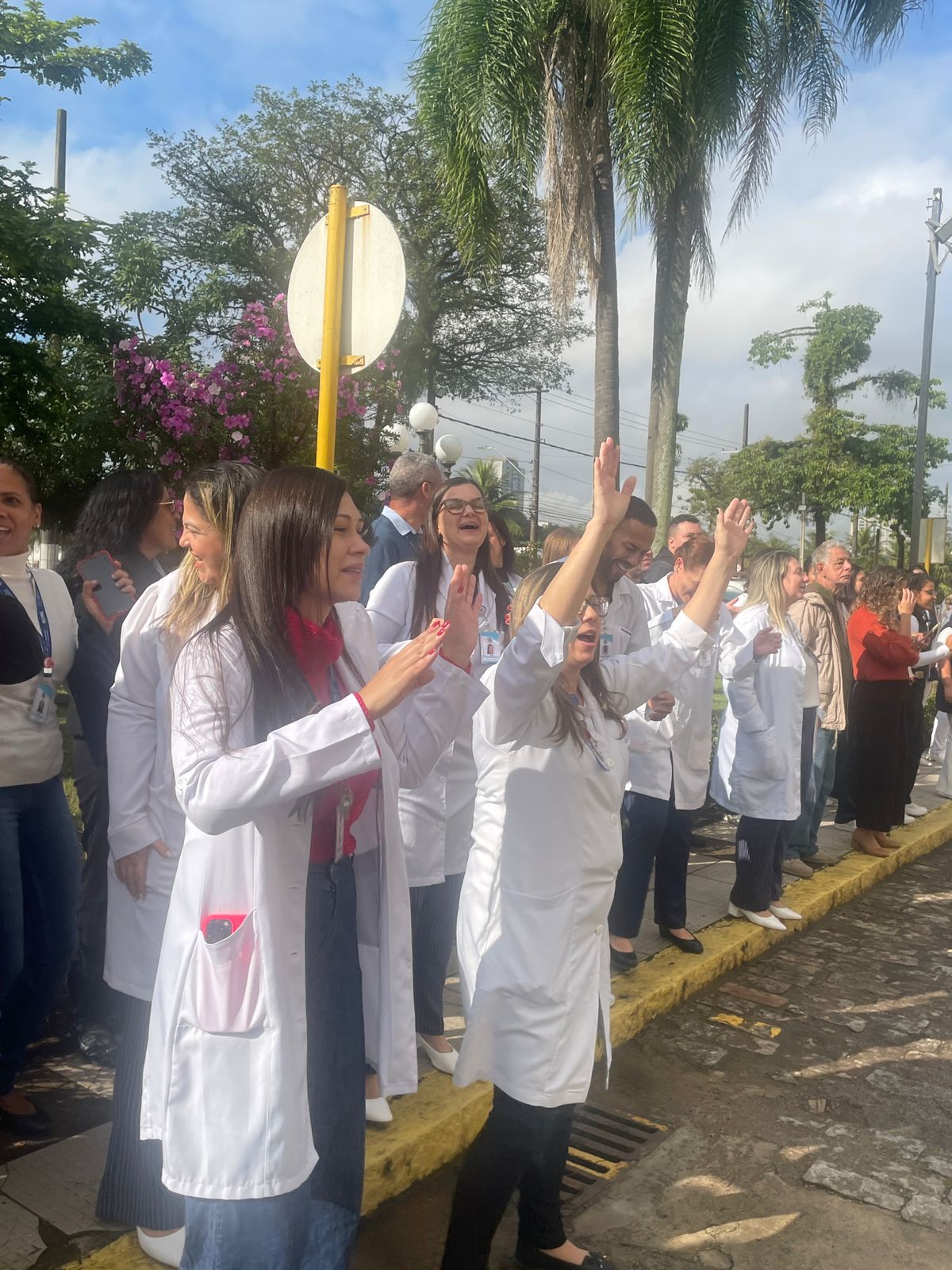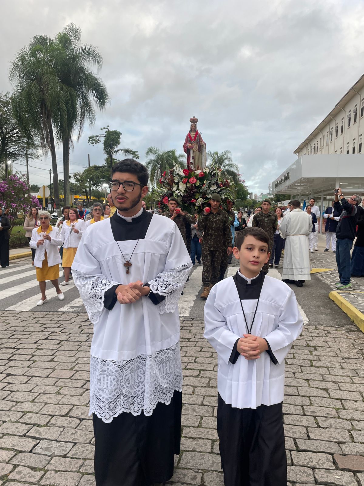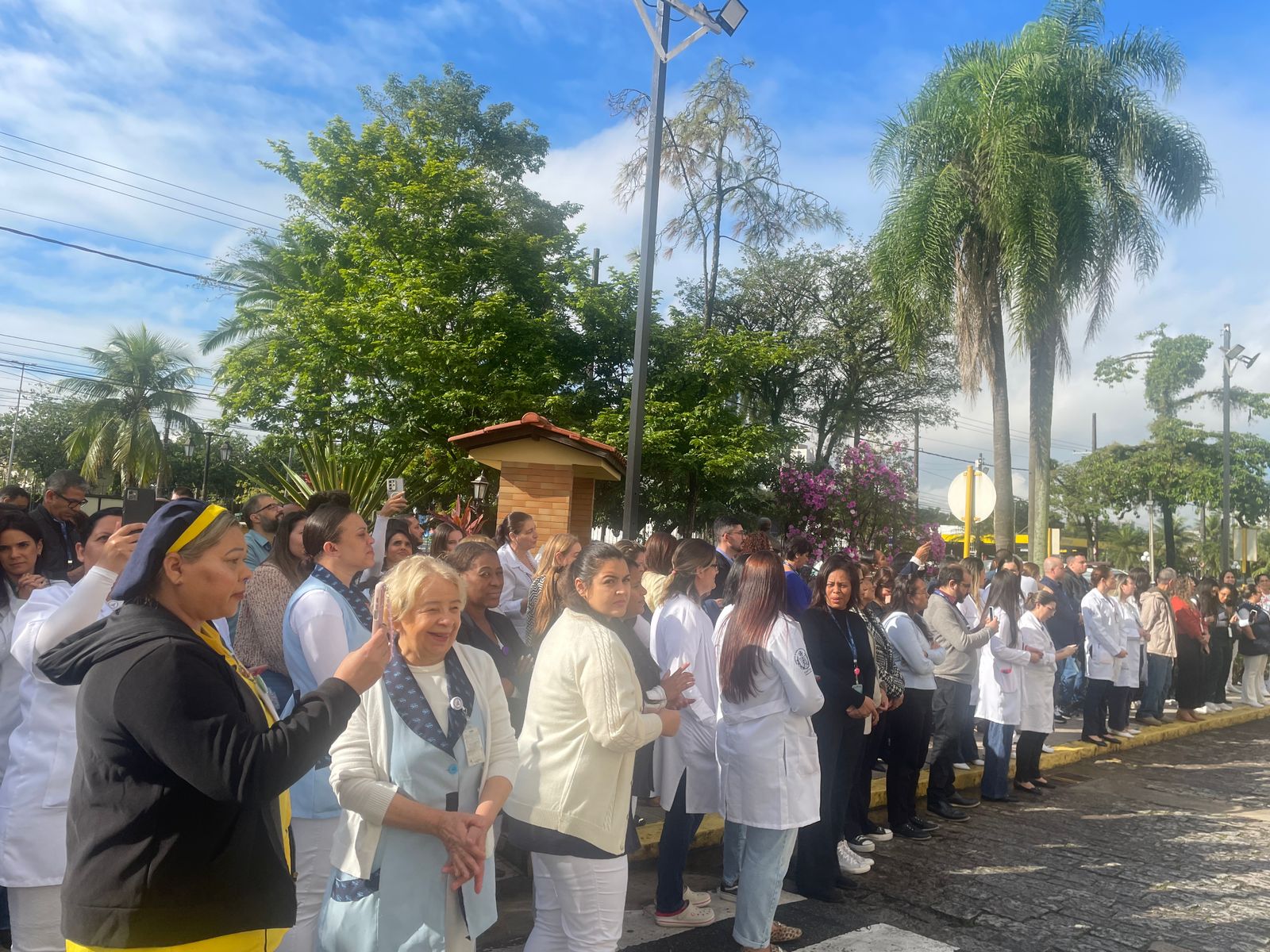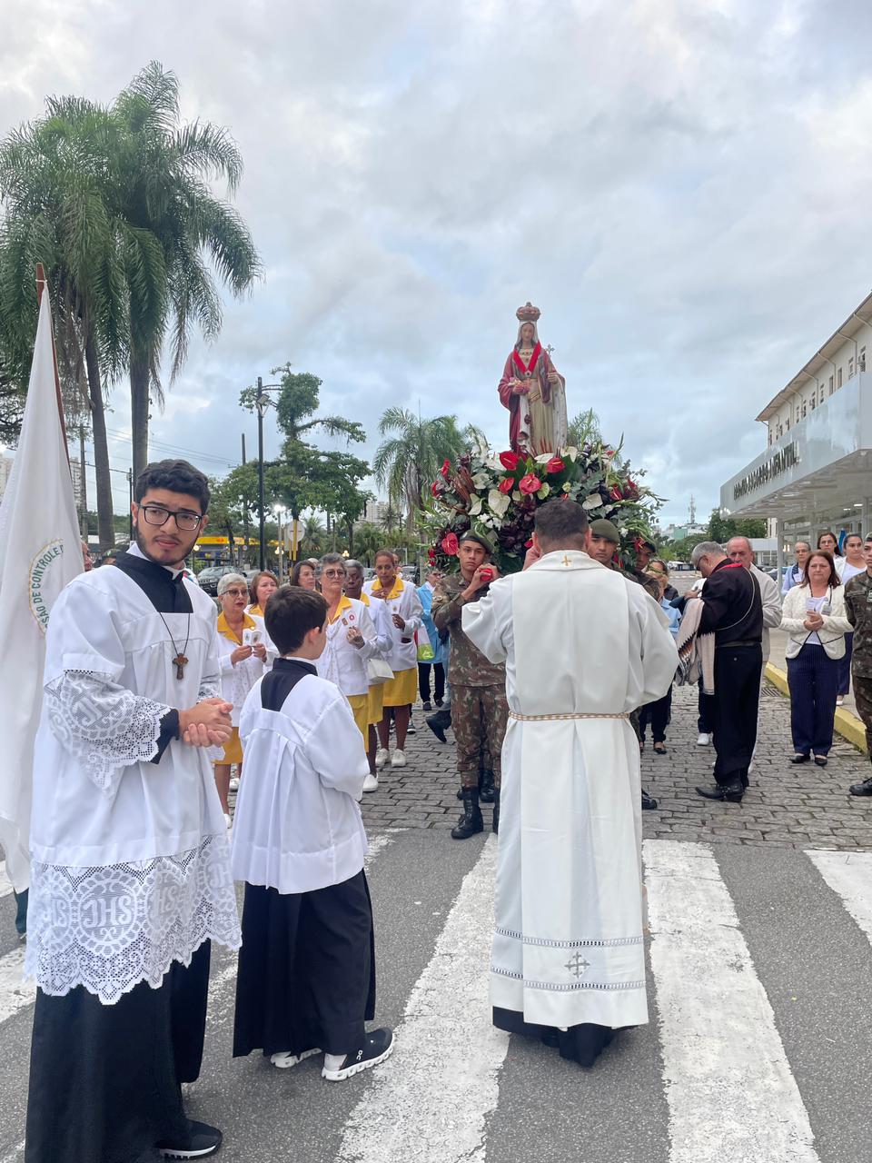 No período da tarde, os voluntários amarelinhos e verdinhos fizeram a distribuição de rosas aos enfermos e, às 16h30, aconteceu a procissão luminosa, saindo da frente da Santa Casa de Santos rumo à Capela Santa Isabel.