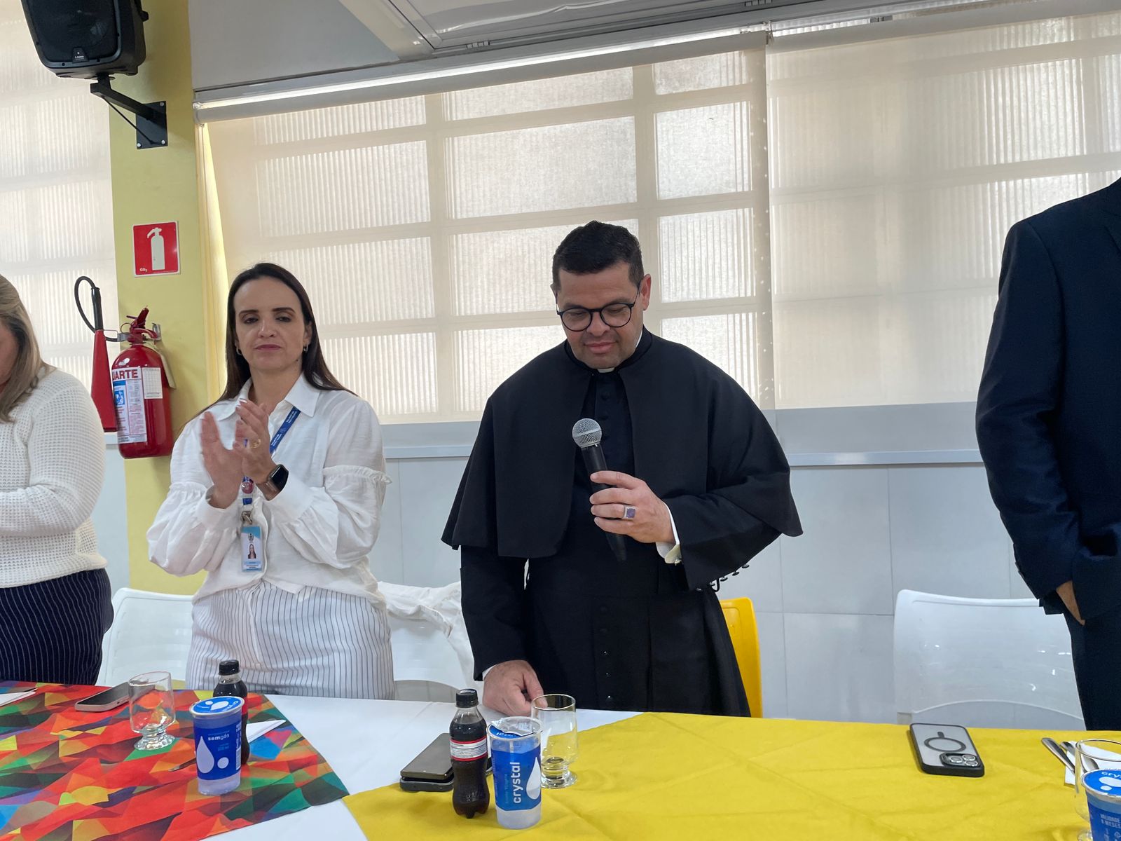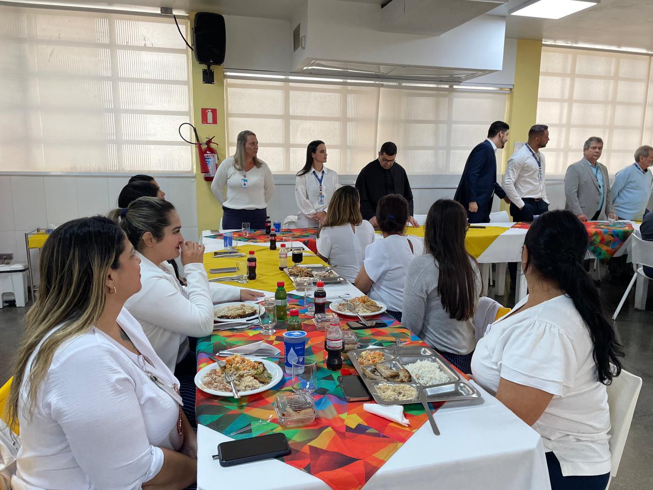 O vice provedor Carlos Teixeira Filho fez um discurso destacando o envolvimento dos colaboradores no crescimento da instituição. O Padre Denilson abençoou a hora da refeição.