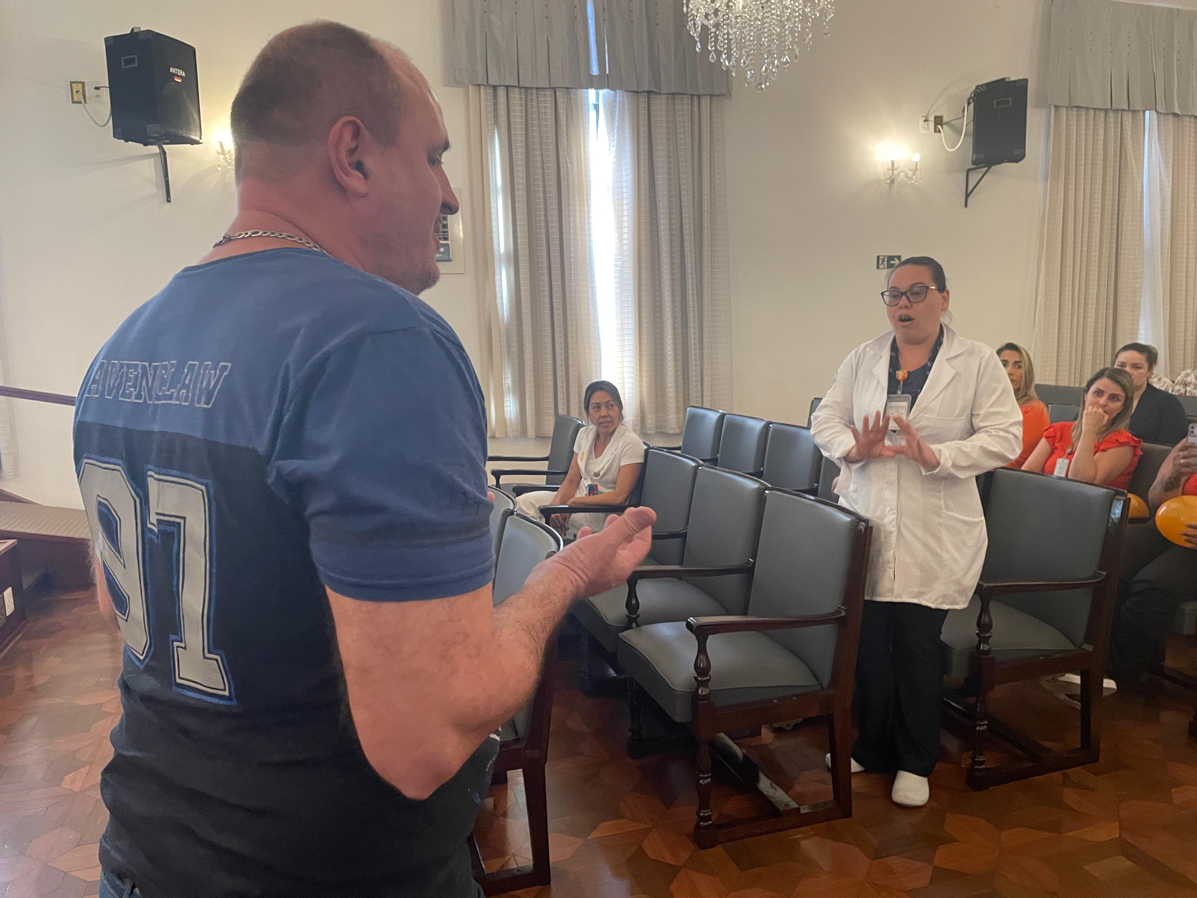 E por último, a Enfermeira Amanda Antunes Sant’Anna do Núcleo de Segurança do Paciente, mostrou para o público, os vídeos gravados com os pacientes atendidos no hospital em que eles falavam sobre o atendimento humanizado e a importância do ouvir.