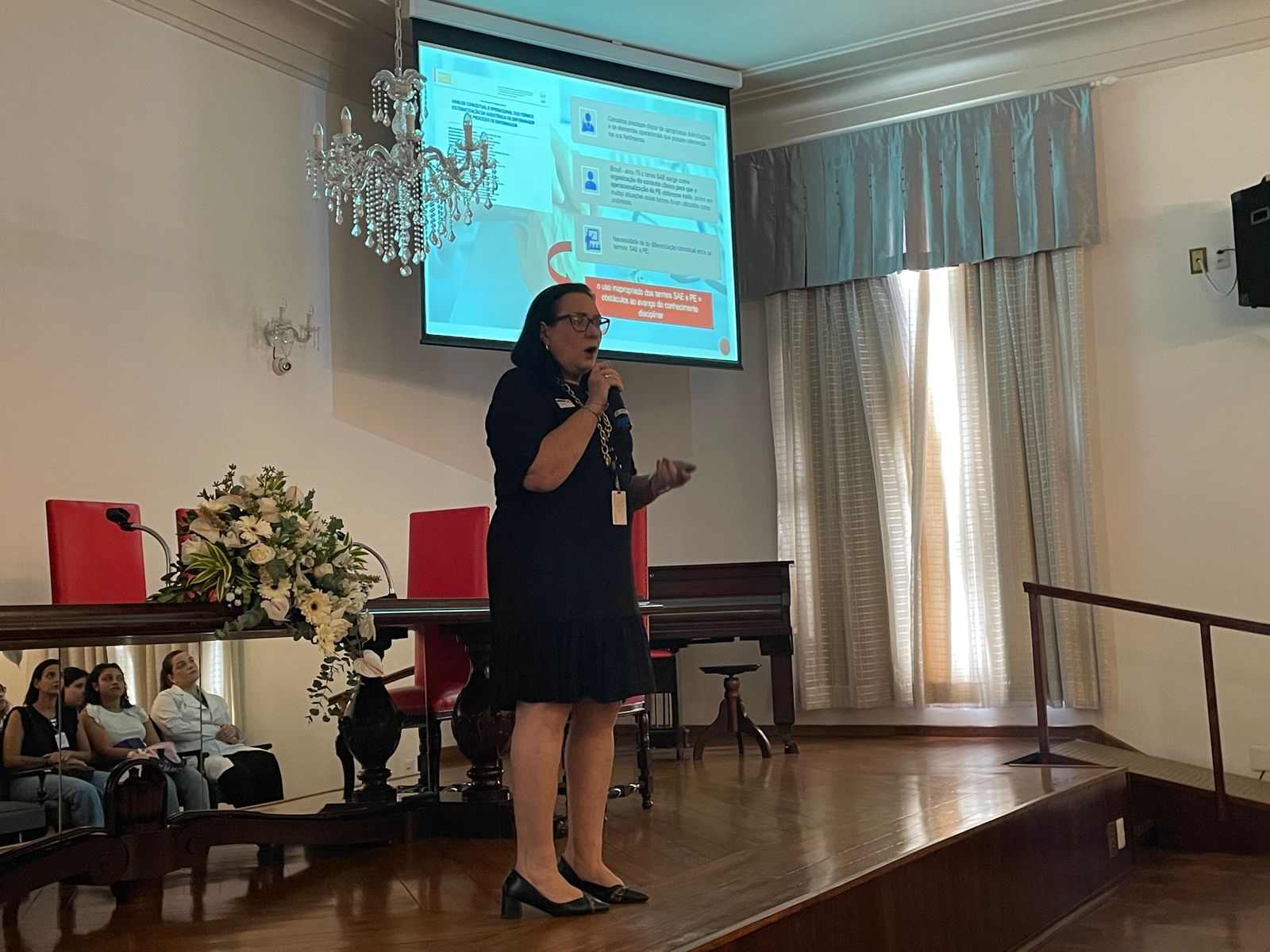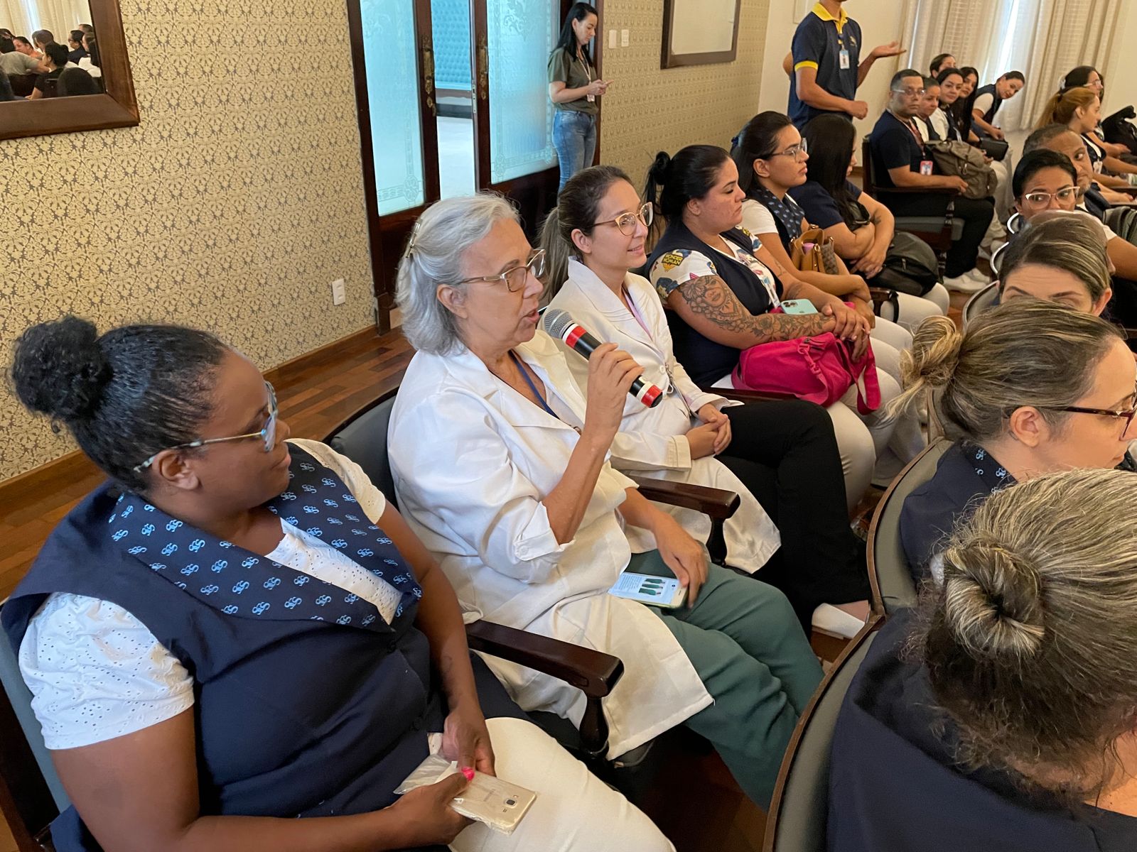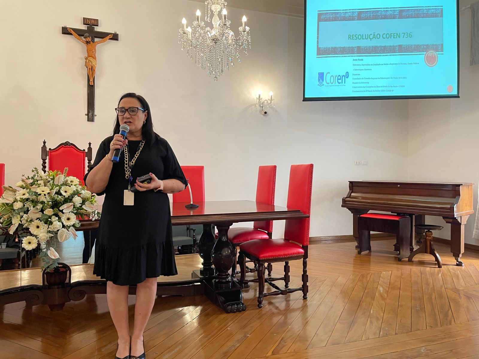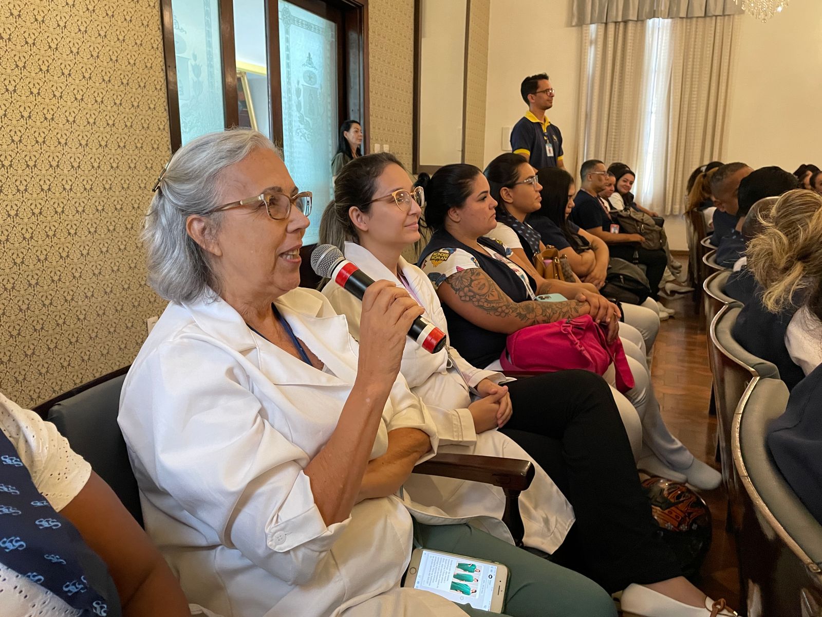 Após uma pausa para o coffee break, o evento continuou com a nova gestora de Enfermagem, Enfª. Rita Rocha, que esclareceu muitos pontos importantes sobre as atribuições inerentes à atuação dos profissionais.